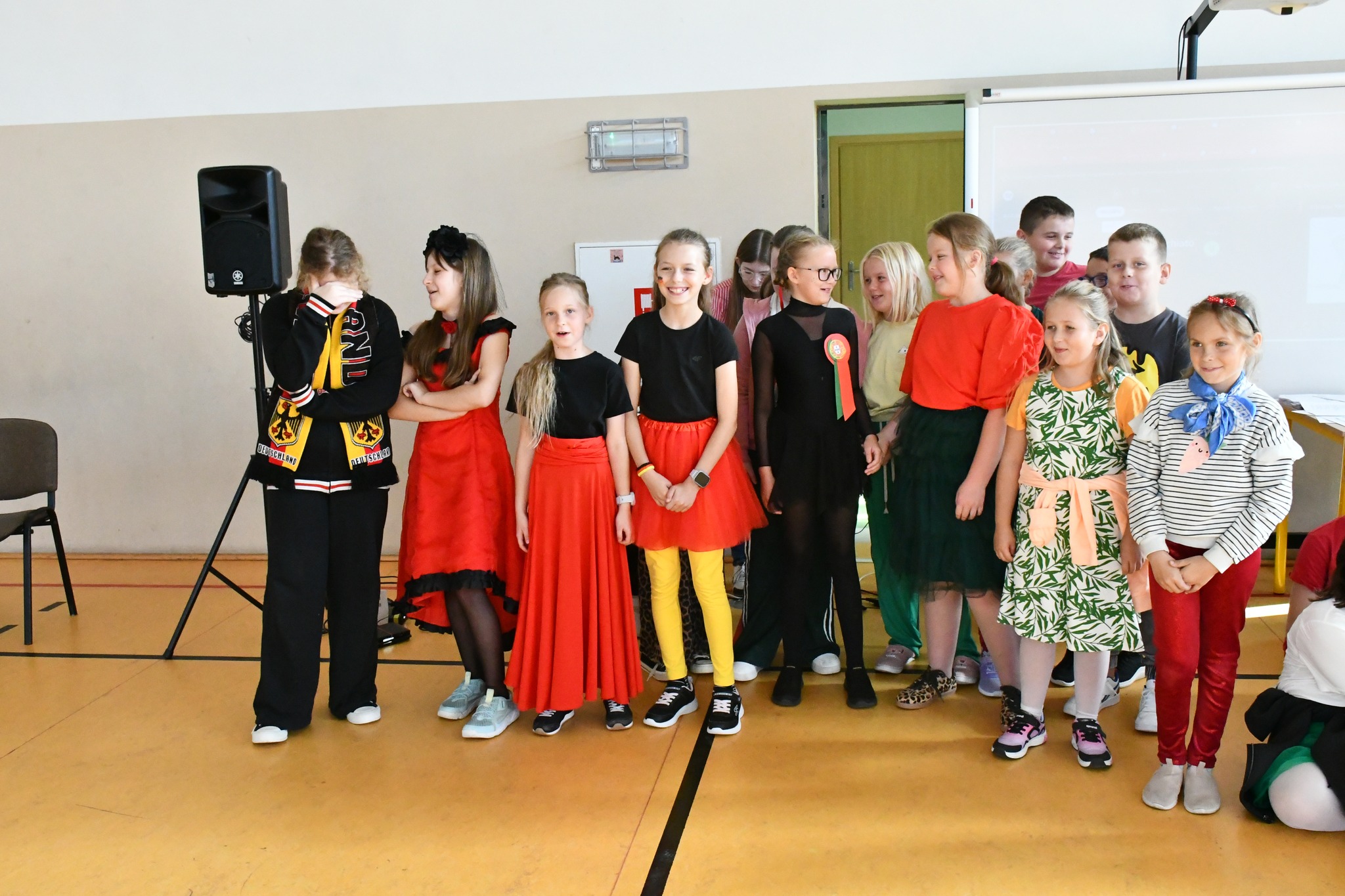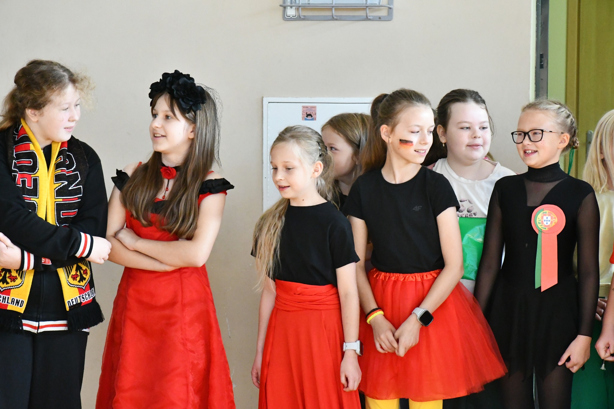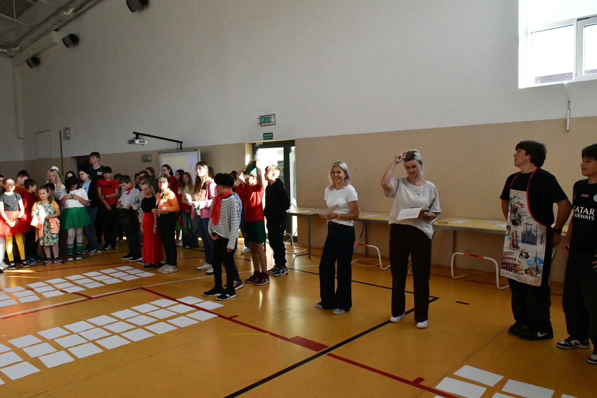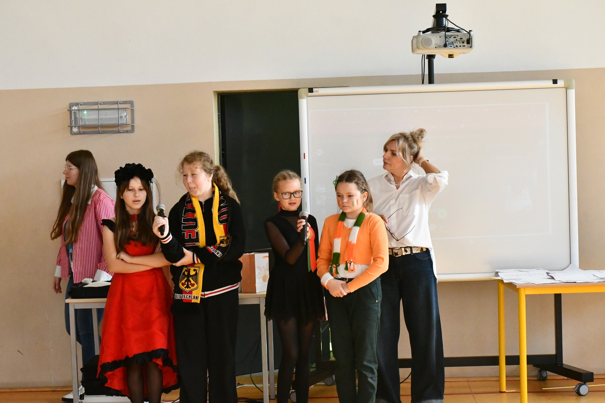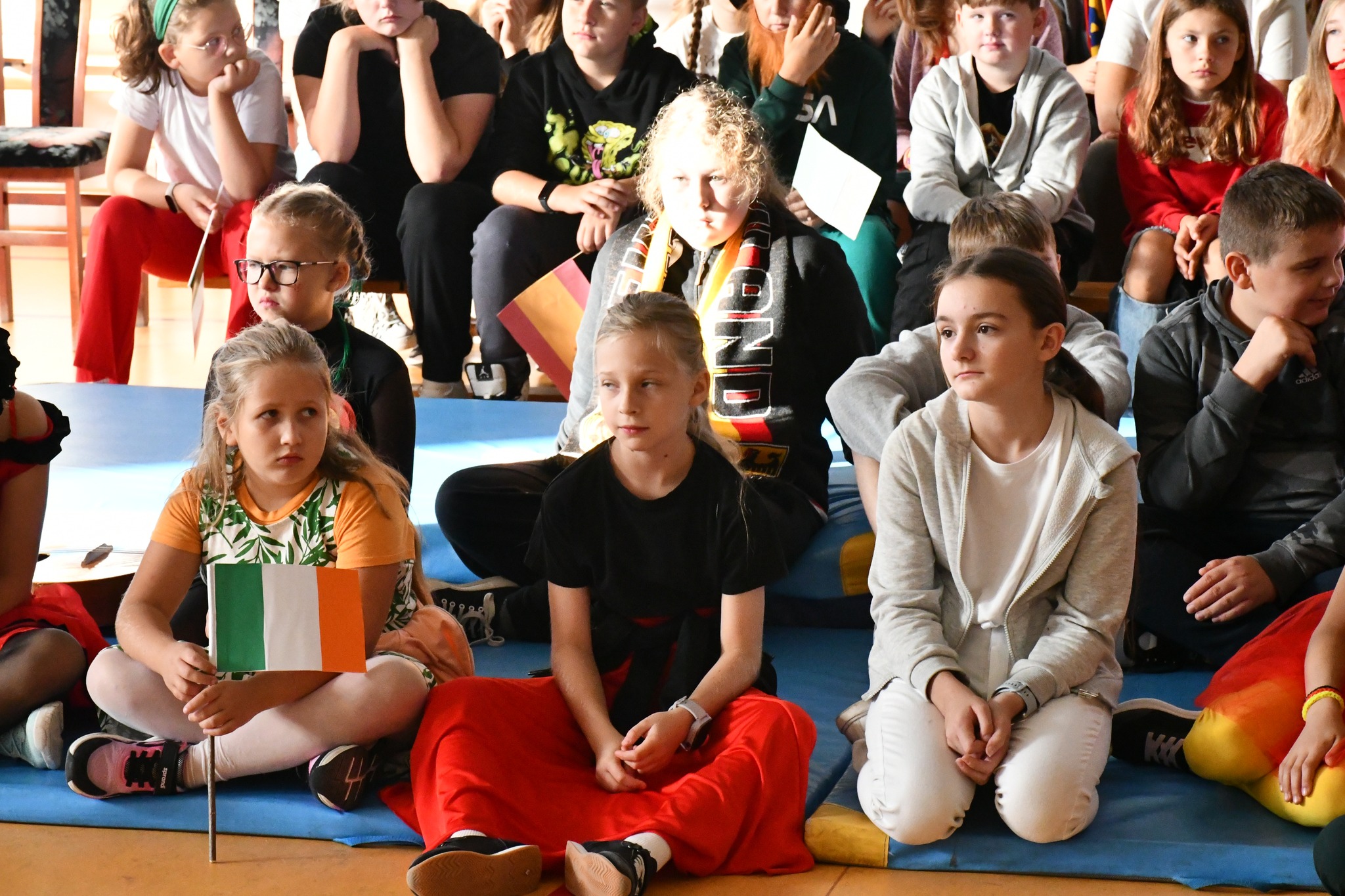 23 września uczniowie klas 4–8 mieli prawdziwą ucztę językową! 🎉 Po uroczystym otwarciu imprezy przez Panią Dyrektor Aleksandrę Obszyńską, rozpoczęła się niezwykła podróż po Europie! ✈️