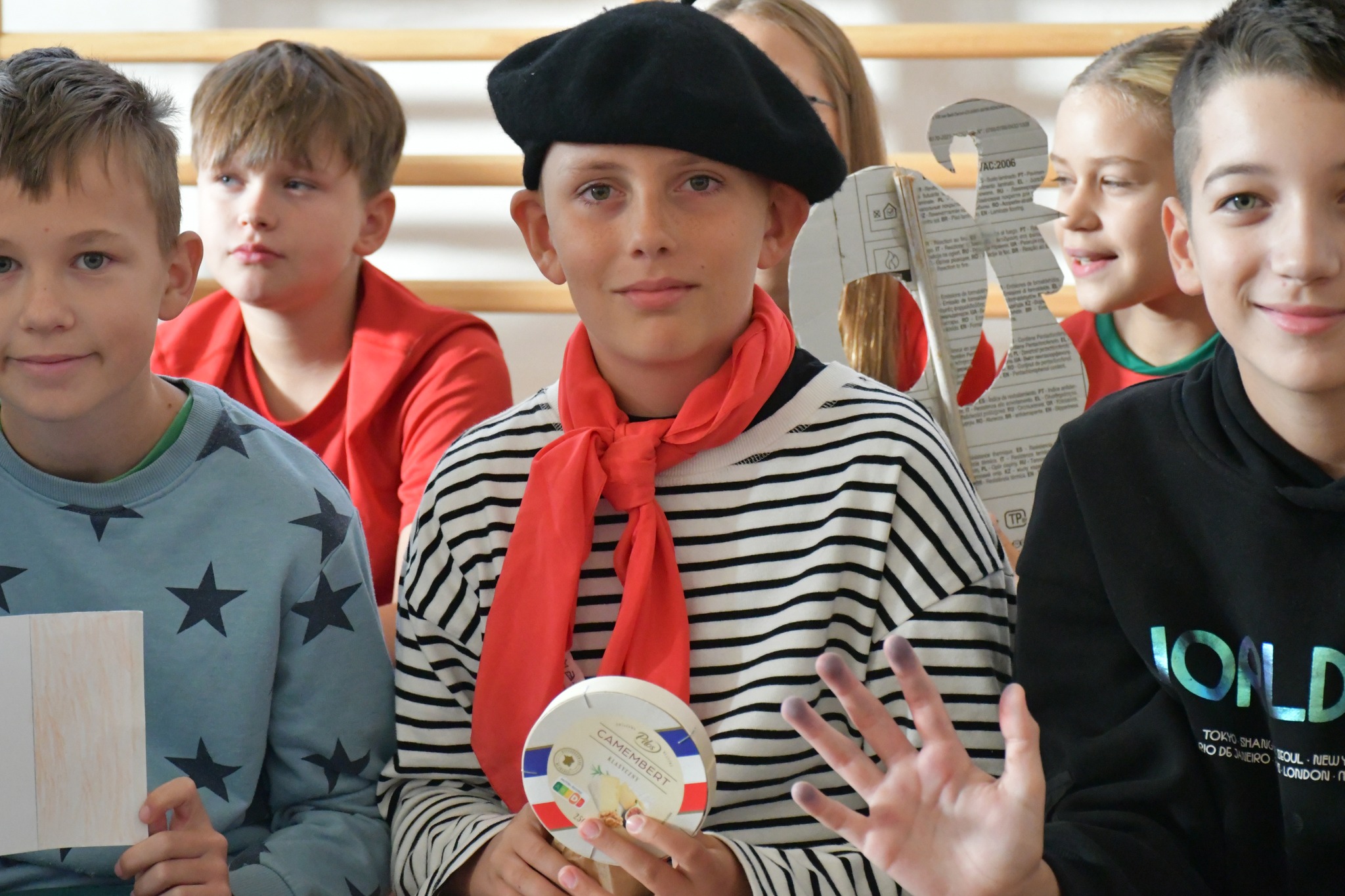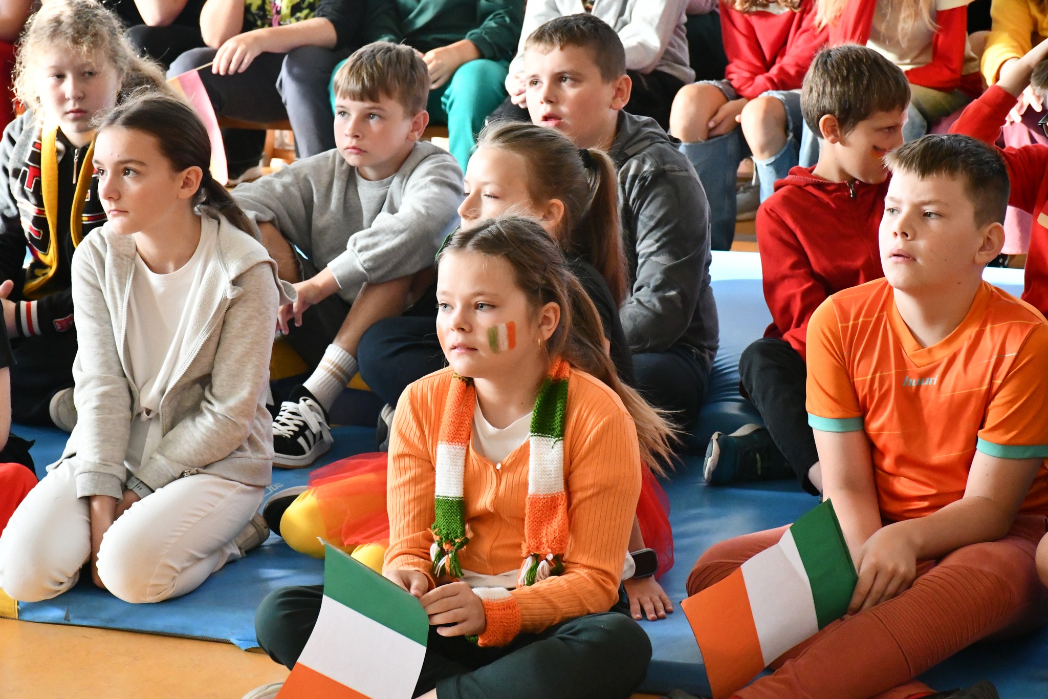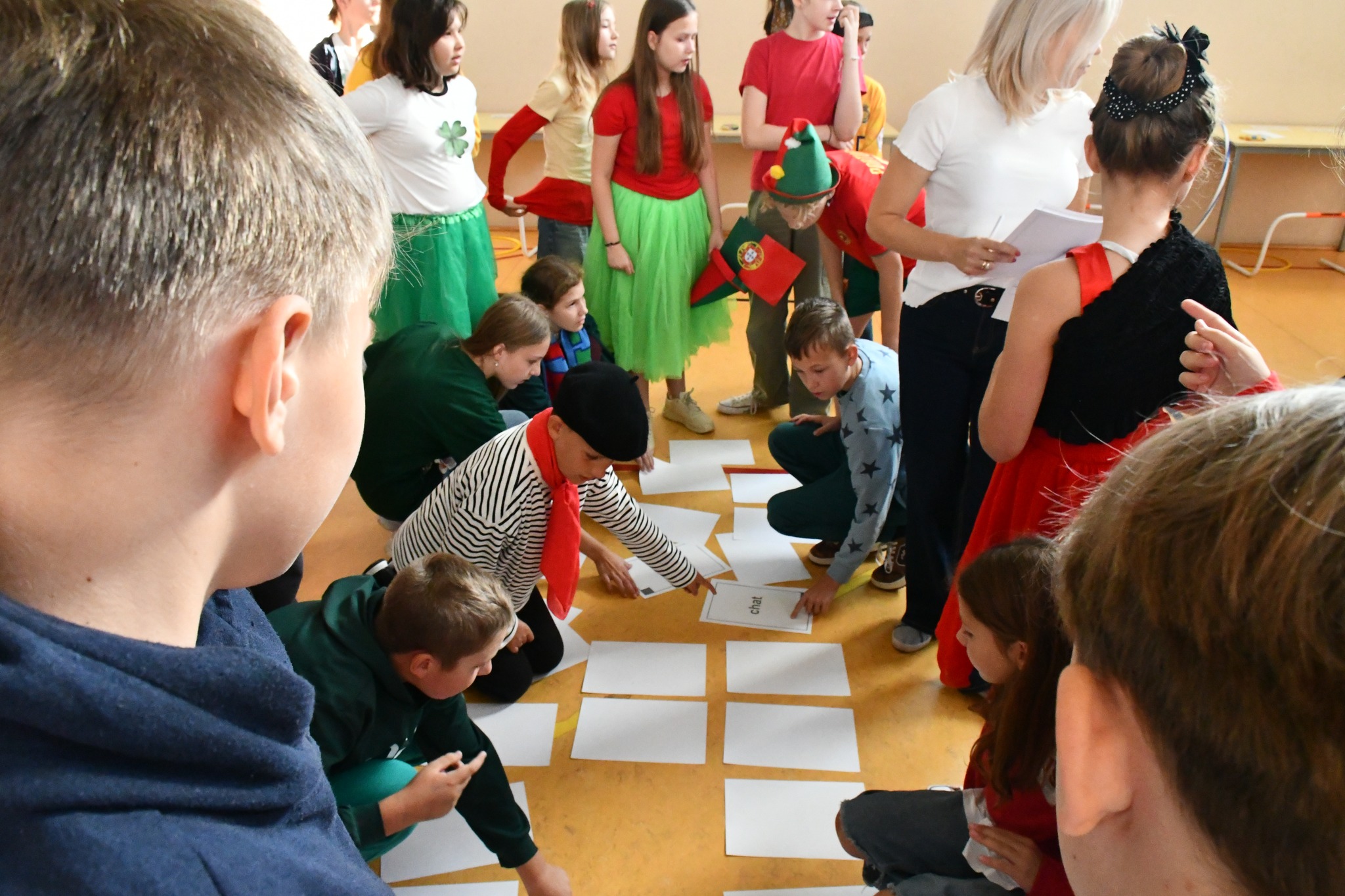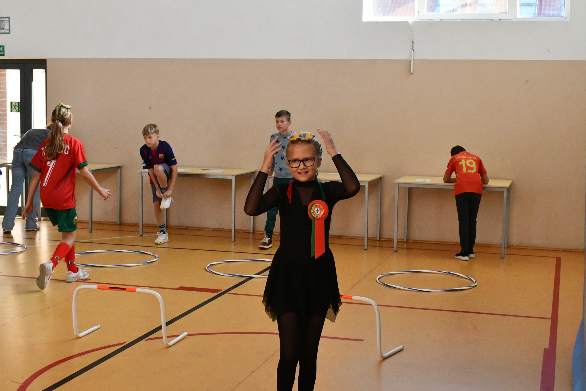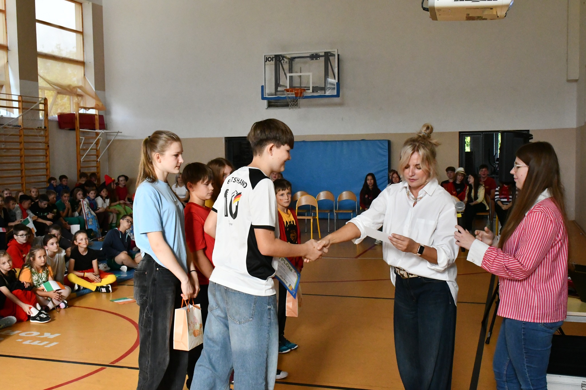 23 września uczniowie klas 4–8 mieli prawdziwą ucztę językową! 🎉 Po uroczystym otwarciu imprezy przez Panią Dyrektor Aleksandrę Obszyńską, rozpoczęła się niezwykła podróż po Europie! ✈️
