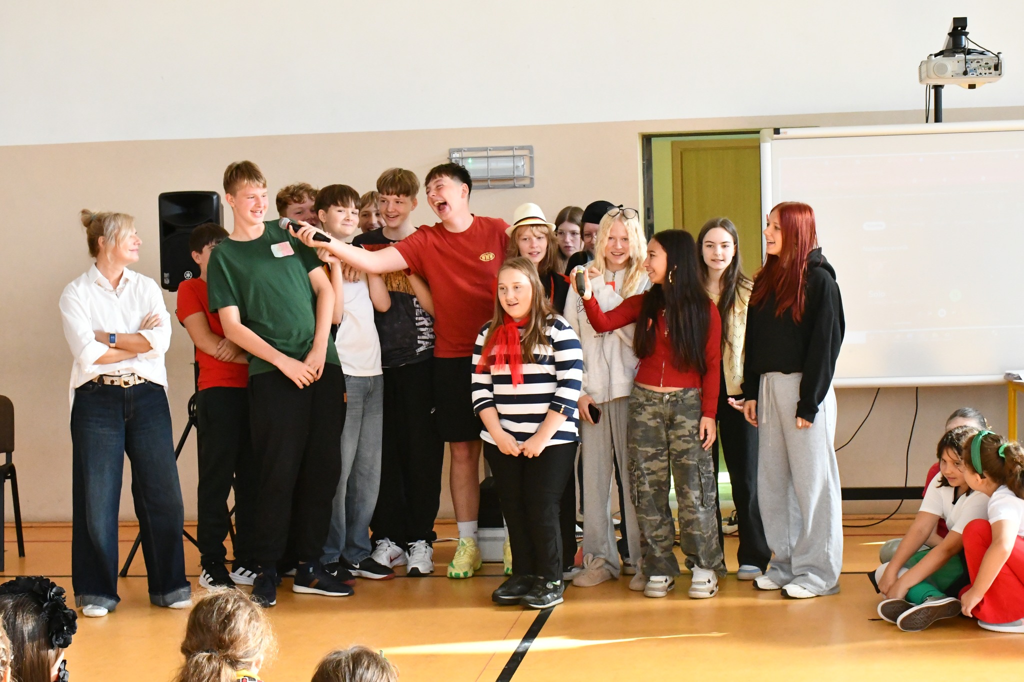 🎊 Podczas rywalizacji było mnóstwo śmiechu, emocji i dobrej zabawy! W tej ekscytującej walce o językowy prym zwyciężyła klasa 8 🏆, ale nikt nie wyszedł przegrany – każda klasa otrzymała słodką nagrodę 🍬.