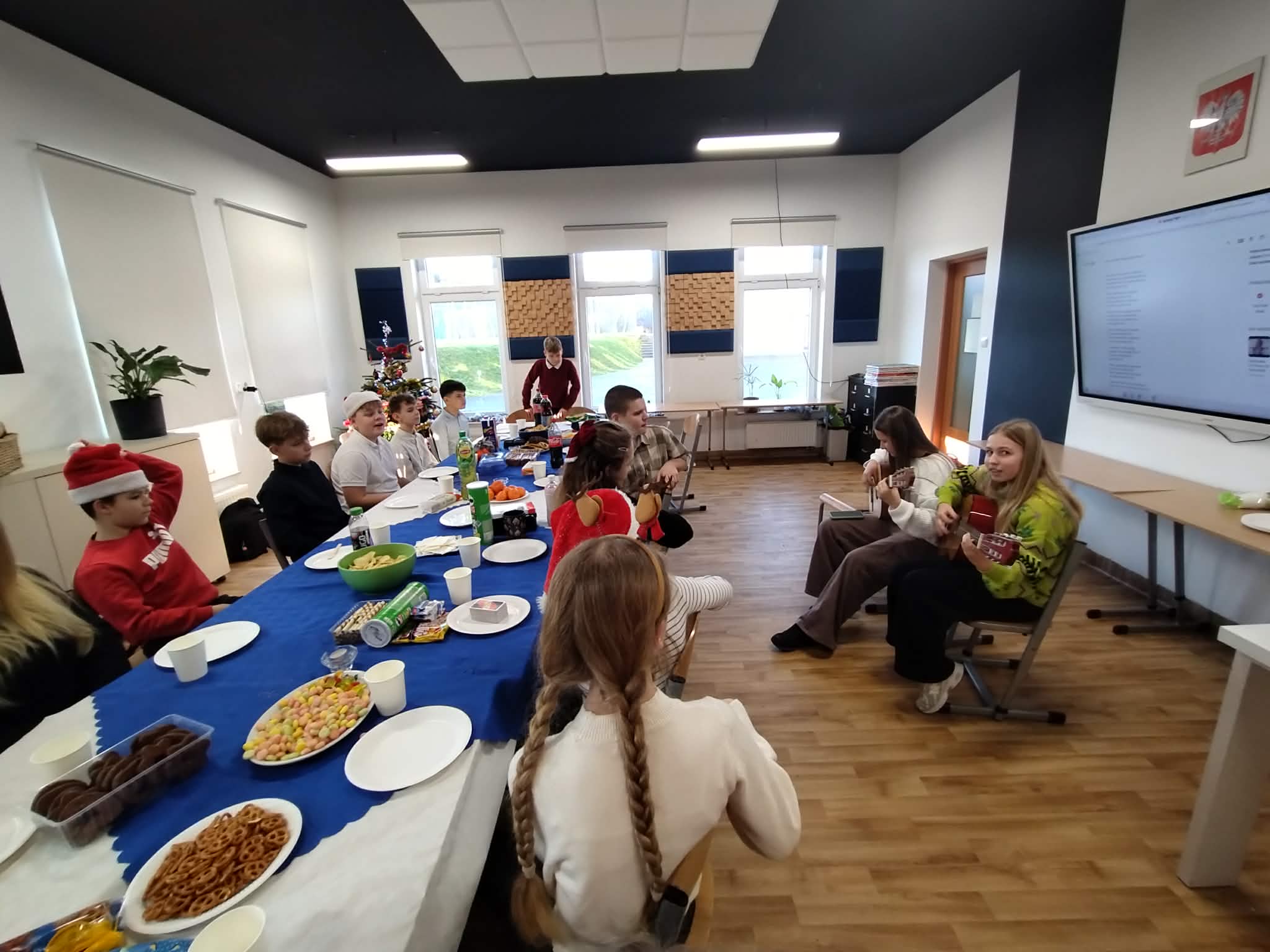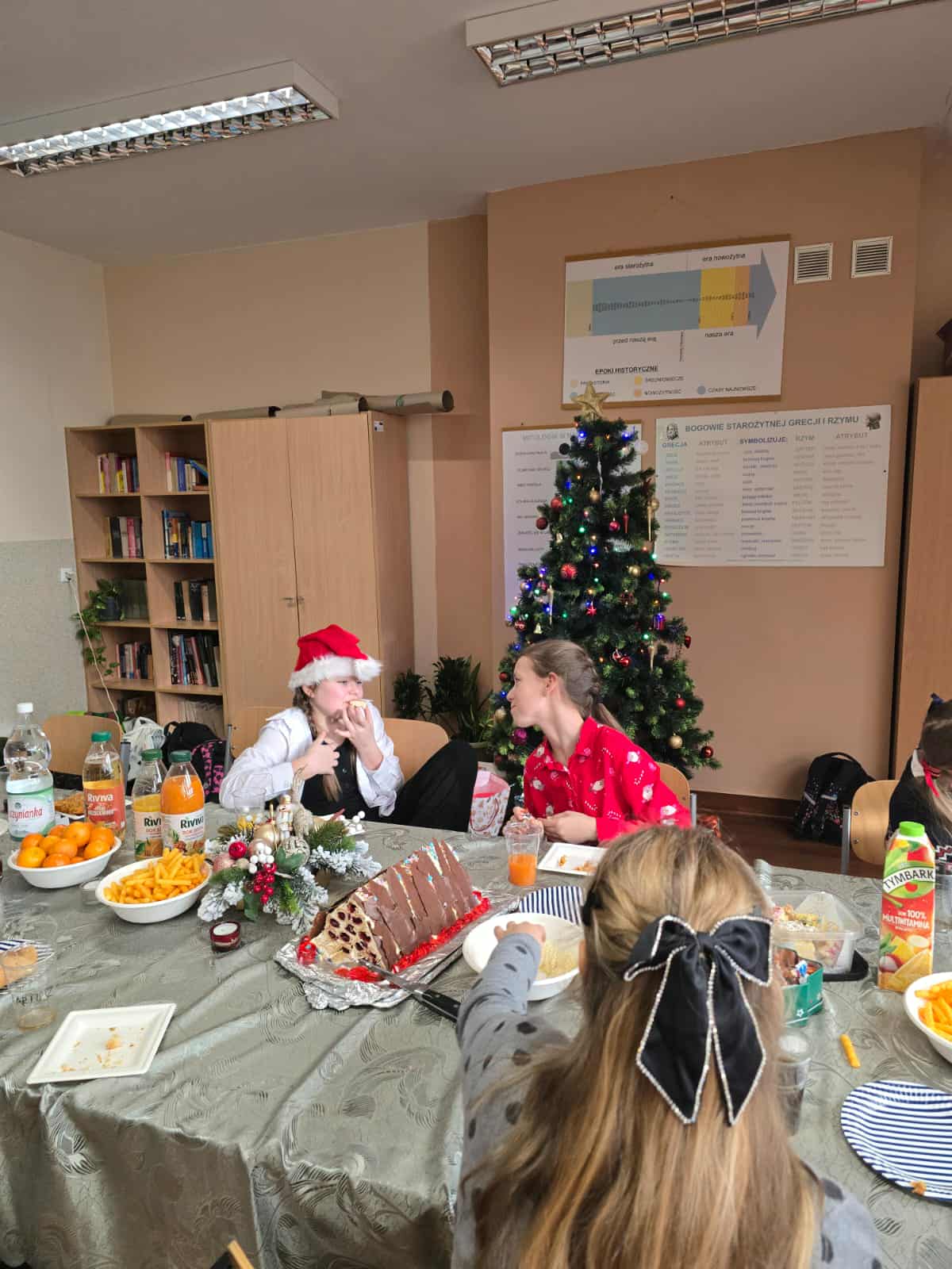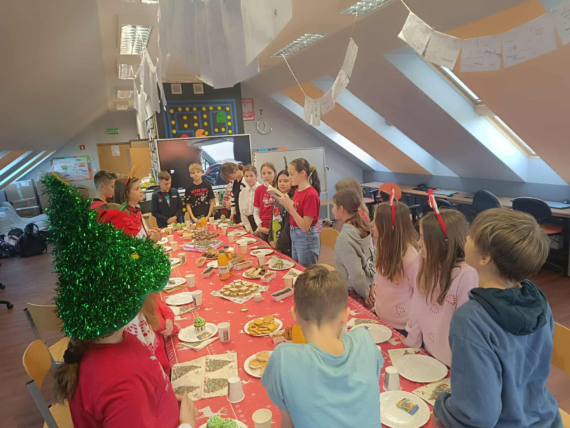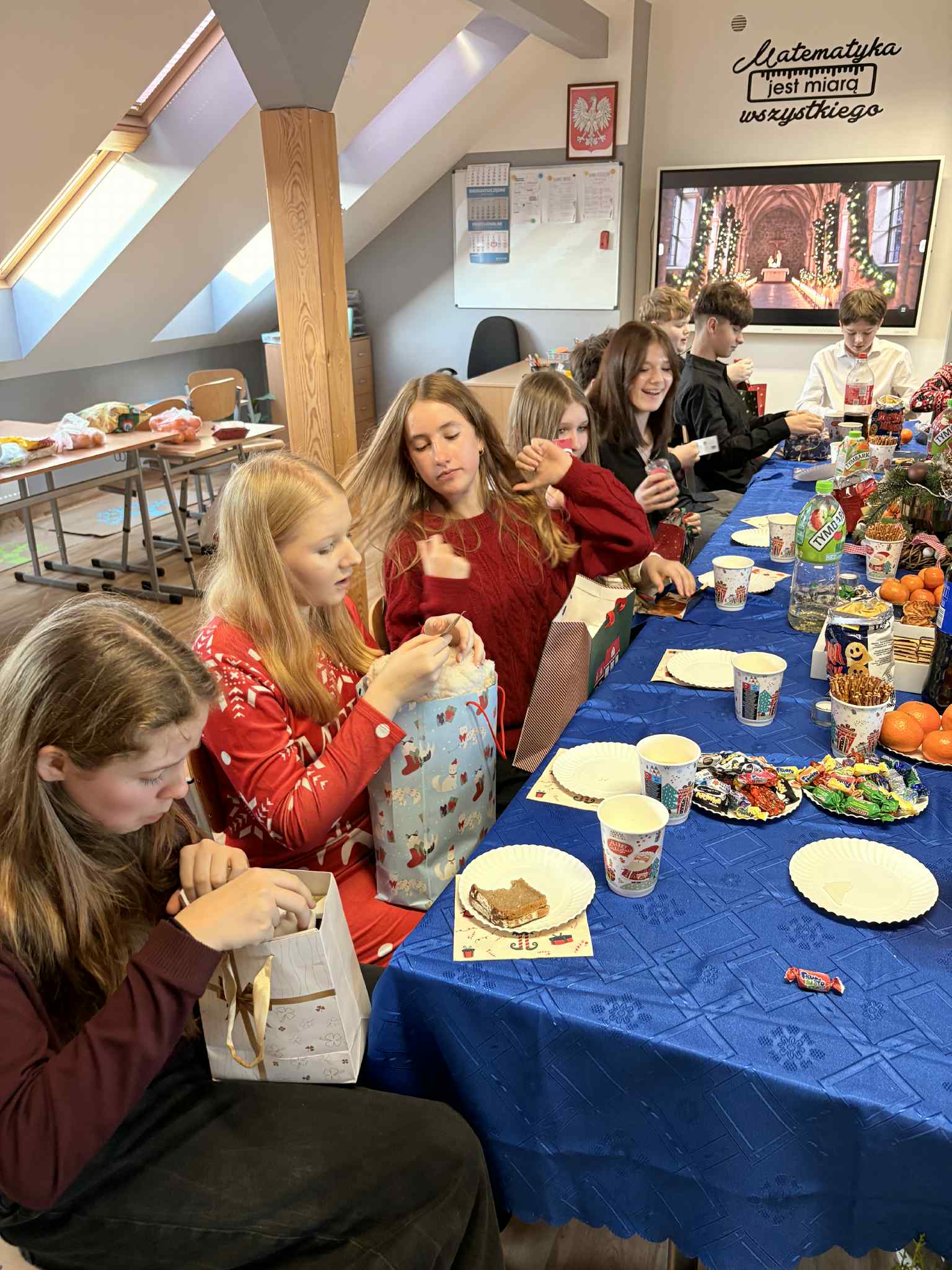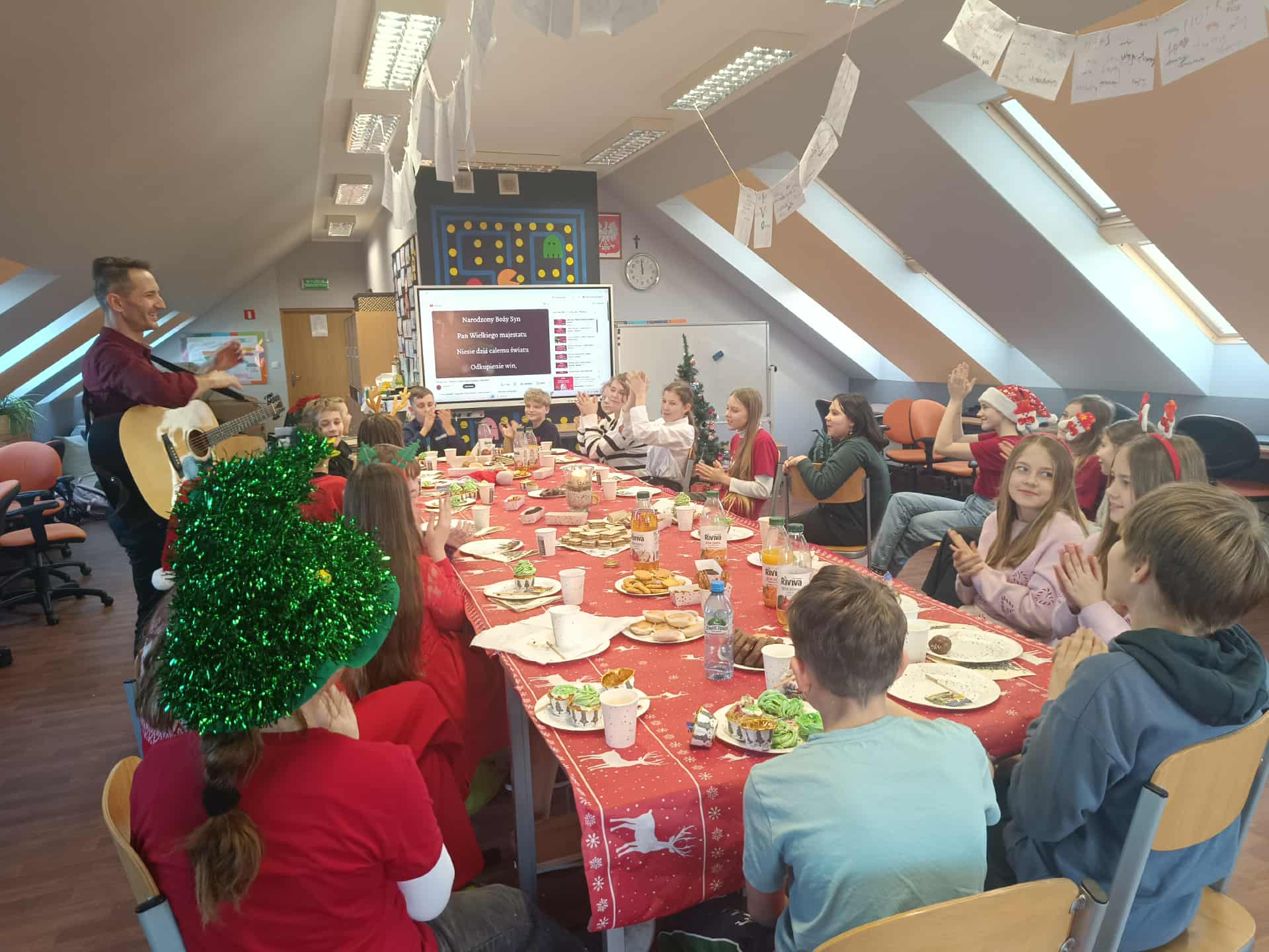 W klasach 4–8 unosił się zapach świąt – nie tylko pierników i domowych słodkości, ale przede wszystkim 𝐳𝐚𝐩𝐚𝐜𝐡 𝐛𝐥𝐢𝐬𝐤𝐨𝐬́𝐜𝐢. Stoły, przy których na co dzień siedzimy osobno, dziś połączyły nas w krąg rozmów, uśmiechów i cichych wzruszeń. Lampki migotały jakby wolniej, a czas – na moment – pozwolił nam być naprawdę 𝐫𝐚𝐳𝐞𝐦 ✨