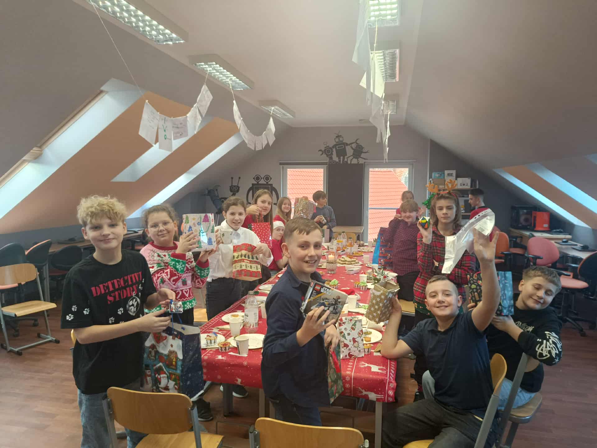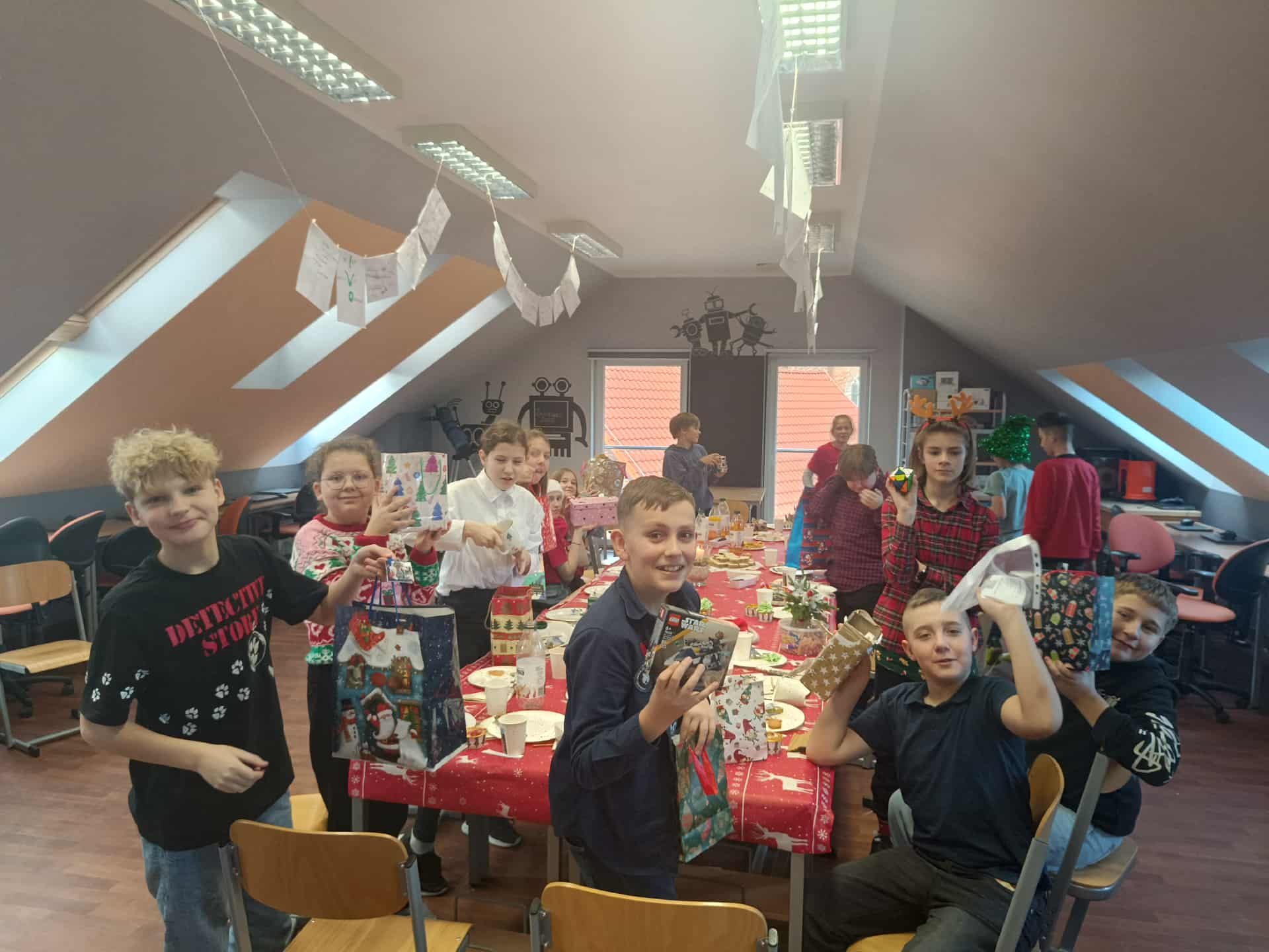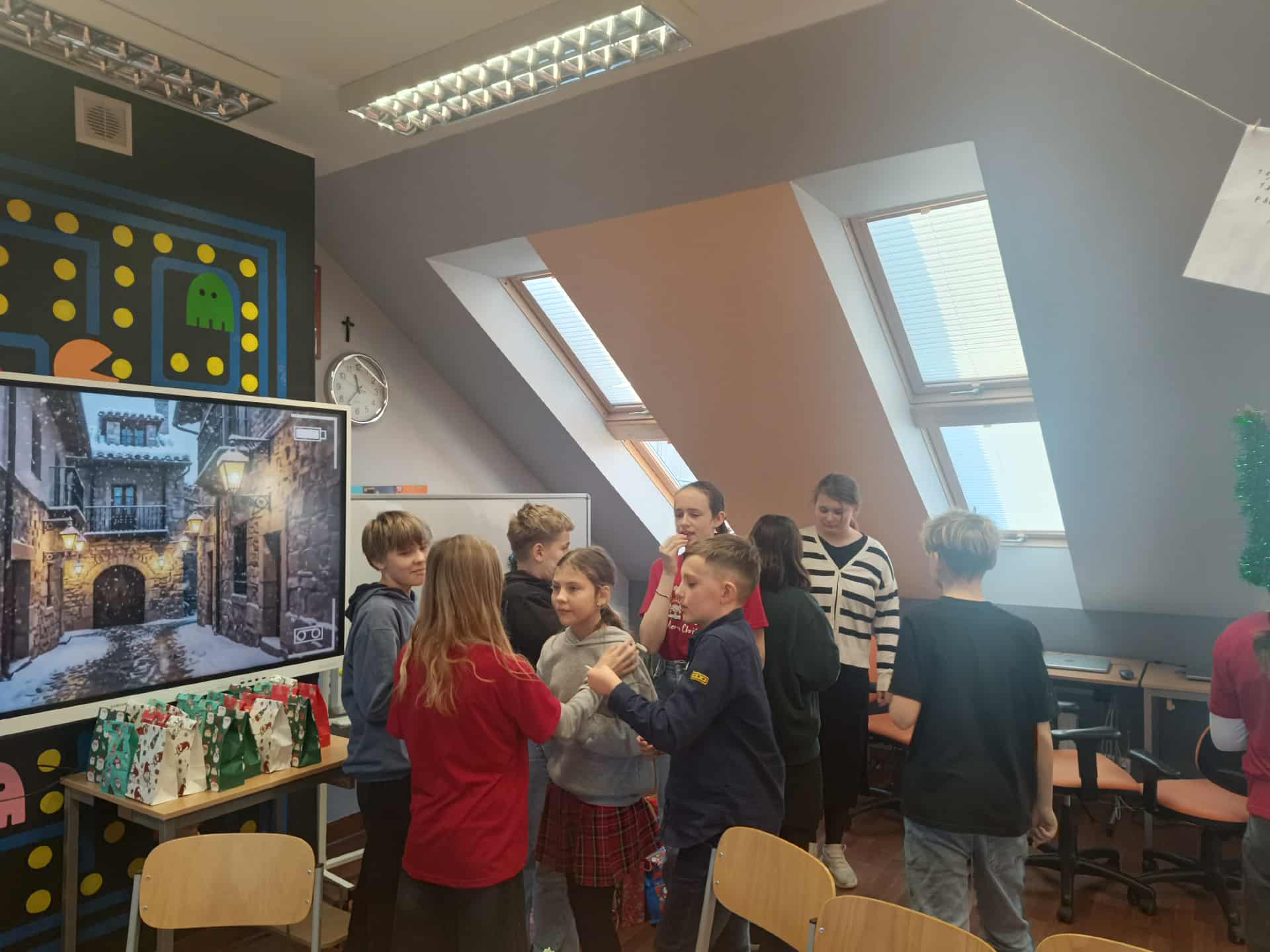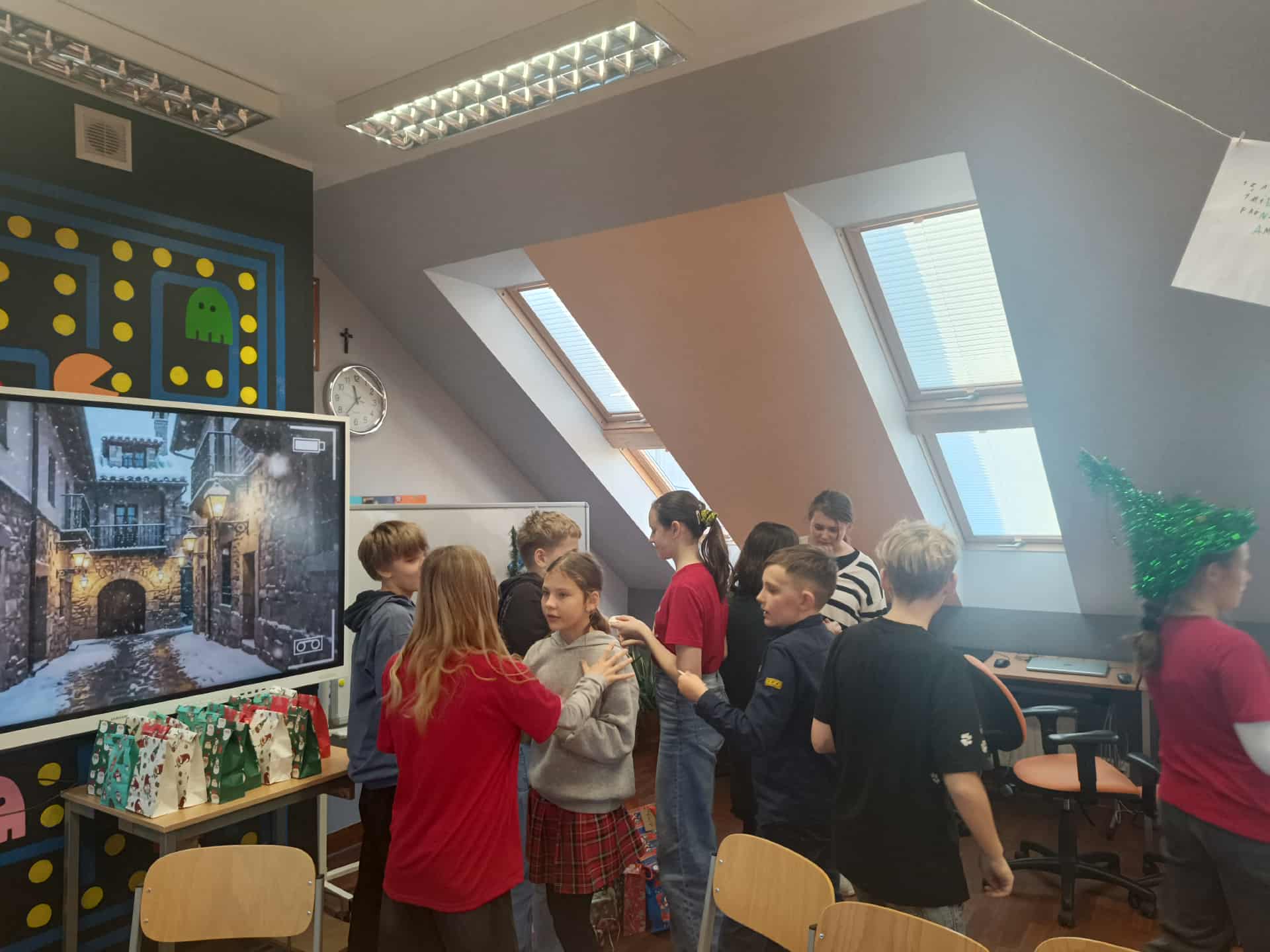 W klasach 4–8 unosił się zapach świąt – nie tylko pierników i domowych słodkości, ale przede wszystkim 𝐳𝐚𝐩𝐚𝐜𝐡 𝐛𝐥𝐢𝐬𝐤𝐨𝐬́𝐜𝐢. Stoły, przy których na co dzień siedzimy osobno, dziś połączyły nas w krąg rozmów, uśmiechów i cichych wzruszeń. Lampki migotały jakby wolniej, a czas – na moment – pozwolił nam być naprawdę 𝐫𝐚𝐳𝐞𝐦 ✨