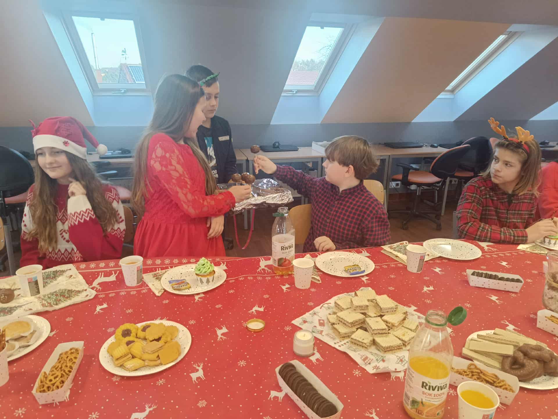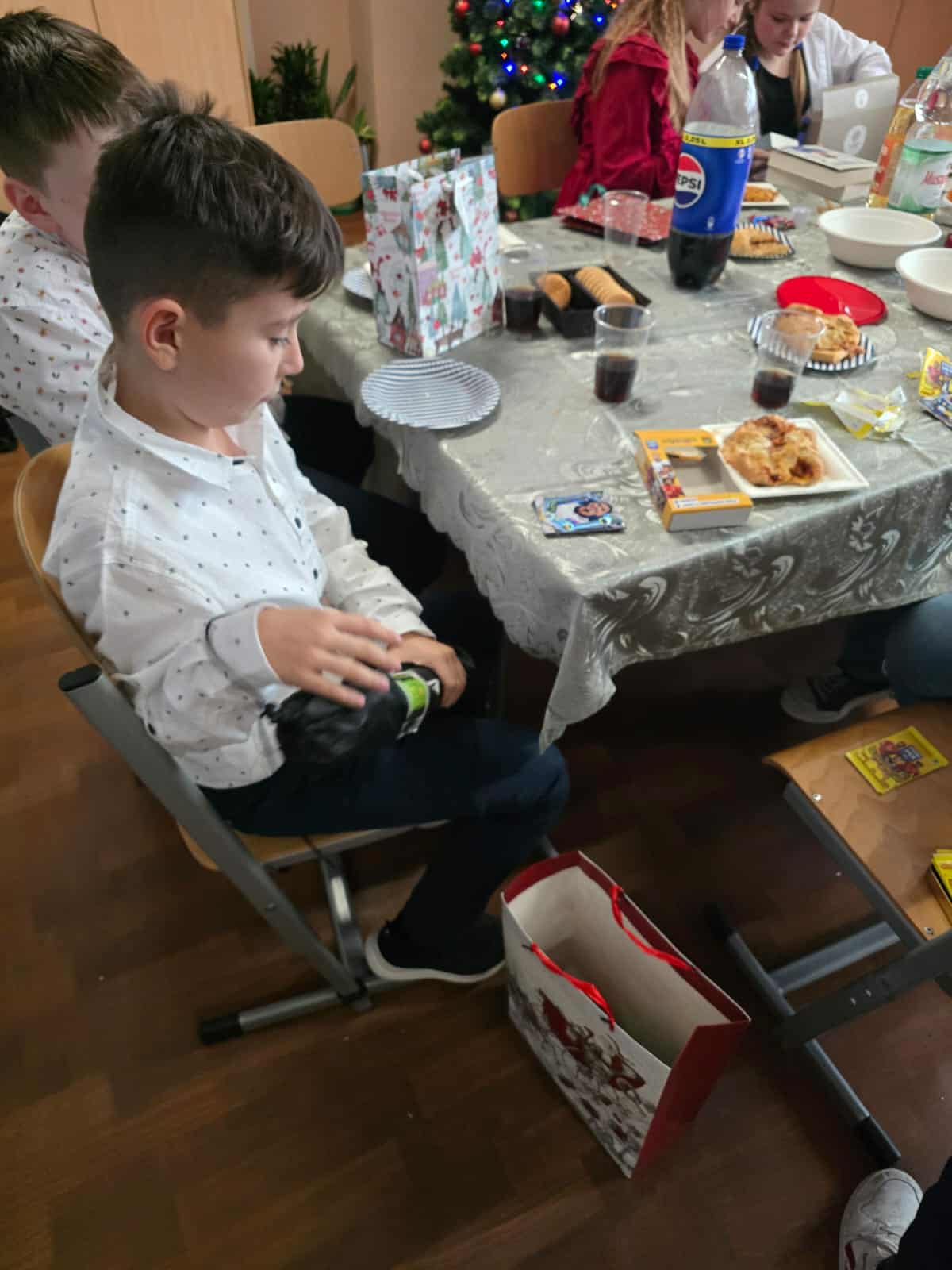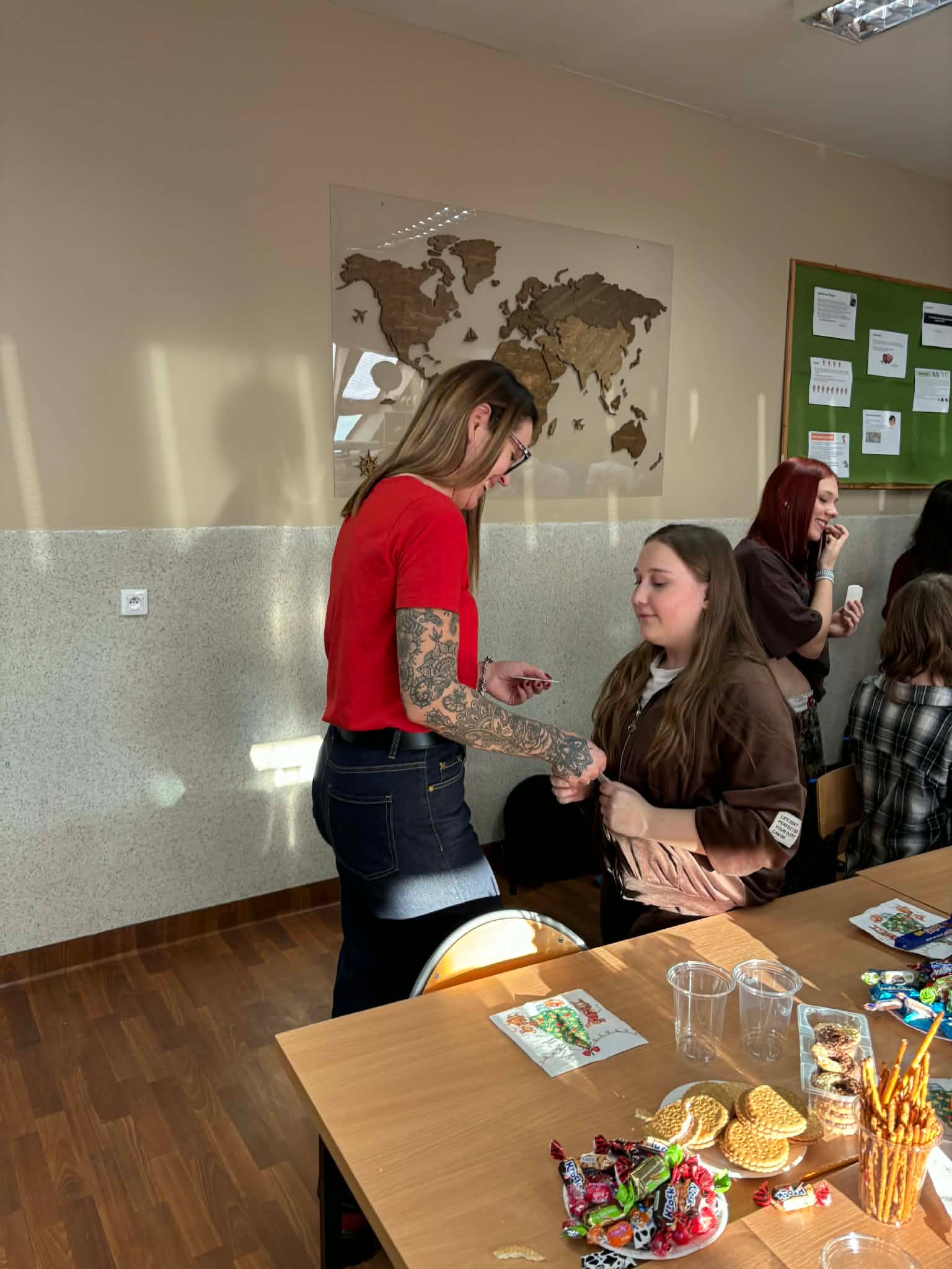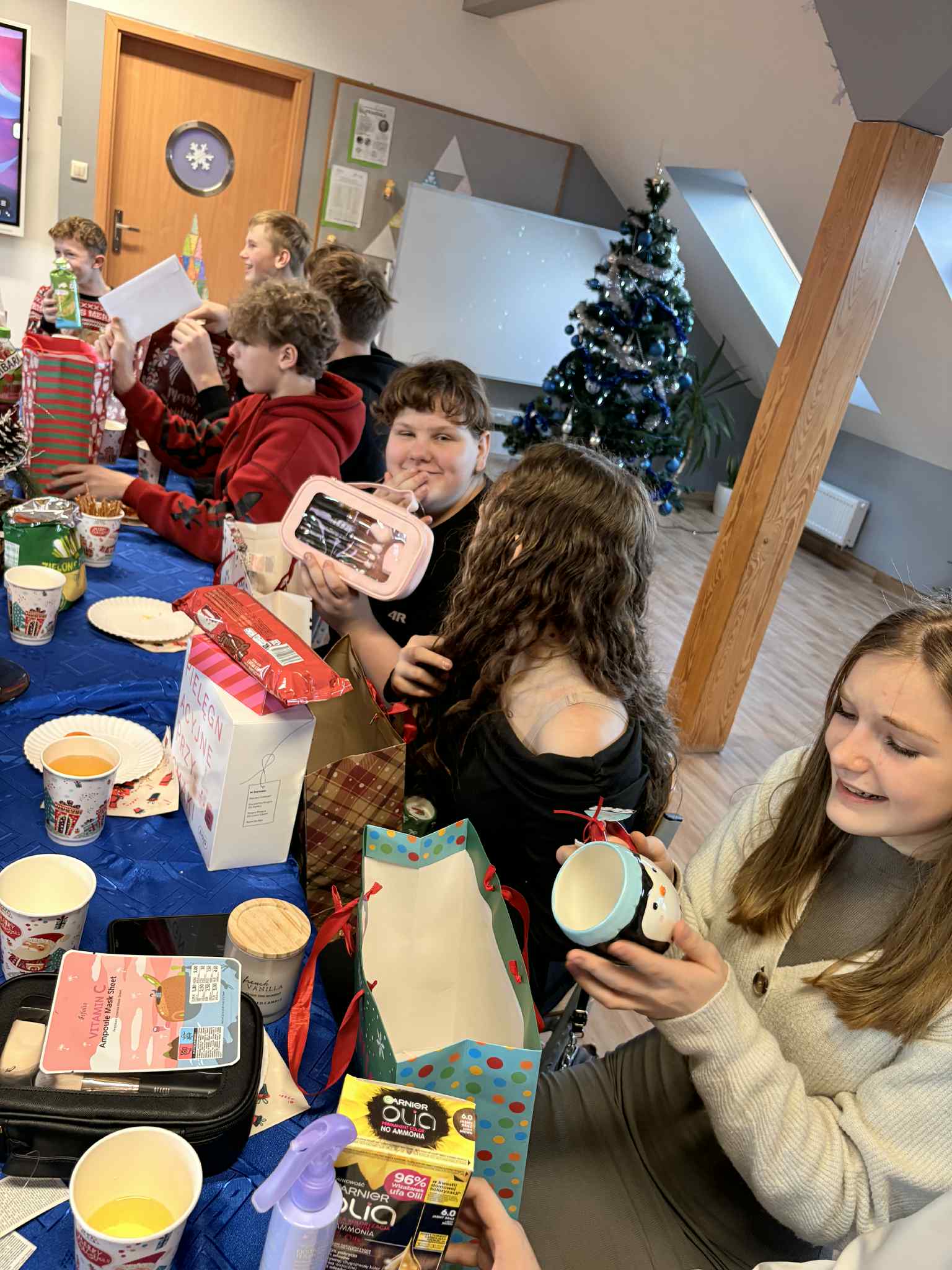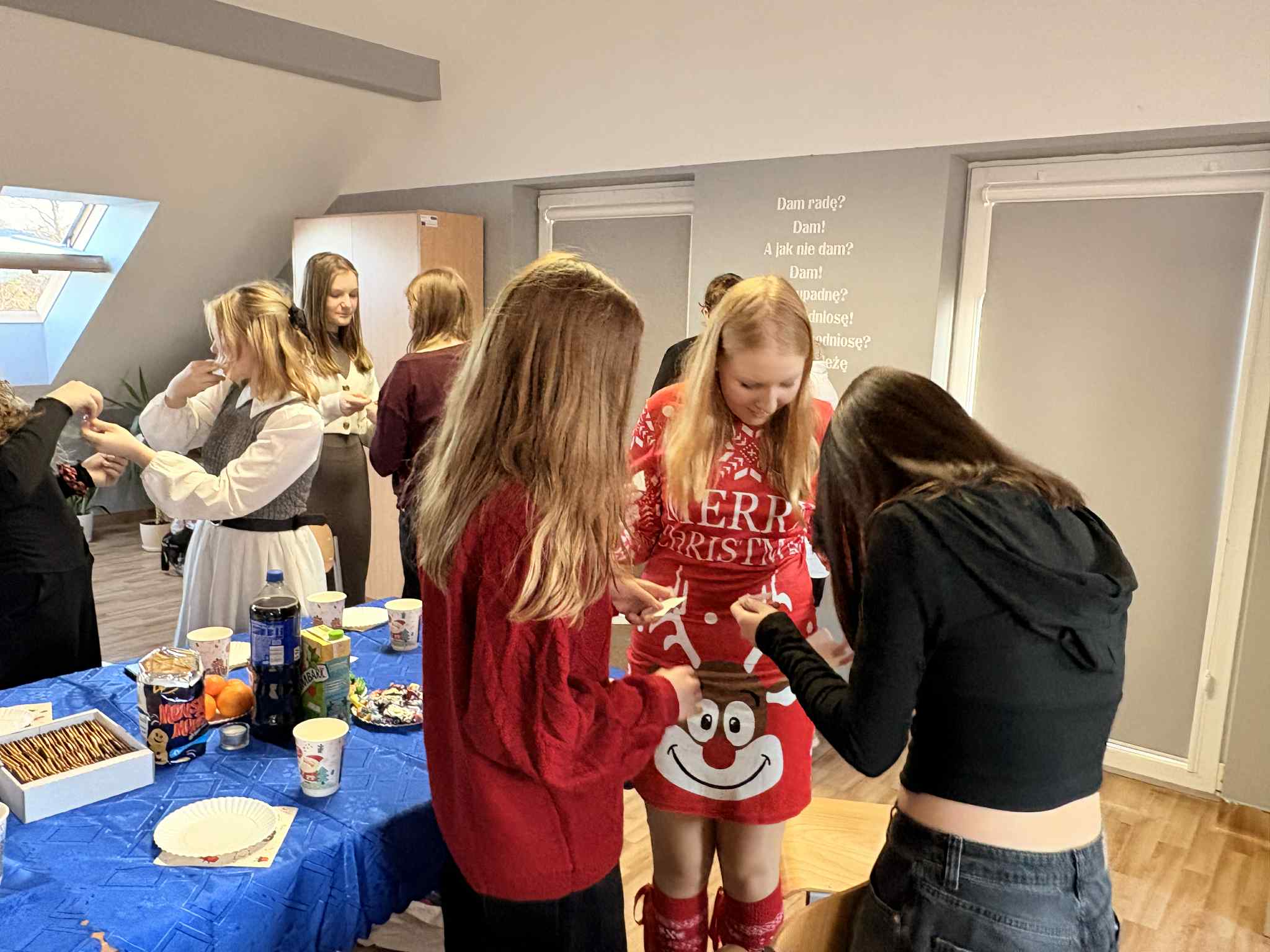 W klasach 4–8 unosił się zapach świąt – nie tylko pierników i domowych słodkości, ale przede wszystkim 𝐳𝐚𝐩𝐚𝐜𝐡 𝐛𝐥𝐢𝐬𝐤𝐨𝐬́𝐜𝐢. Stoły, przy których na co dzień siedzimy osobno, dziś połączyły nas w krąg rozmów, uśmiechów i cichych wzruszeń. Lampki migotały jakby wolniej, a czas – na moment – pozwolił nam być naprawdę 𝐫𝐚𝐳𝐞𝐦 ✨
