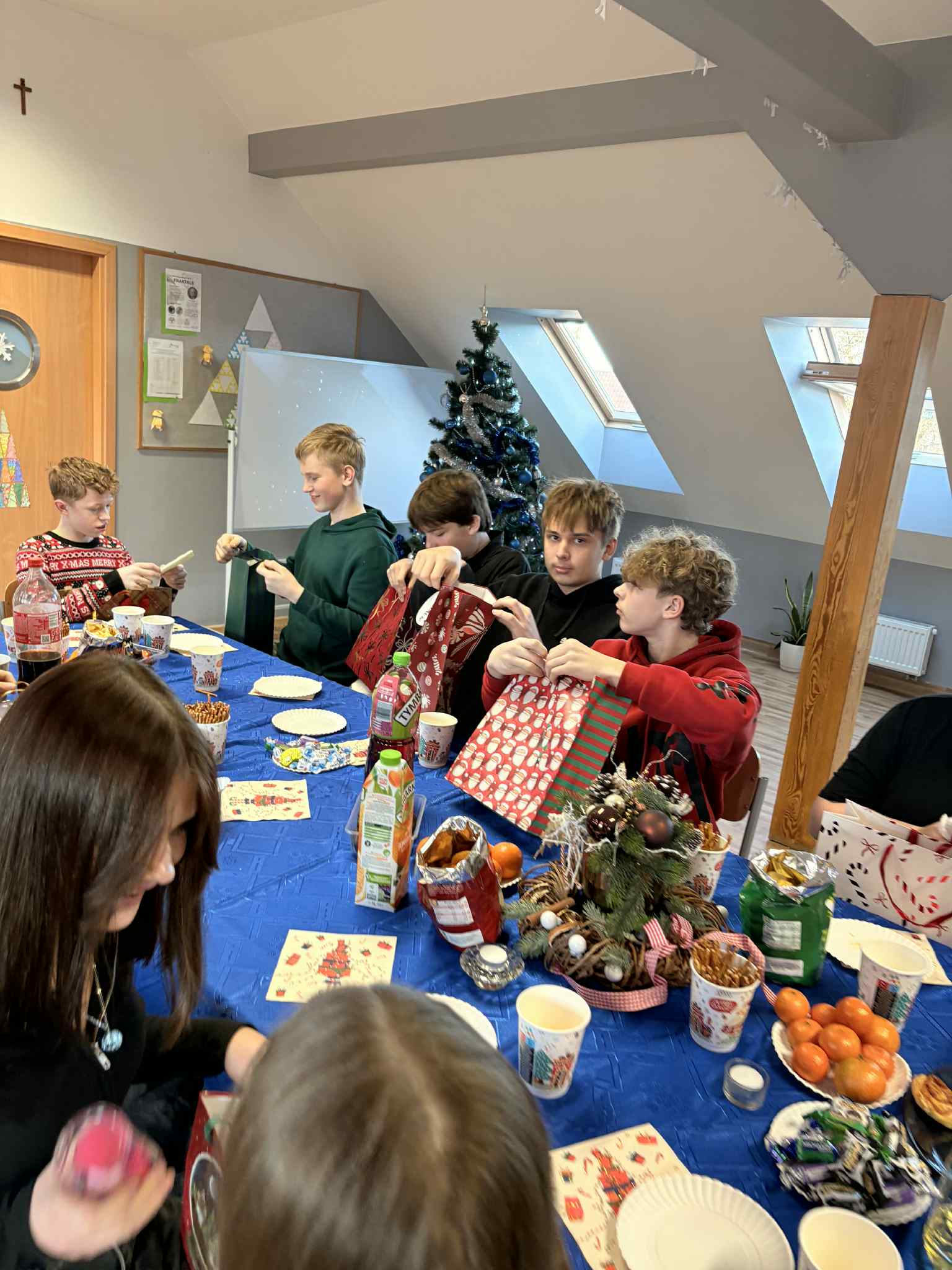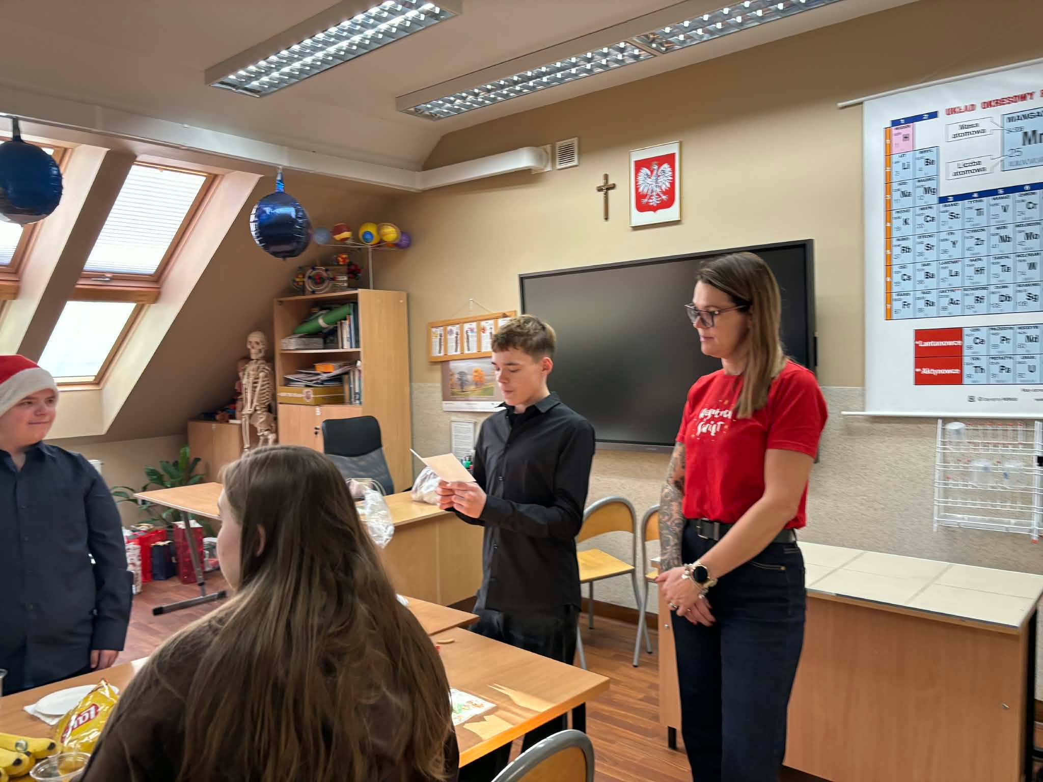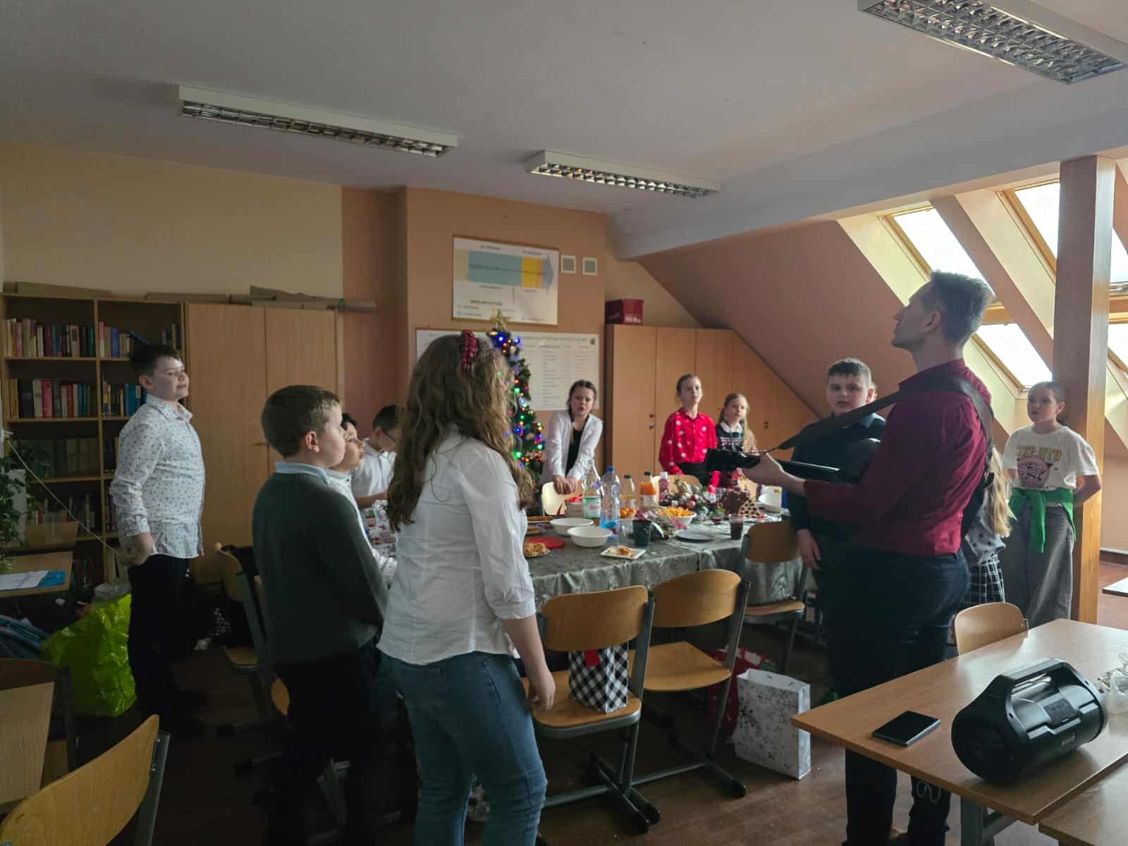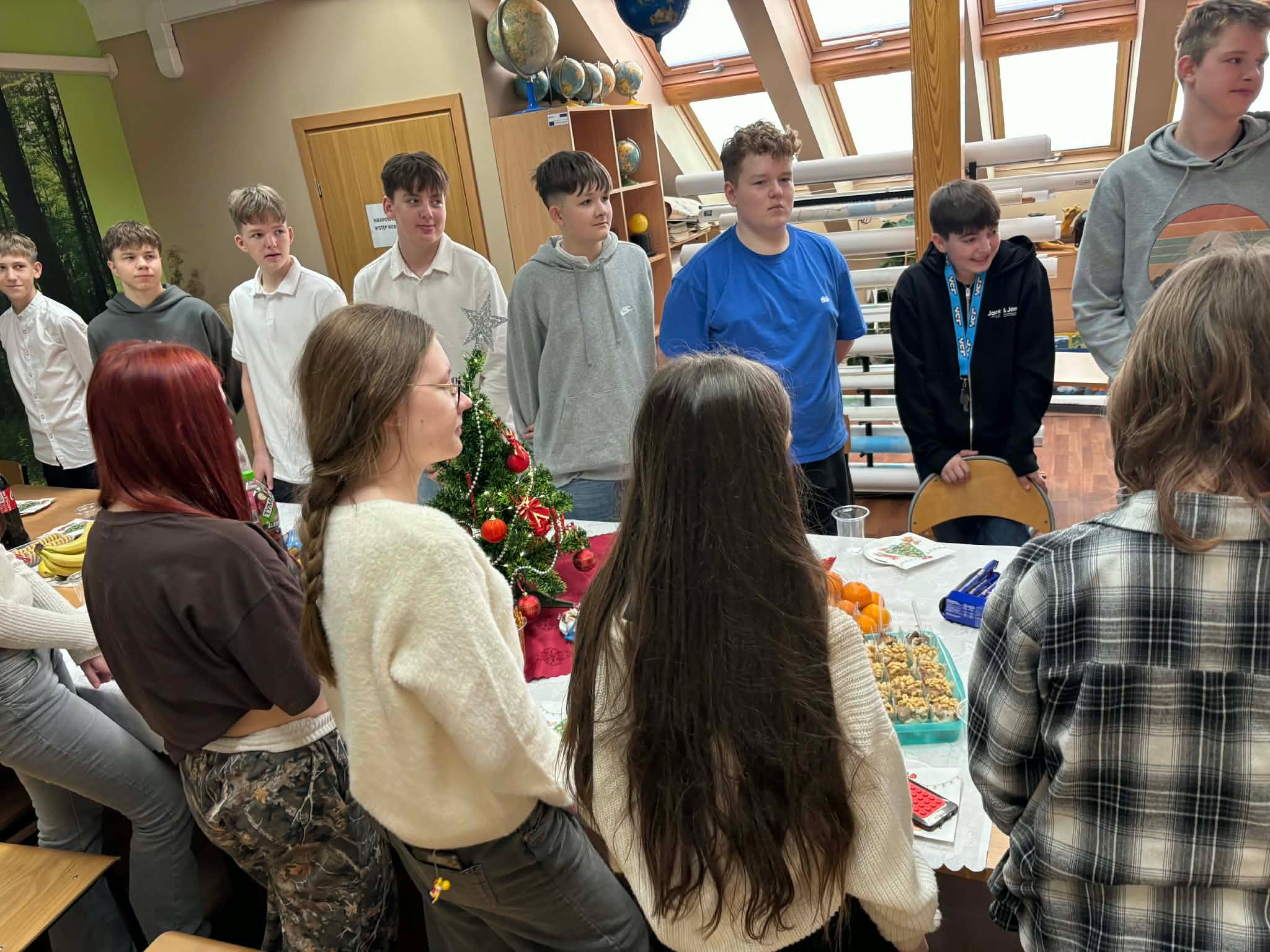 Wyjątkowym momentem była wizyta 𝐏𝐚𝐧𝐚 𝐁𝐚𝐫𝐭𝐤𝐚 𝐒𝐳𝐞𝐟𝐤𝐞, który odwiedził każdą klasę, niosąc ze sobą kolędy, radość i jedność. Wspólny śpiew sprawił, że różnice zniknęły, a zostało tylko jedno – poczucie, że należymy do tej samej historii 🎶