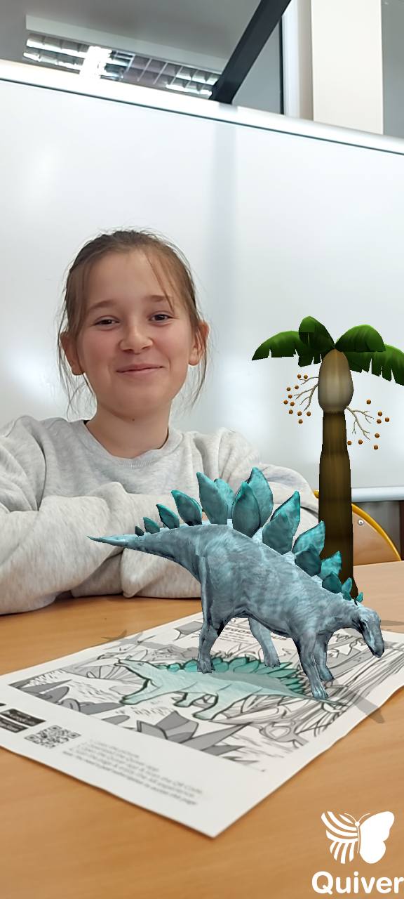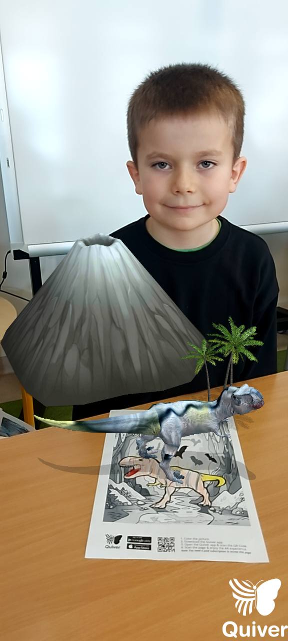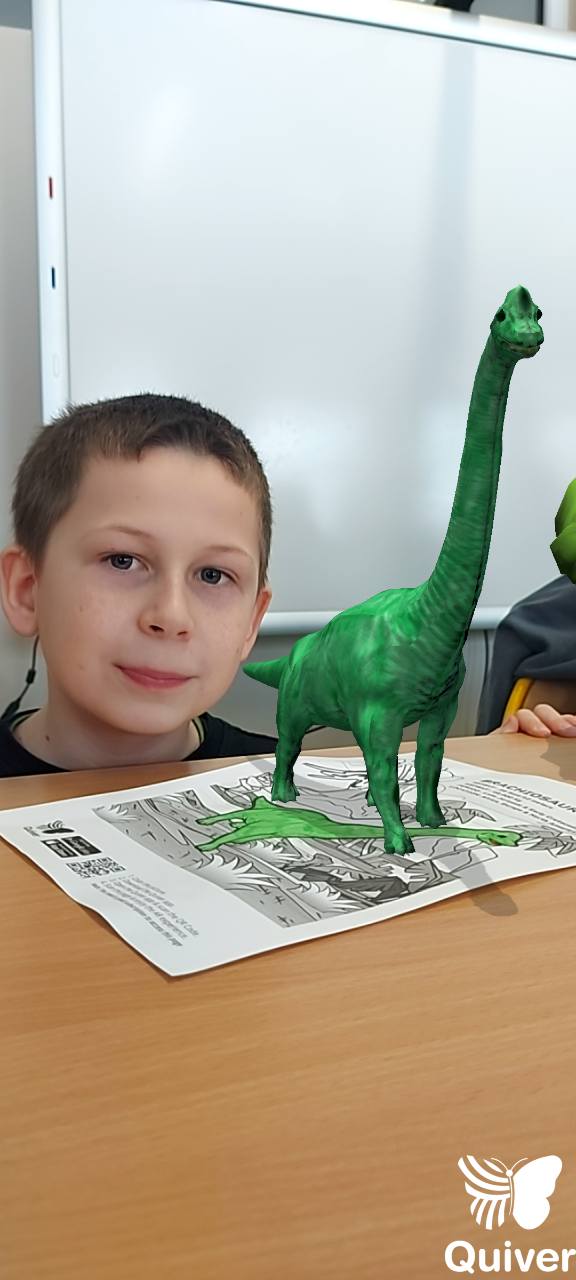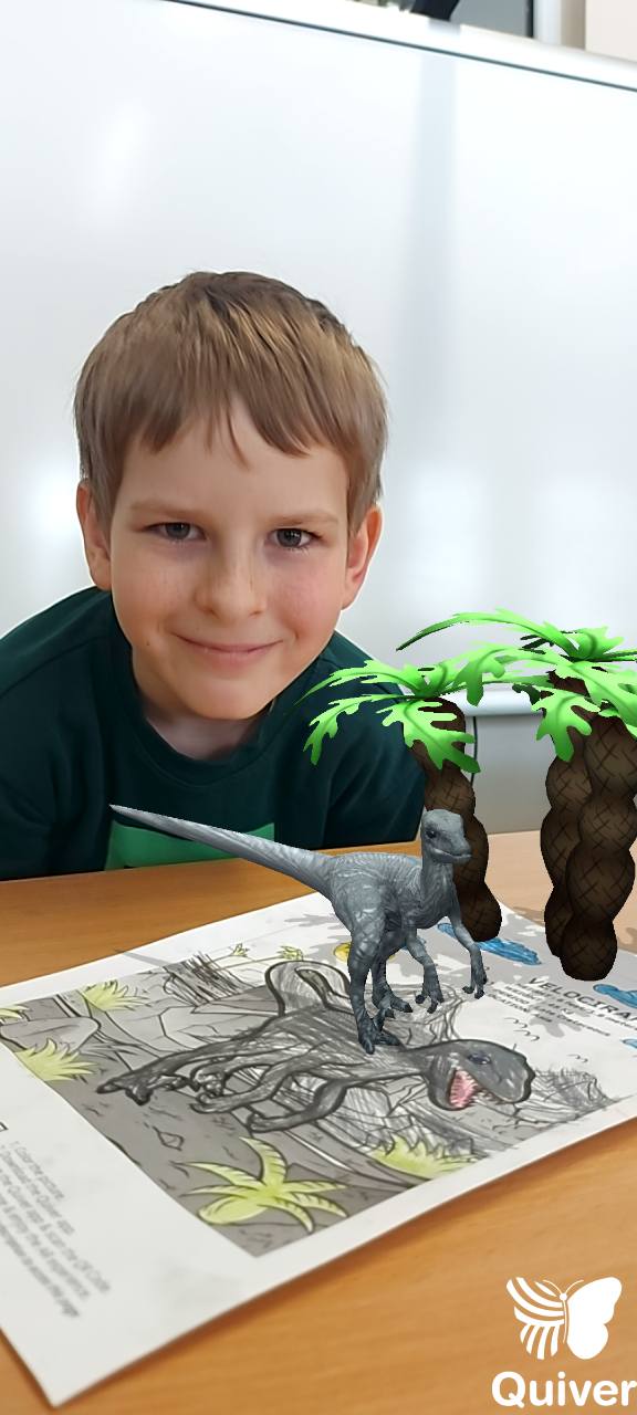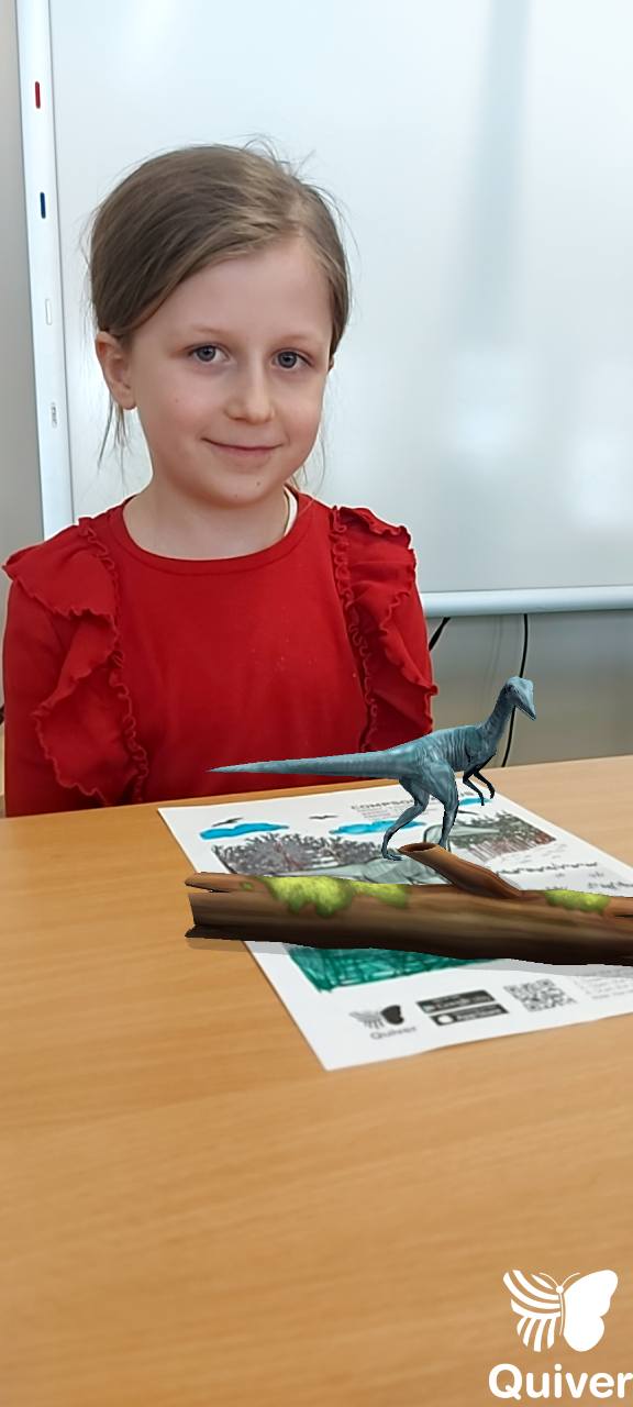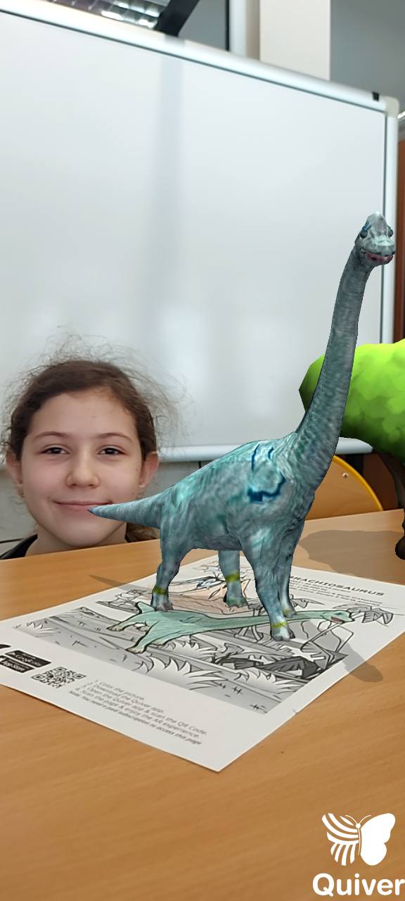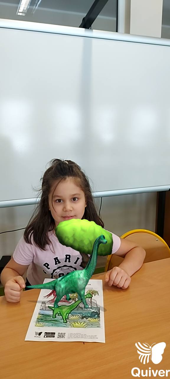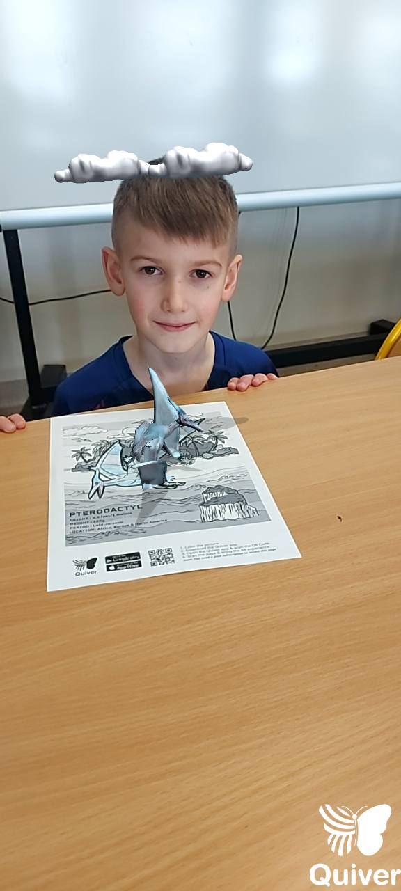 Prawdziwą „magią” okazała się jednak praca z aplikacją Quiver 📱✨. Pokolorowane przez dzieci obrazki 🎨 po zeskanowaniu ożywały na ekranie – dinozaury poruszały się, oddychały i wyglądały tak realistycznie, jakby właśnie wyszły z prehistorycznego lasu! 🌴🦕 Zachwytom nie było końca! 😍👏