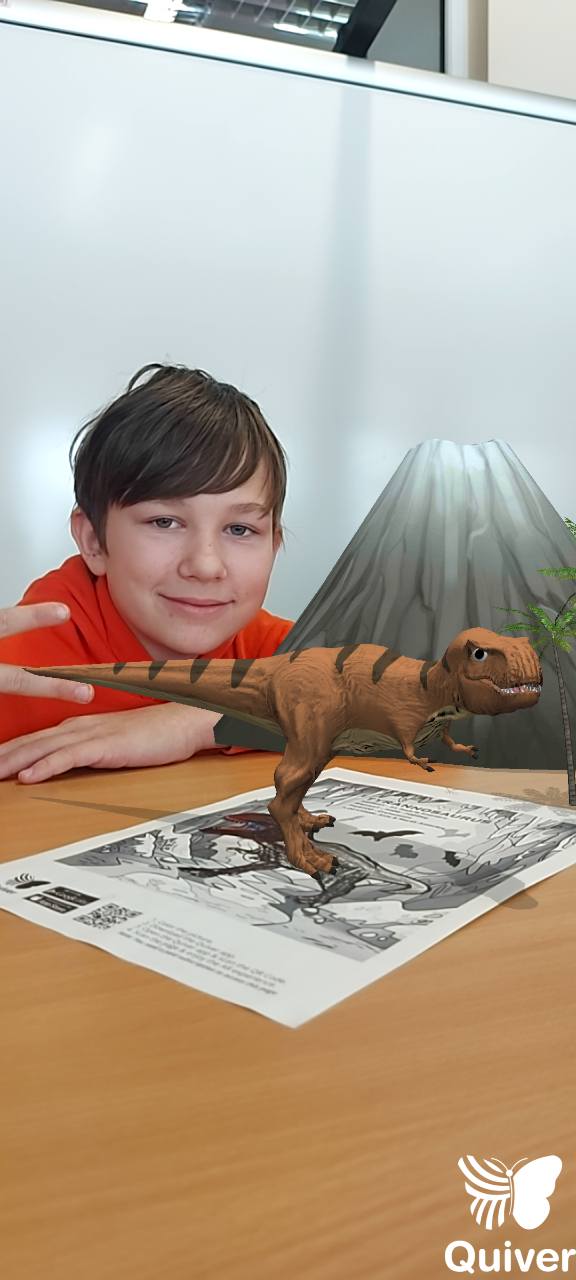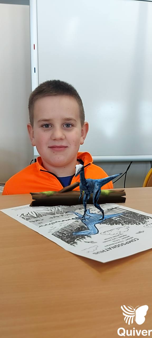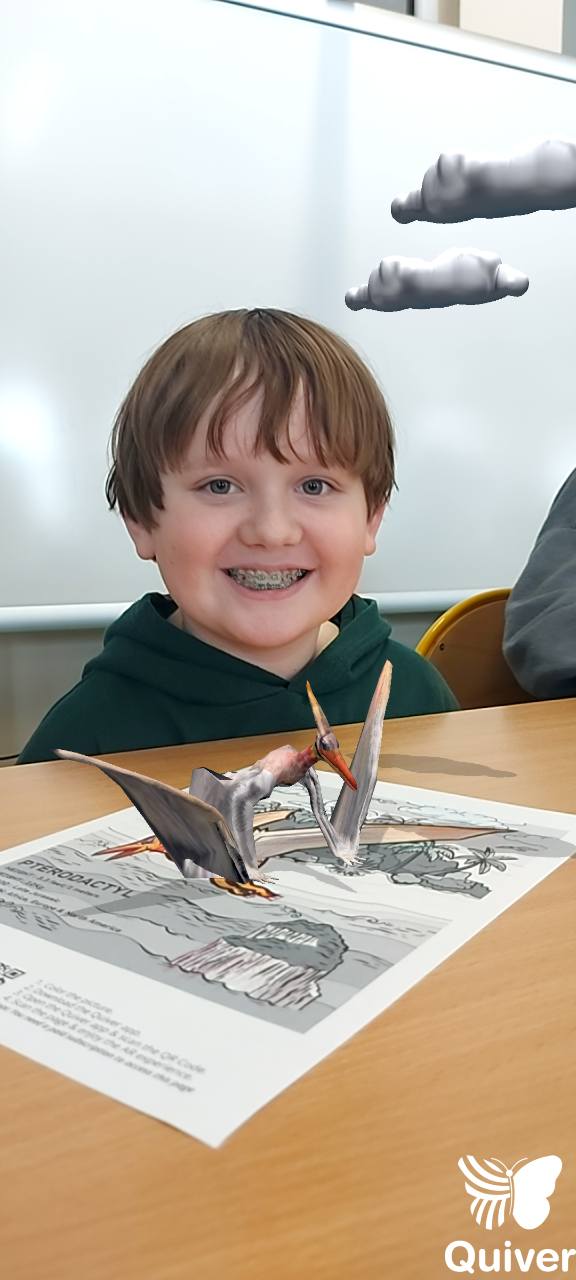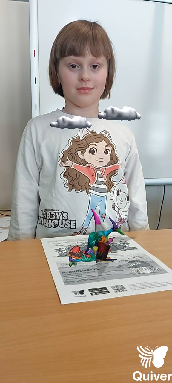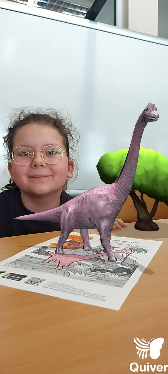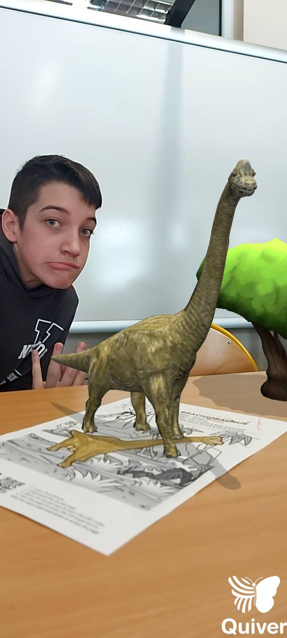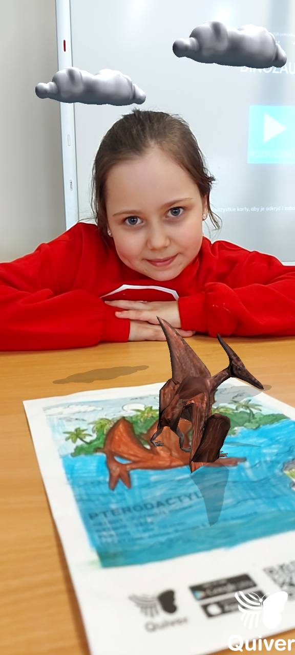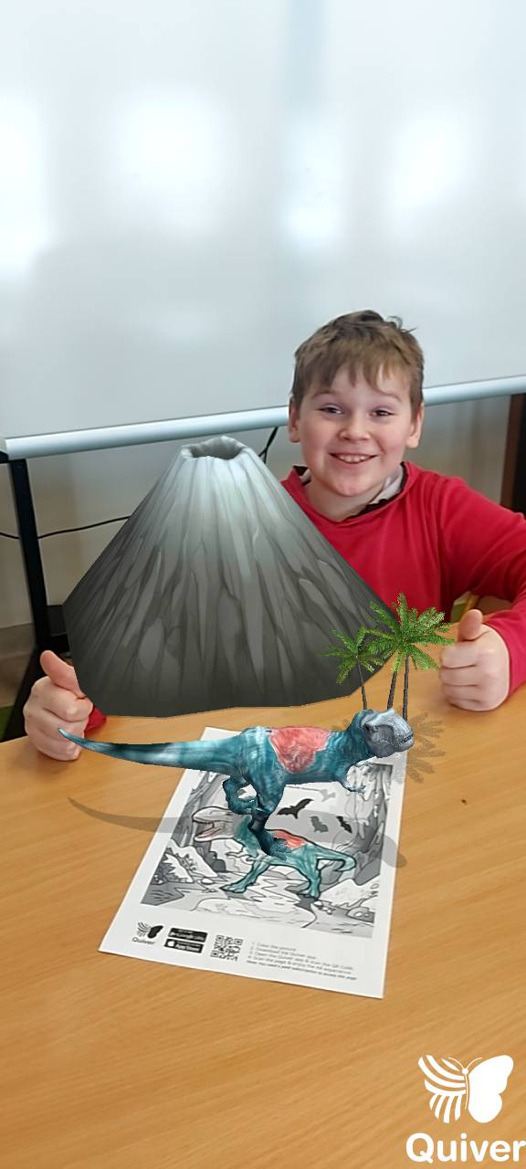 Prawdziwą „magią” okazała się jednak praca z aplikacją Quiver 📱✨. Pokolorowane przez dzieci obrazki 🎨 po zeskanowaniu ożywały na ekranie – dinozaury poruszały się, oddychały i wyglądały tak realistycznie, jakby właśnie wyszły z prehistorycznego lasu! 🌴🦕 Zachwytom nie było końca! 😍👏
