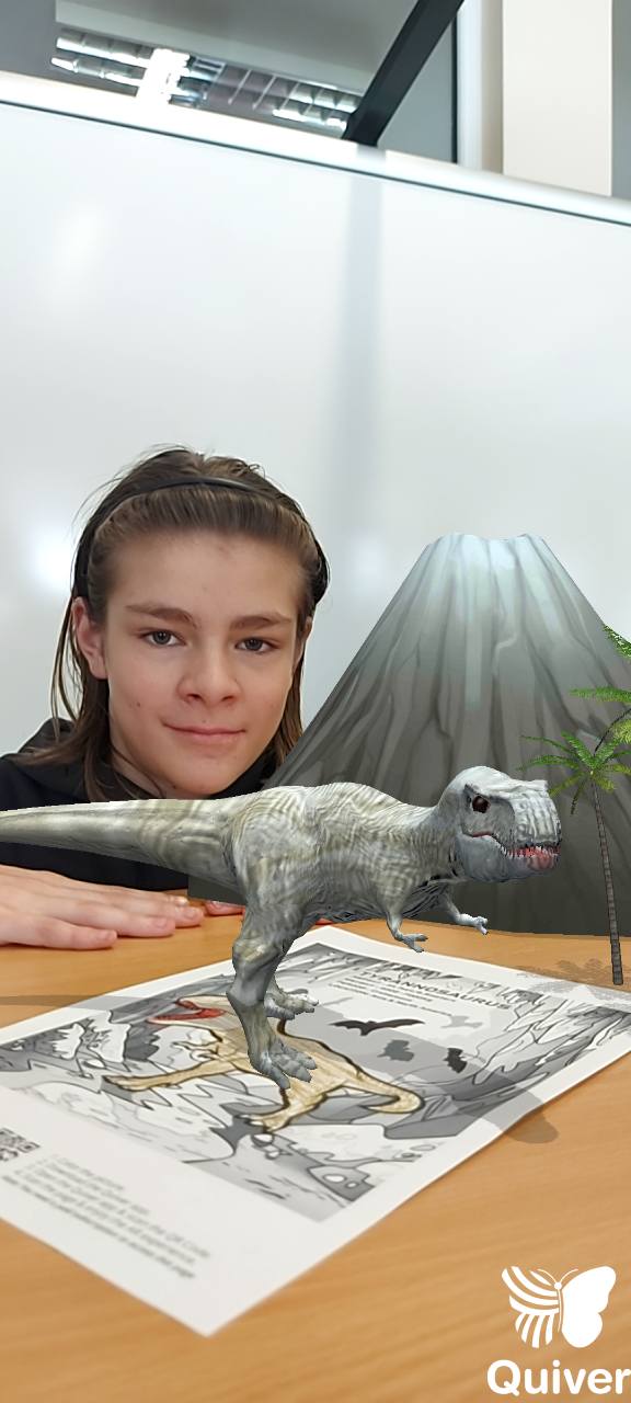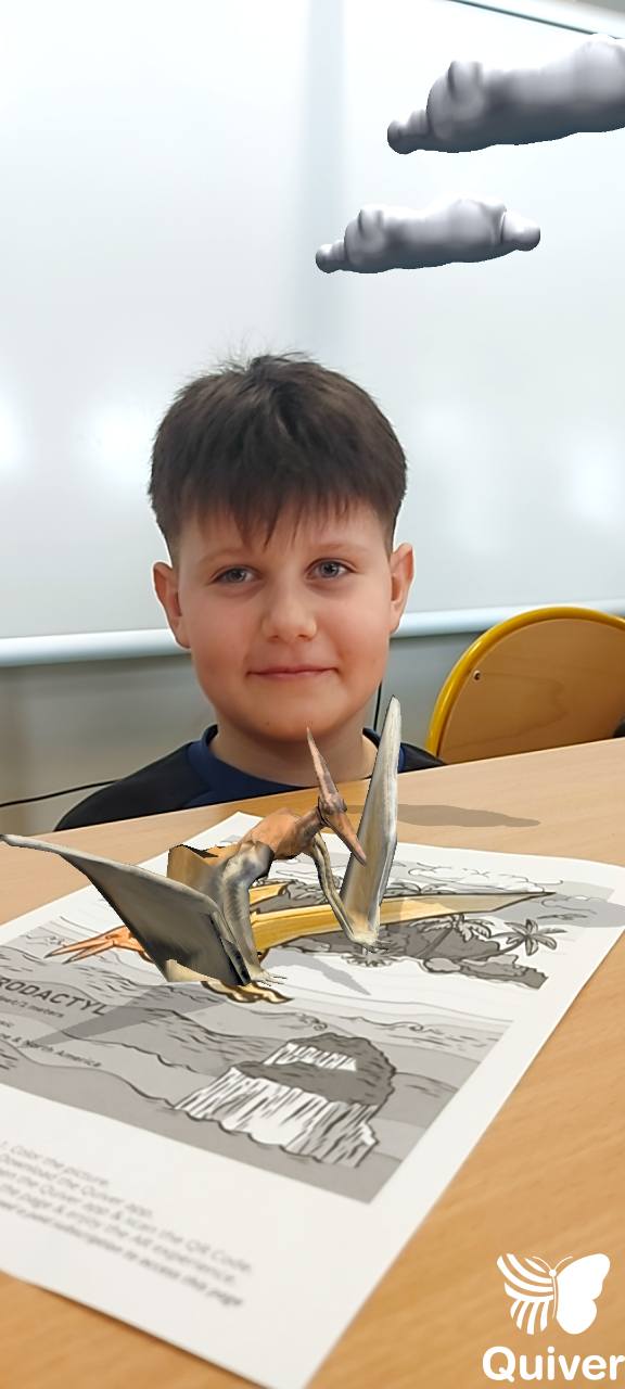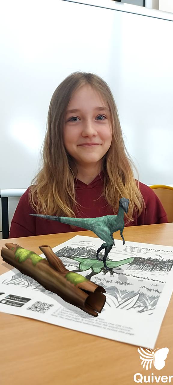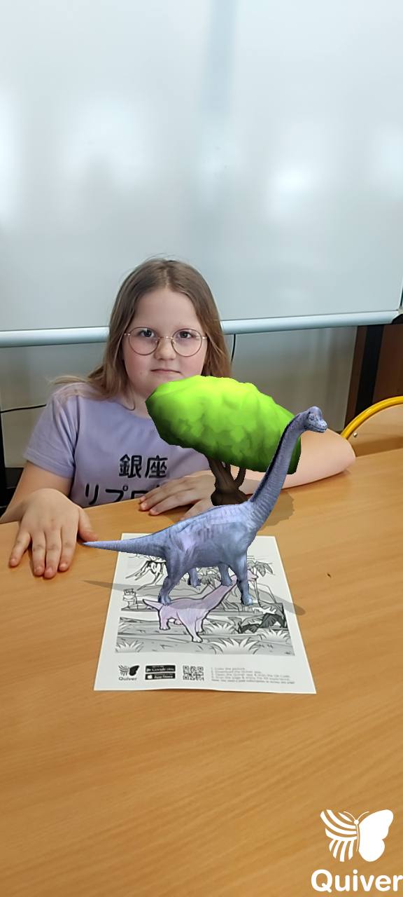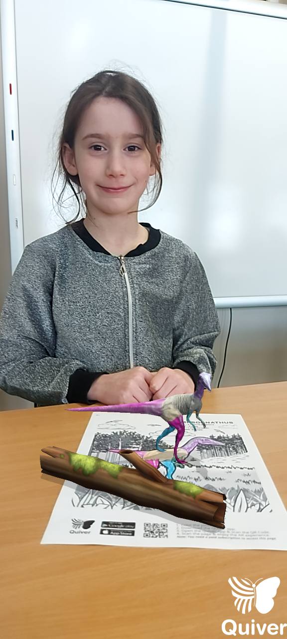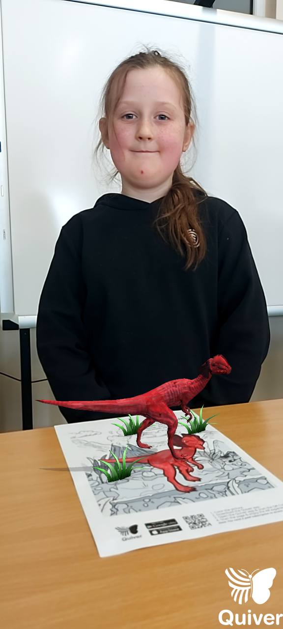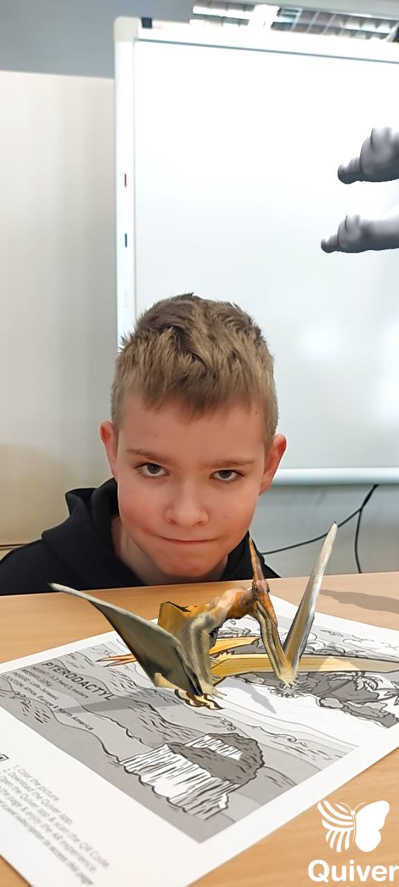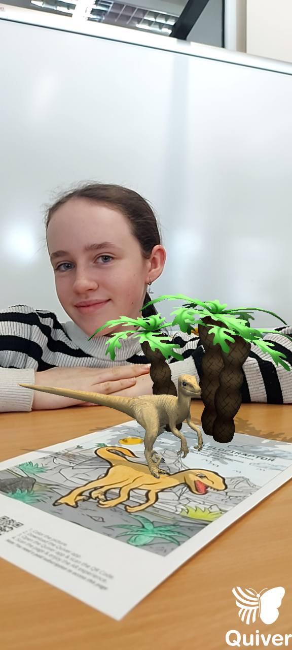 Prawdziwą „magią” okazała się jednak praca z aplikacją Quiver 📱✨. Pokolorowane przez dzieci obrazki 🎨 po zeskanowaniu ożywały na ekranie – dinozaury poruszały się, oddychały i wyglądały tak realistycznie, jakby właśnie wyszły z prehistorycznego lasu! 🌴🦕 Zachwytom nie było końca! 😍👏