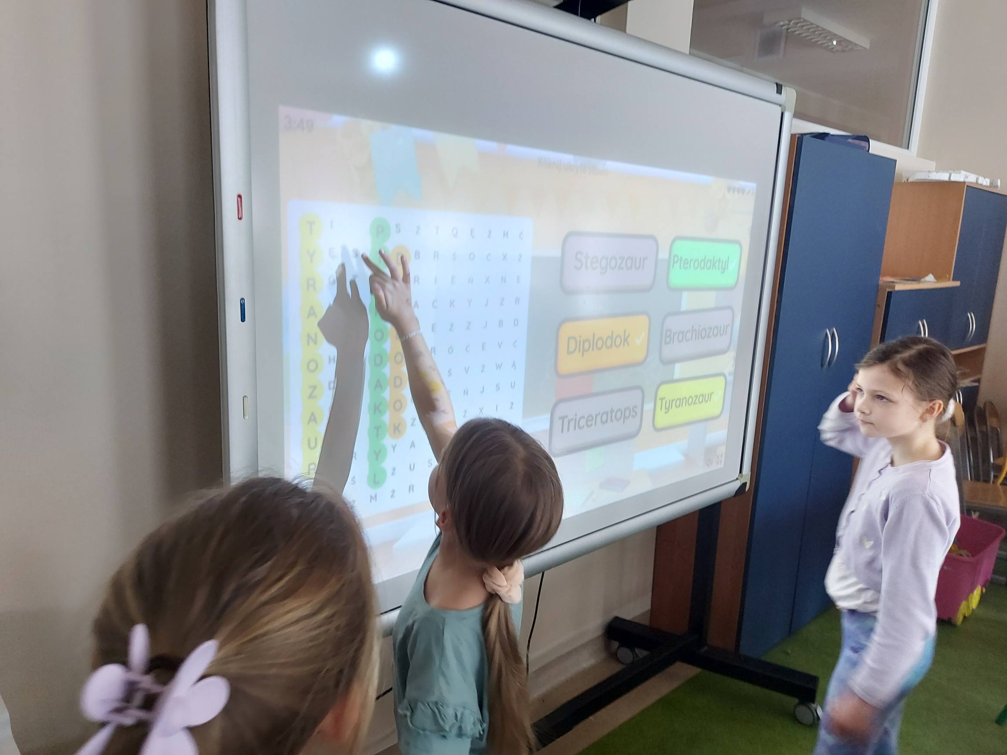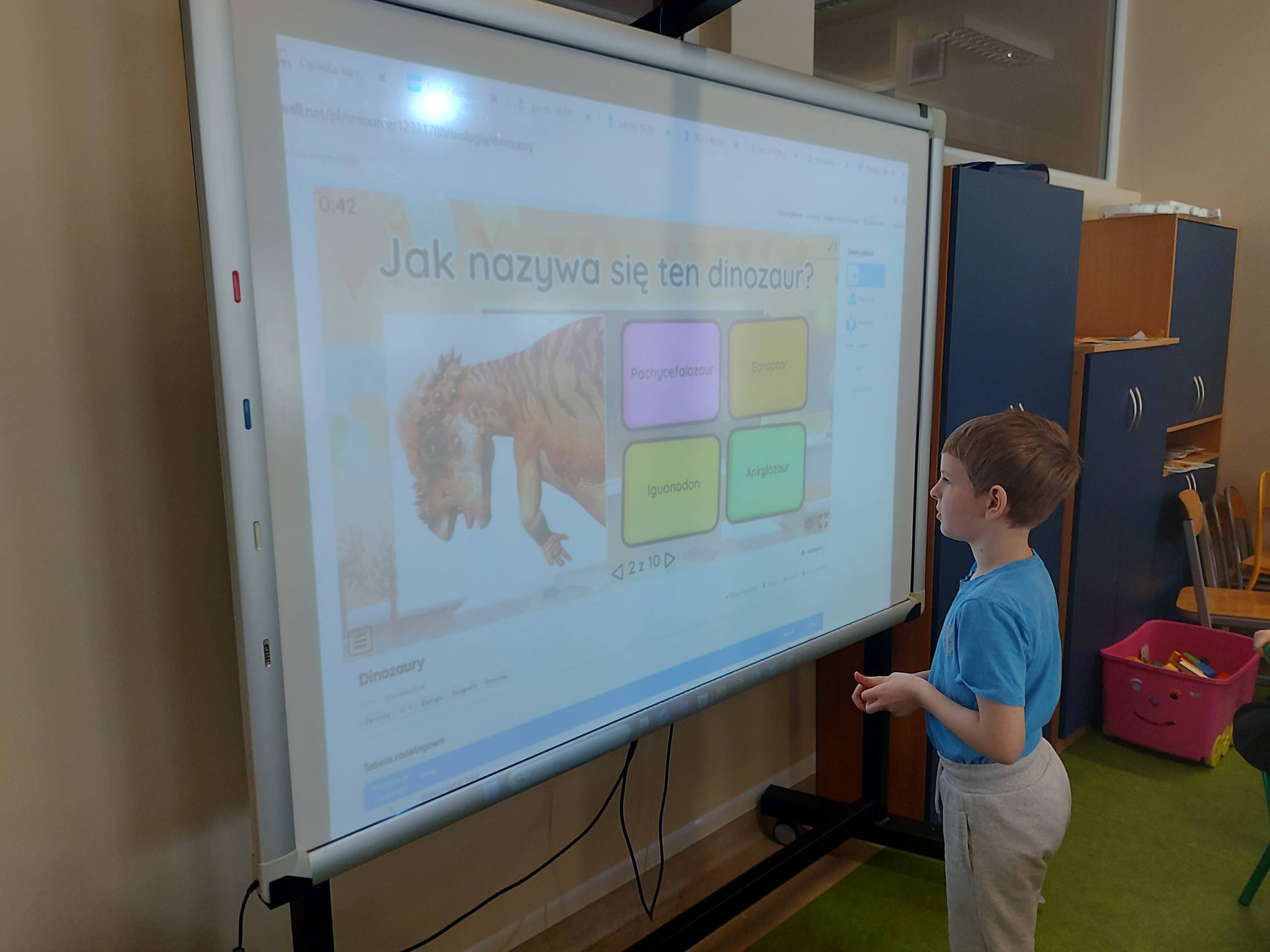 Ogromne emocje wzbudził także interaktywny quiz 💻❓, w którym młodzi odkrywcy mogli sprawdzić swoją wiedzę o prehistorycznych gigantach 🦴📚. Okazało się, że nasi świetliczowicze wiedzą naprawdę sporo – potrafią odróżnić roślinożerców od mięsożerców i znają wiele ciekawostek o życiu sprzed milionów lat! 🌱🍖🦖