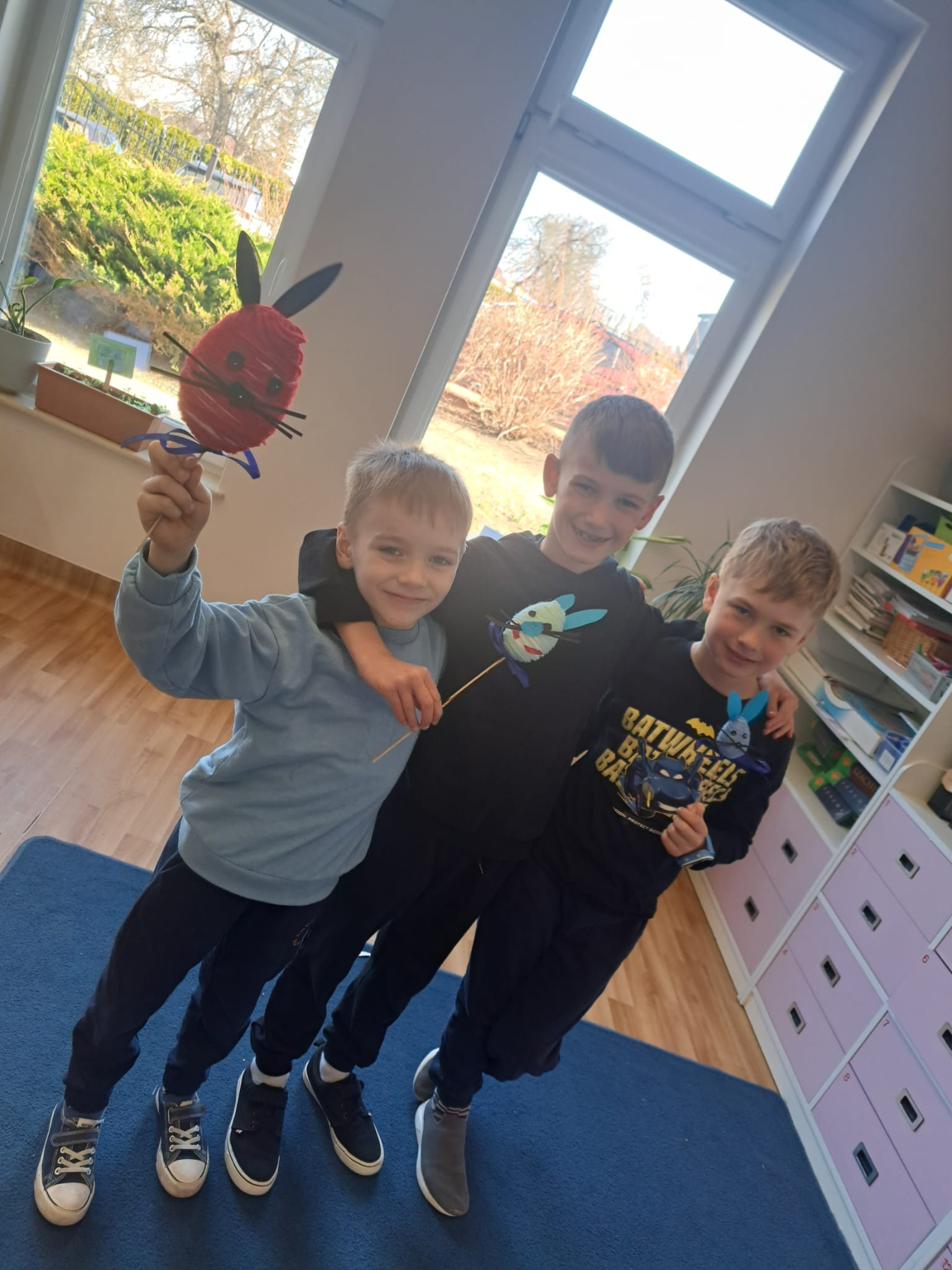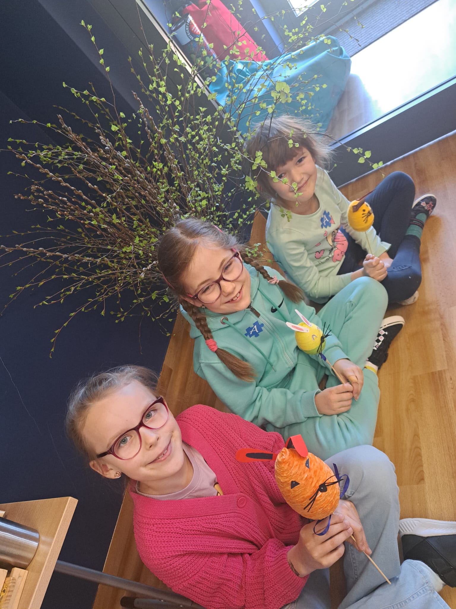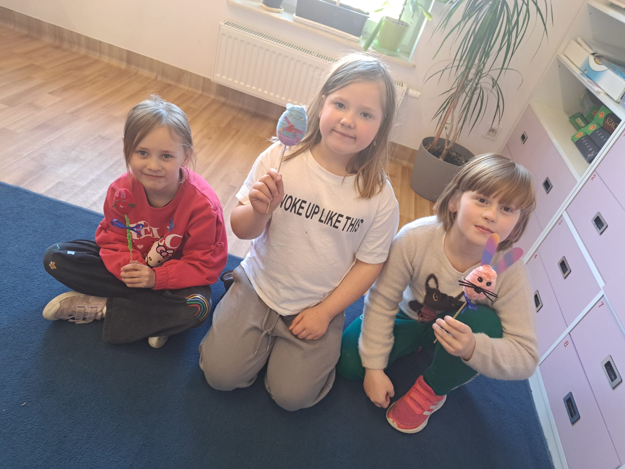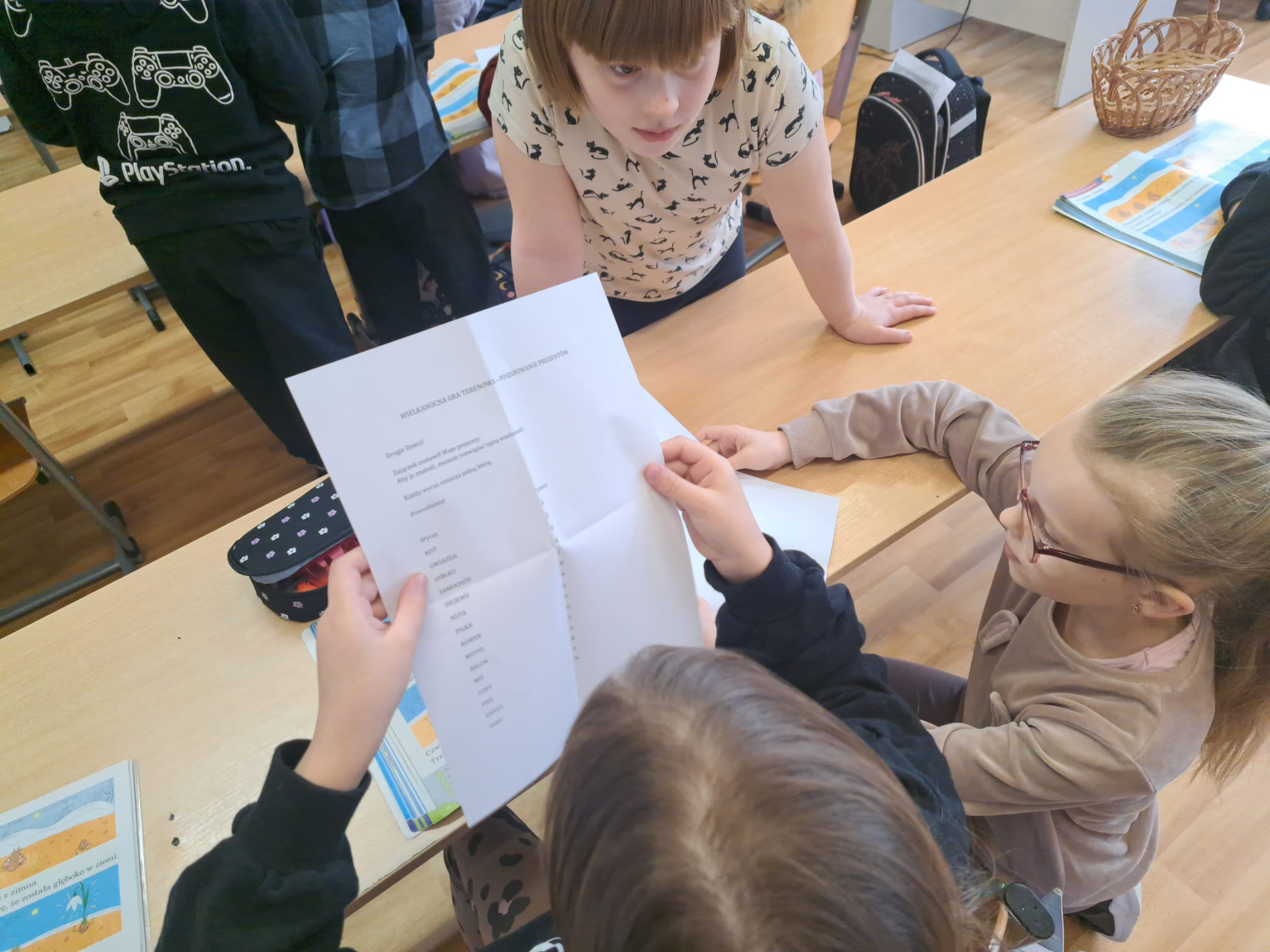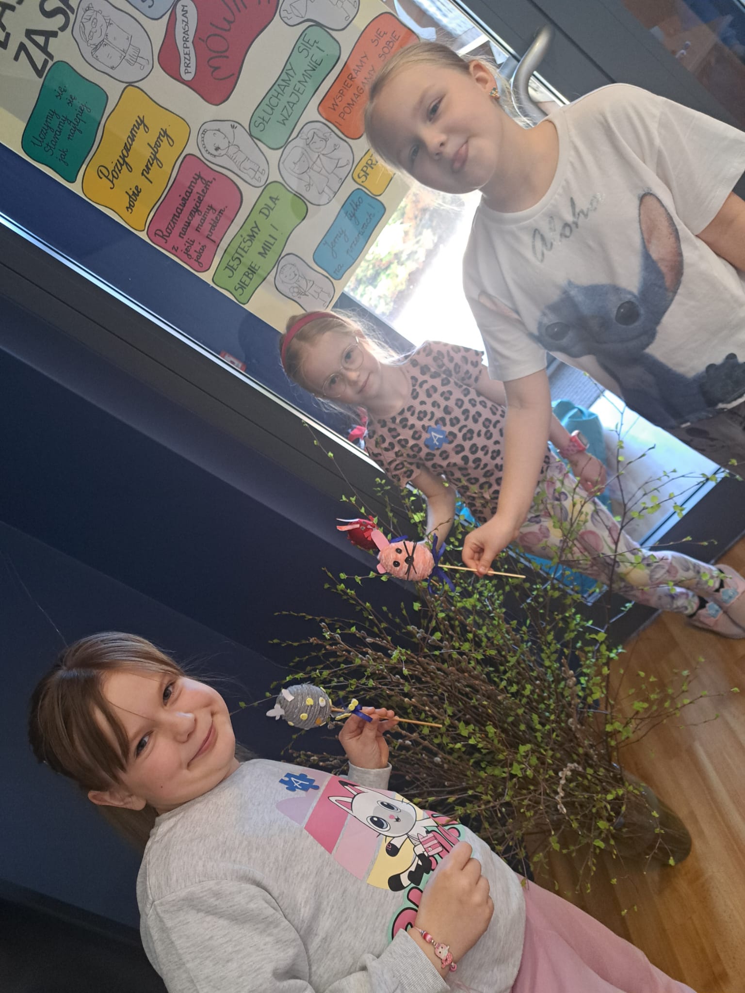 Do klasy pierwszej przykicał Zajączek Wielkanocny i sprawił dzieciom ogromną niespodziankę. Zostawił list z zadaniami do odkodowania, które stanowiły wskazówki prowadzące do miejsc, w których ukrył wielkanocne prezenty. Pierwszoklasiści z wielkim zaangażowaniem rozwiązywali zagadki, a każda poprawna odpowiedź przybliżała ich do odnalezienia kolejnych skrytek.