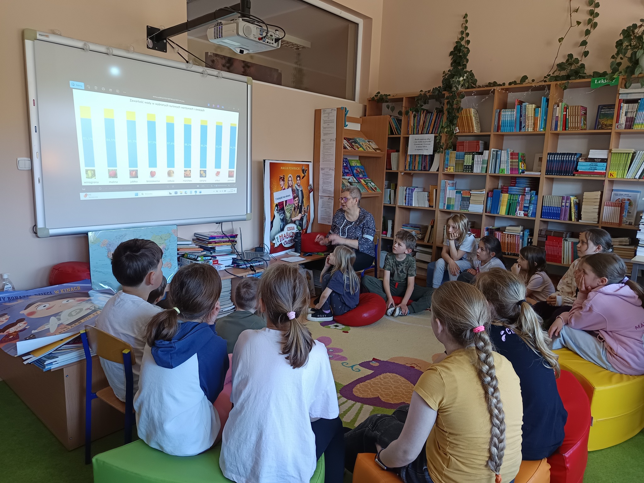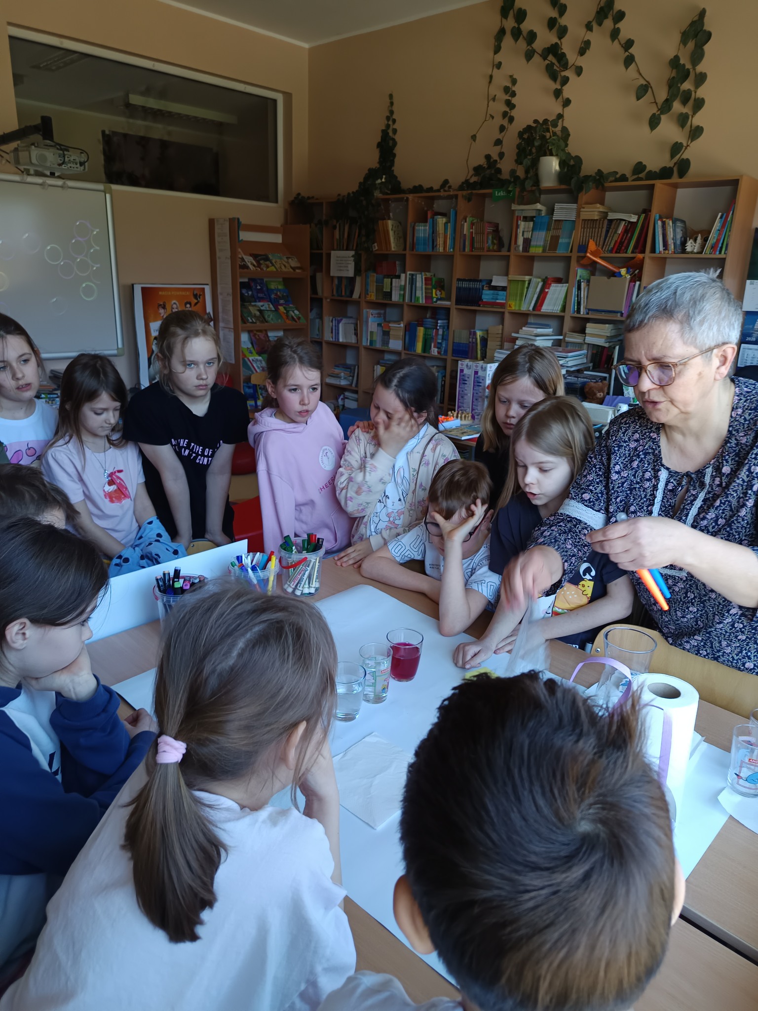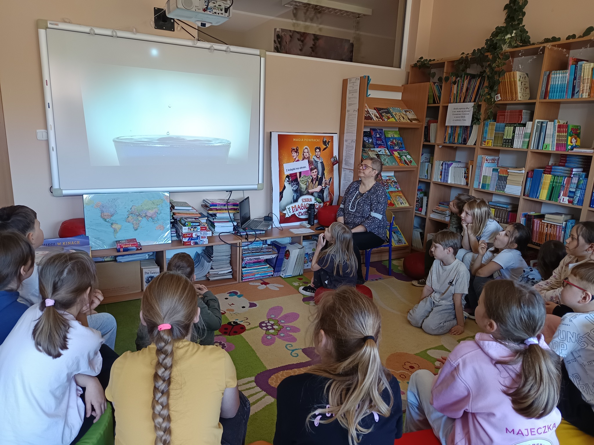 W naszej Bibliotece szkolnej odbył się pierwszy z trzech warsztatów w ramach projektu „Biblioteki pełne Dobrej Energii” Fundacji PVE Dobra Energia. Klasa 2b odkrywała sekrety wody – substancji, bez której nie byłoby życia.