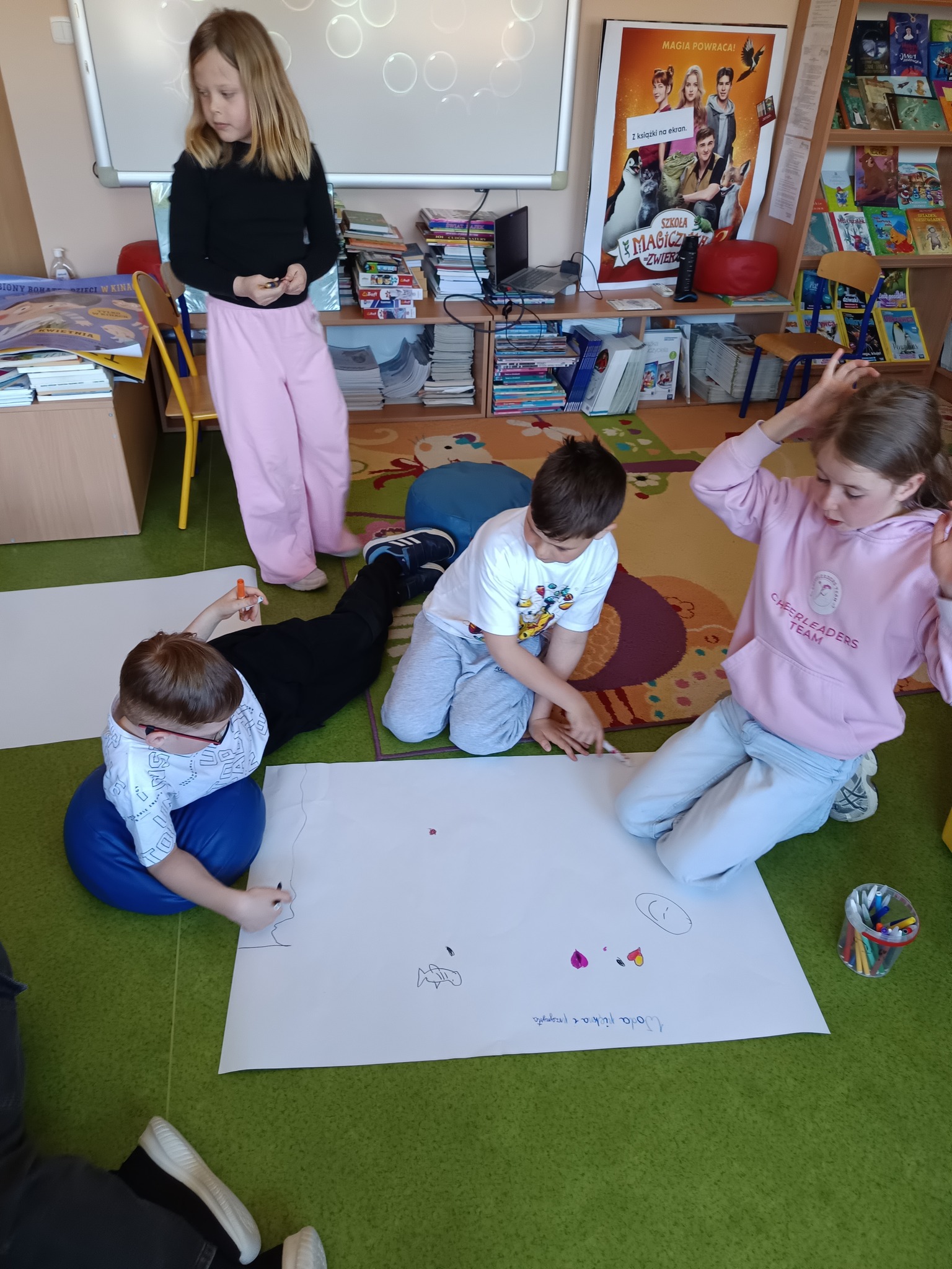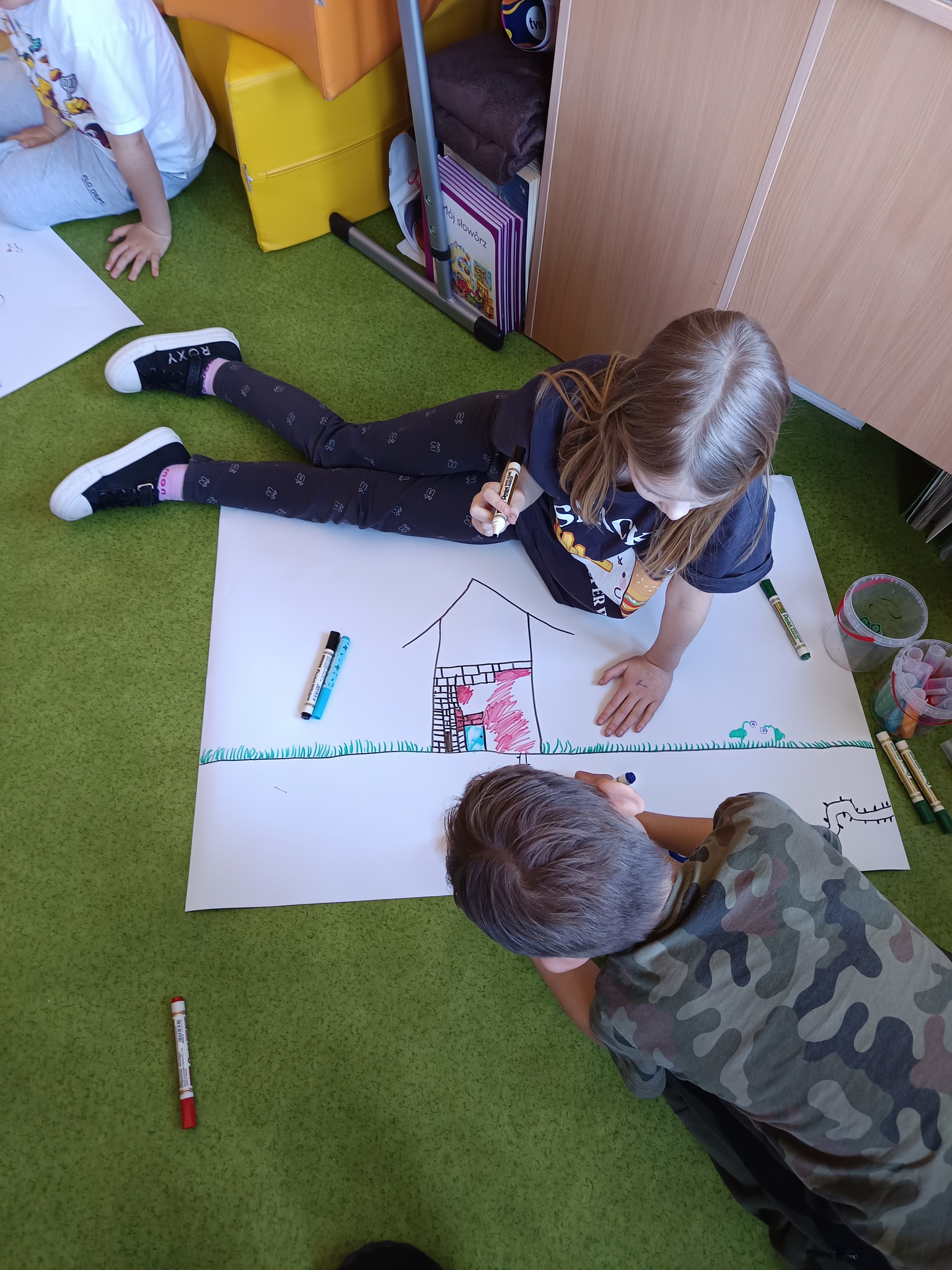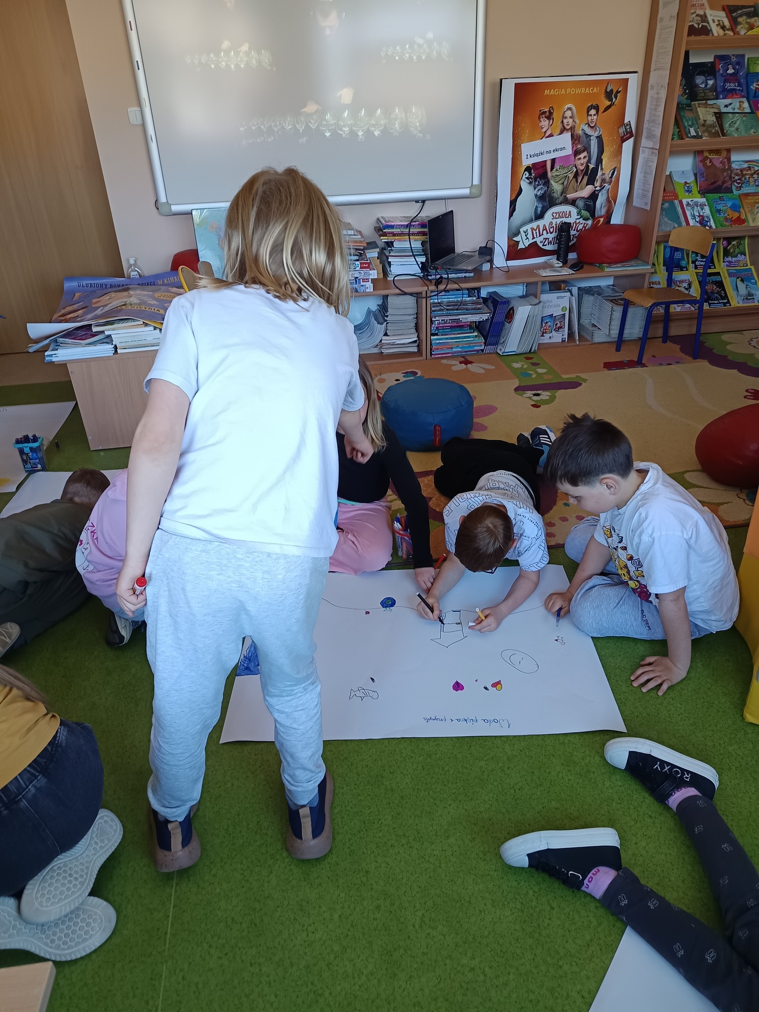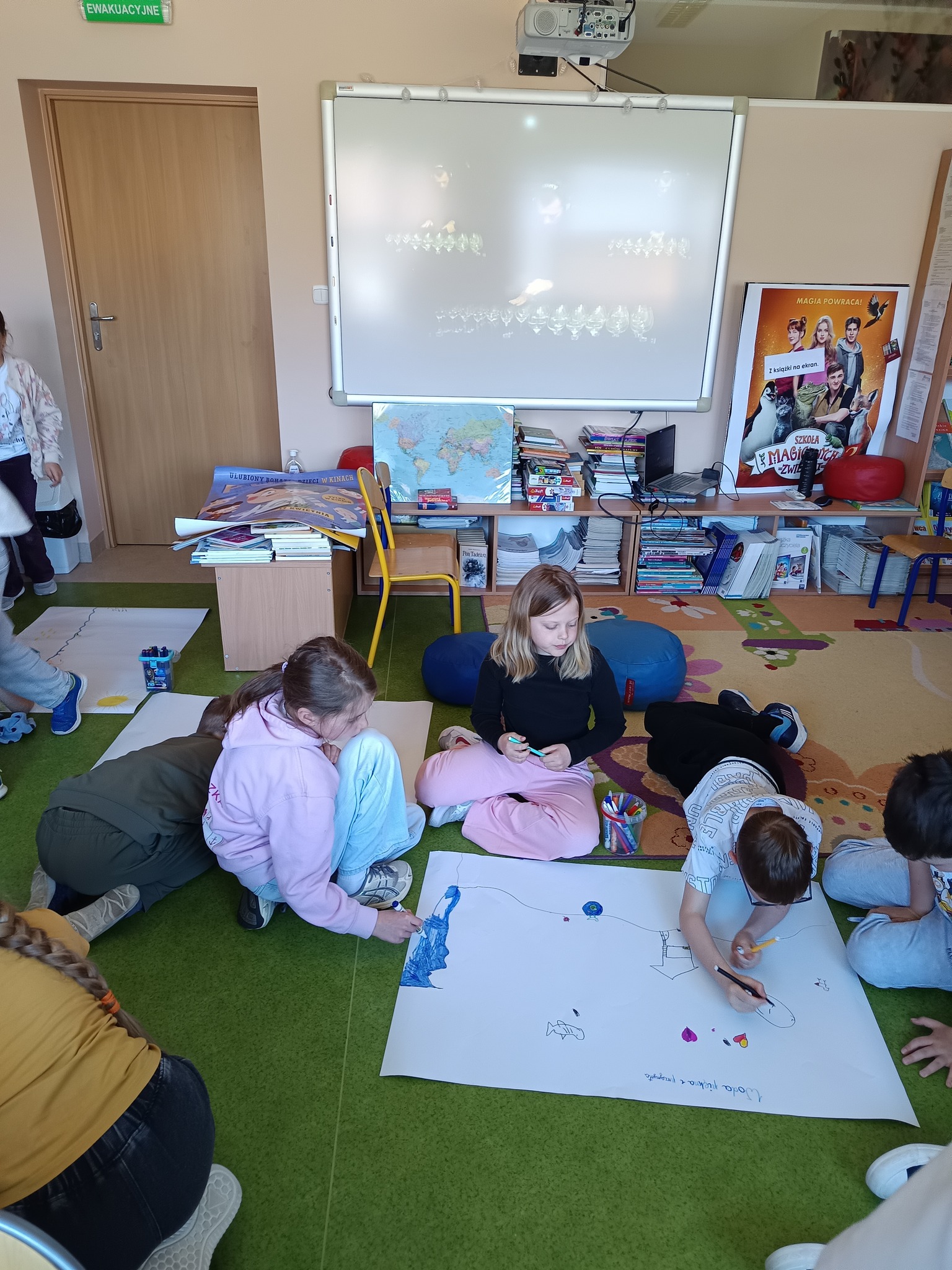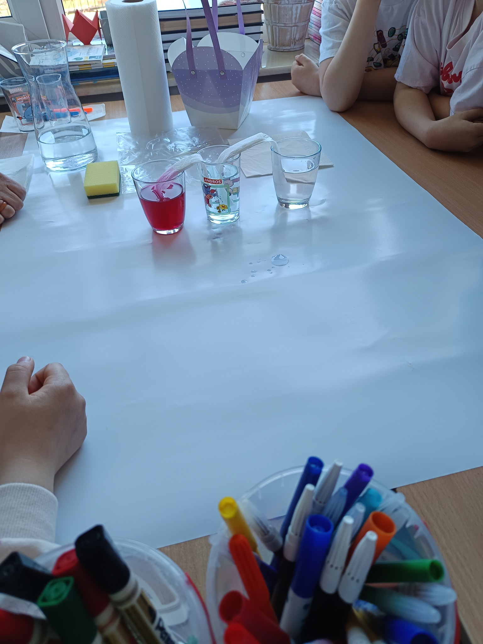 Na zakończenie dzieci pracowały nad przygotowaniem plakatów przedstawiających obieg wody w przyrodzie oraz wspólnie zastanawiały się, jak każdy z nas może dbać o ten Wielki Skarb.