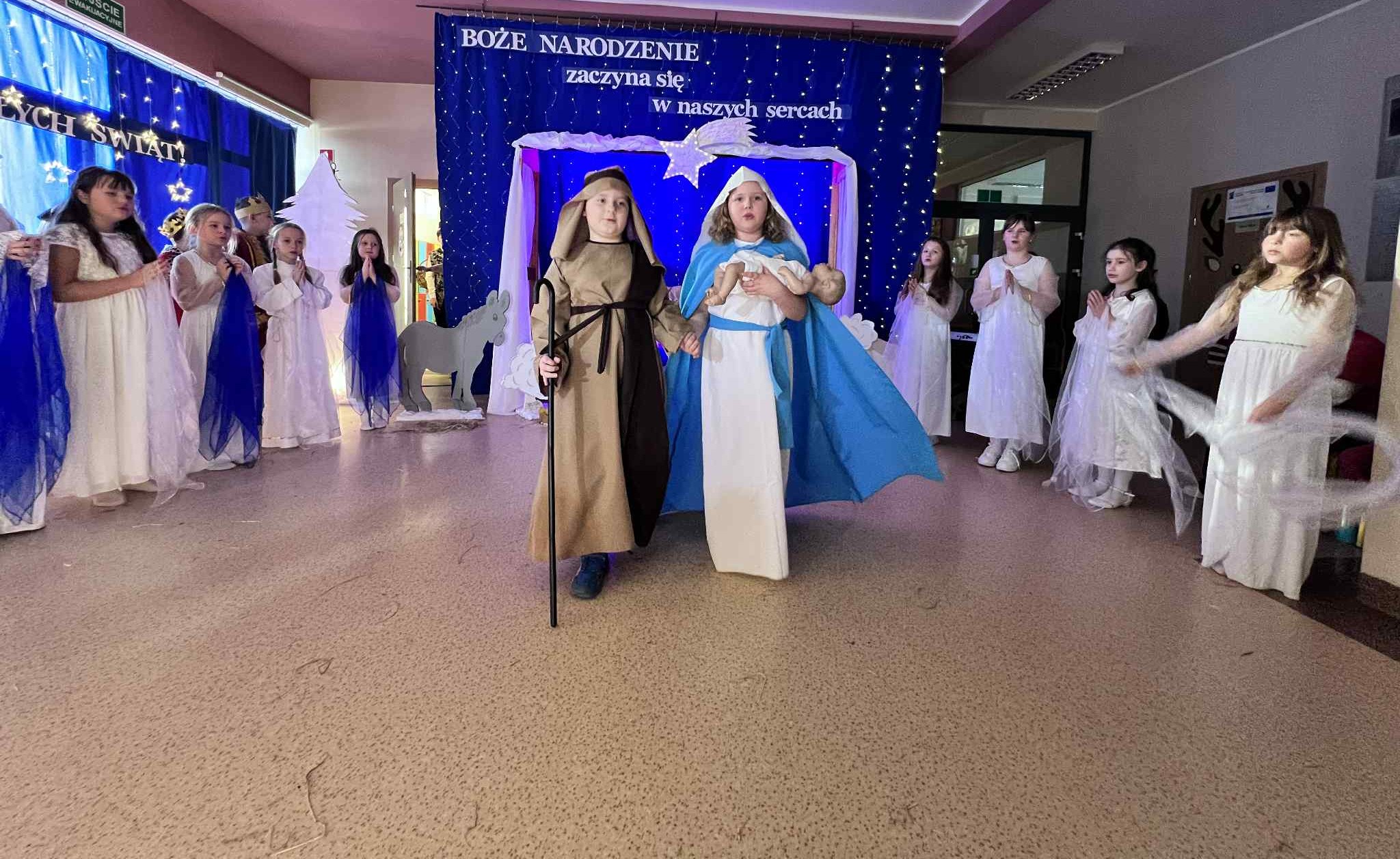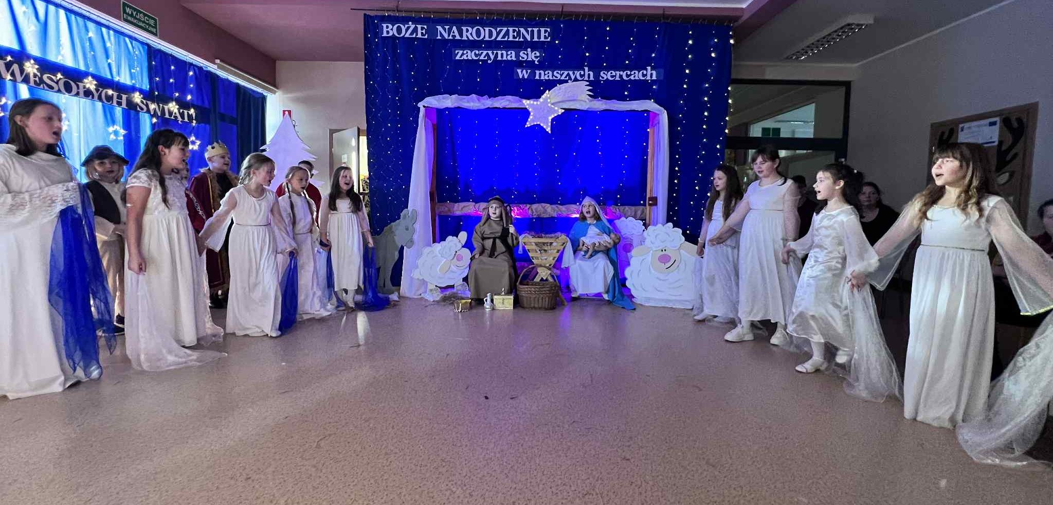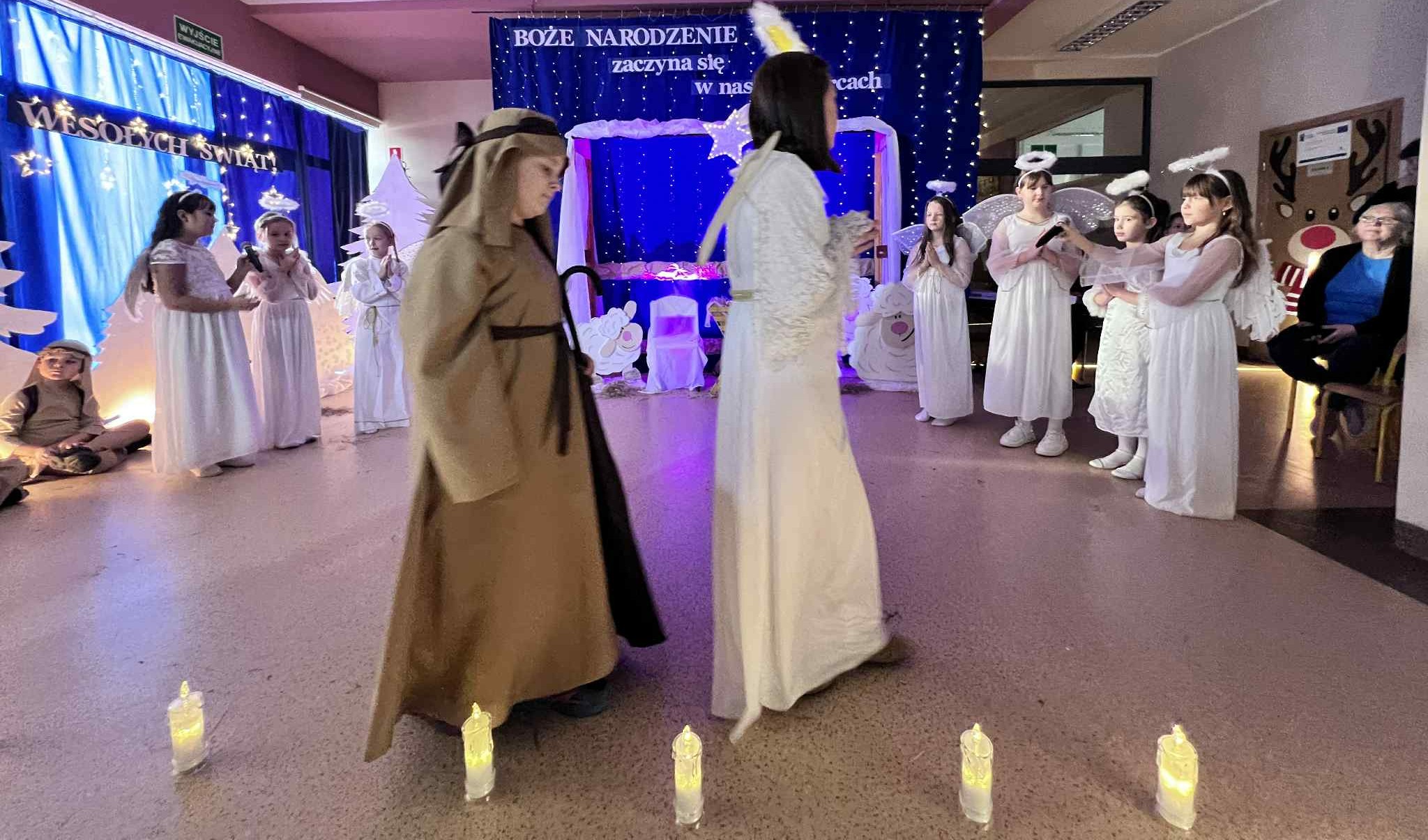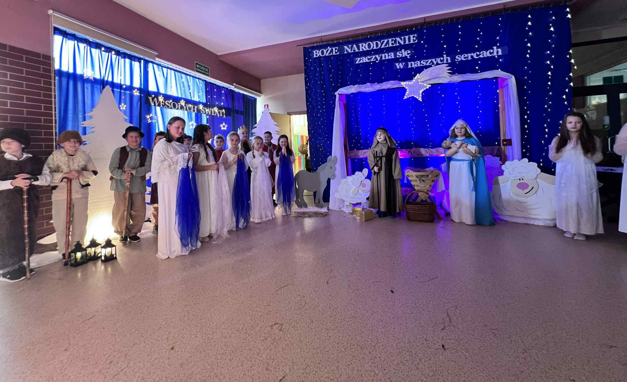 Tegoroczne jasełka opowiedziały wzruszającą historię narodzin Jezusa — Maryi i Józefa, którzy odrzuceni przez ludzi, odnaleźli schronienie w skromnej stajence. Historia ta została nie tylko opowiedziana, ale również wyśpiewana i wytańczona, co nadało całemu przedstawieniu niezwykle ciepły i emocjonalny charakter.
