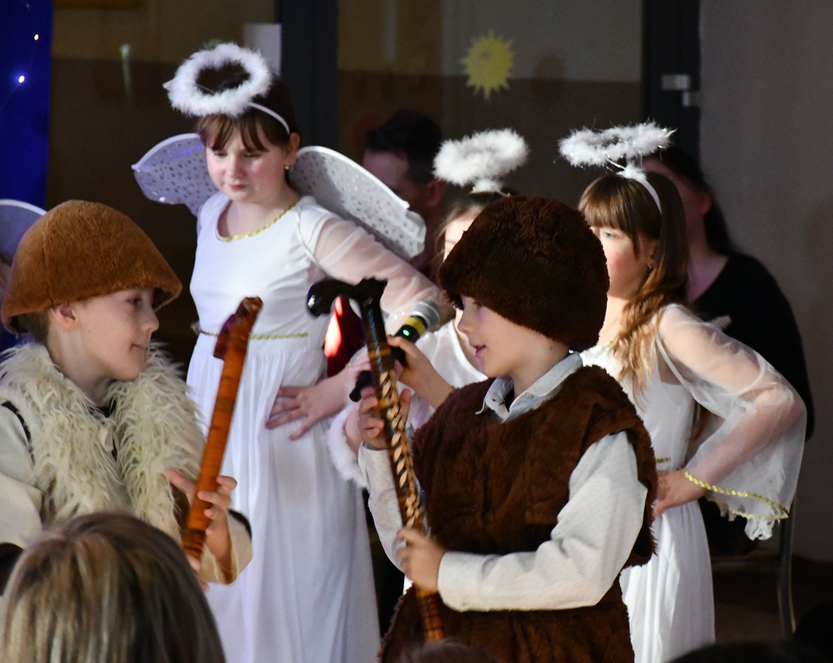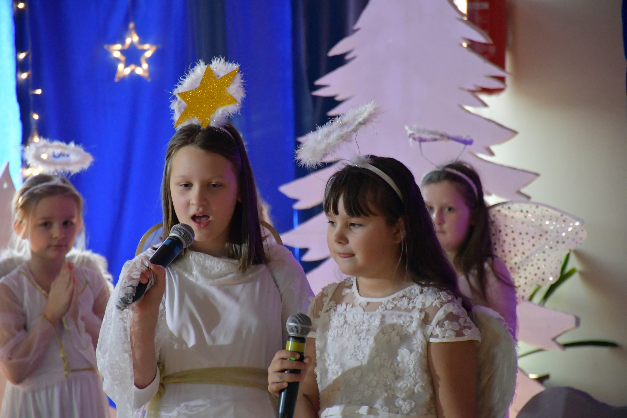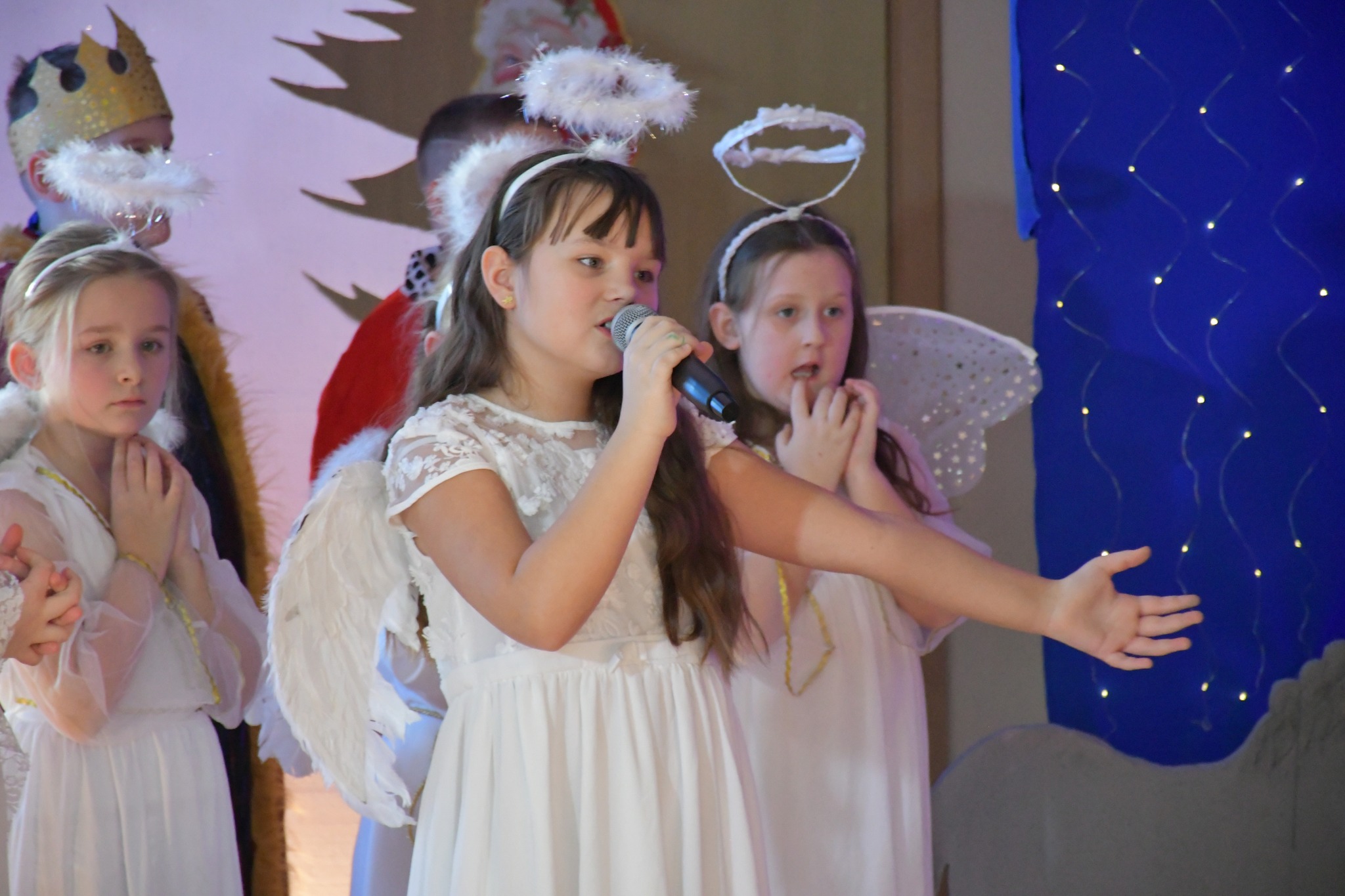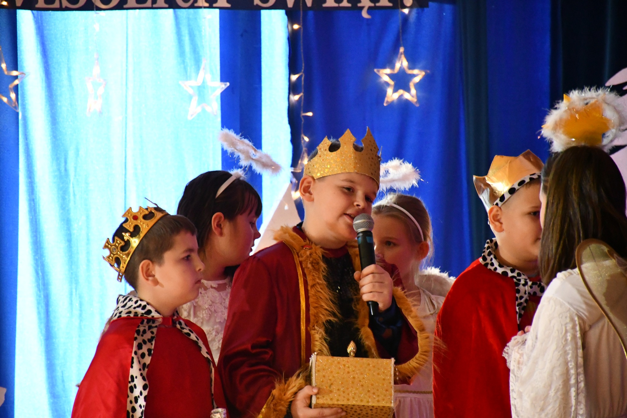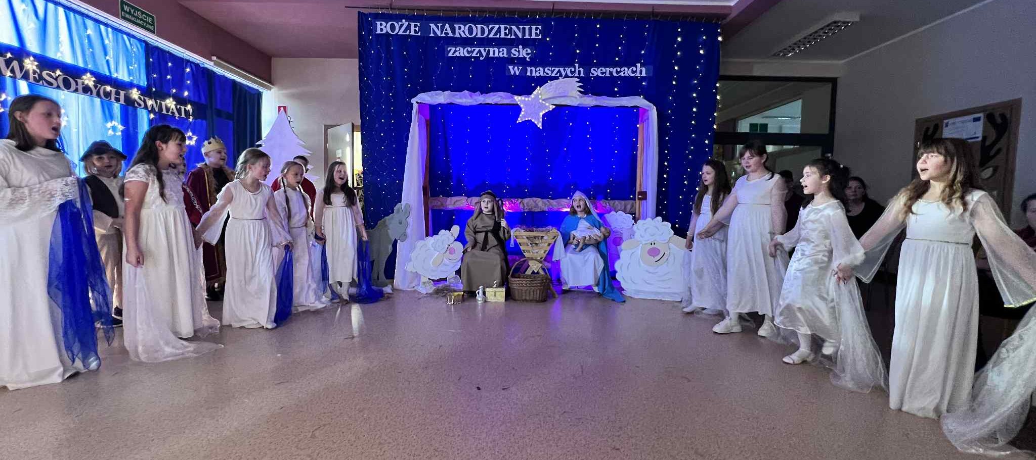 Tegoroczne jasełka opowiedziały wzruszającą historię narodzin Jezusa — Maryi i Józefa, którzy odrzuceni przez ludzi, odnaleźli schronienie w skromnej stajence. Historia ta została nie tylko opowiedziana, ale również wyśpiewana i wytańczona, co nadało całemu przedstawieniu niezwykle ciepły i emocjonalny charakter.