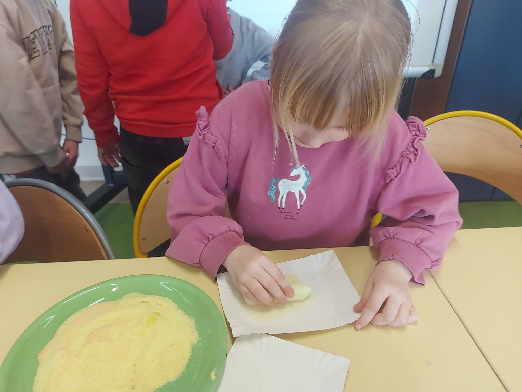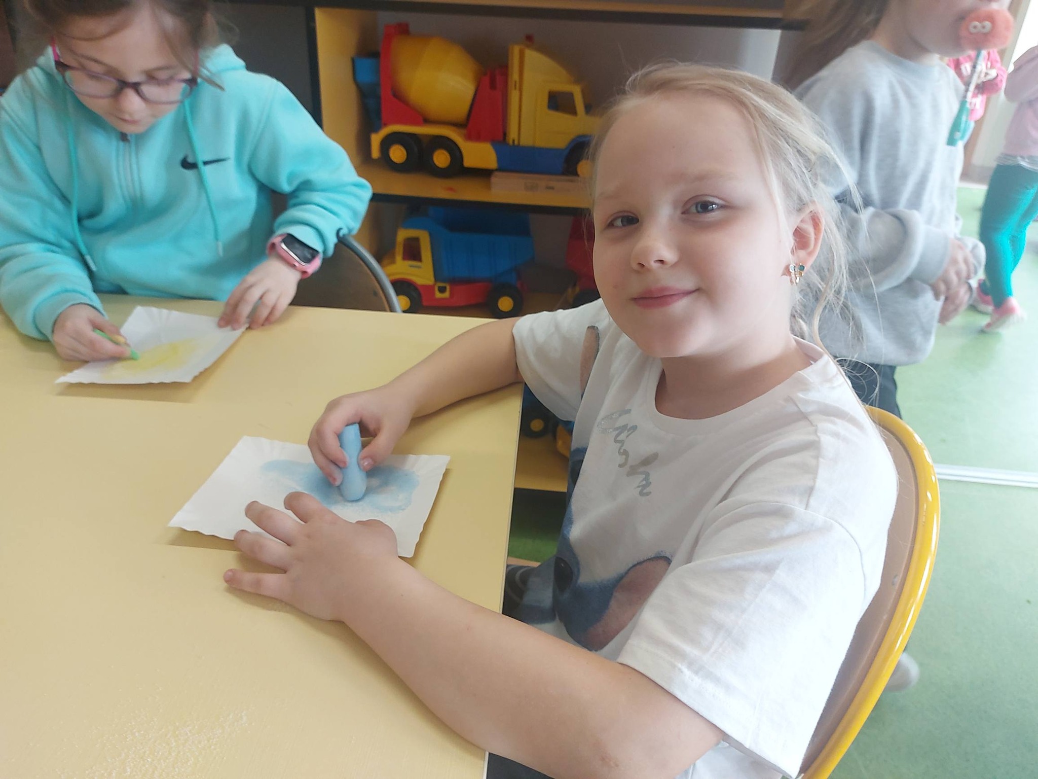 Podczas zajęć w **Kreatywnej Świetlicy** dzieci wyruszyły w niezwykłą podróż pełną barw, eksperymentów i radości odkrywania. Przy użyciu kolorowej kredy przekonały się, że nawet zwykła sól może zamienić się w prawdziwą paletę tęczowych odcieni. Każdy mógł poczuć się jak mały naukowiec… i artysta jednocześnie! 🎨