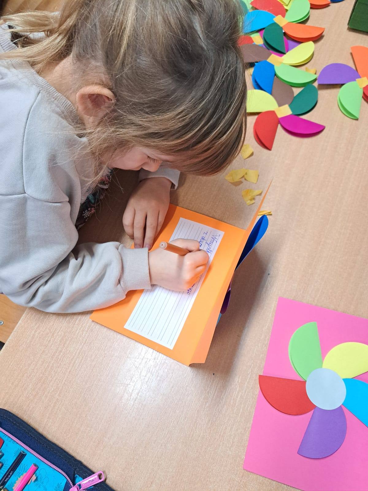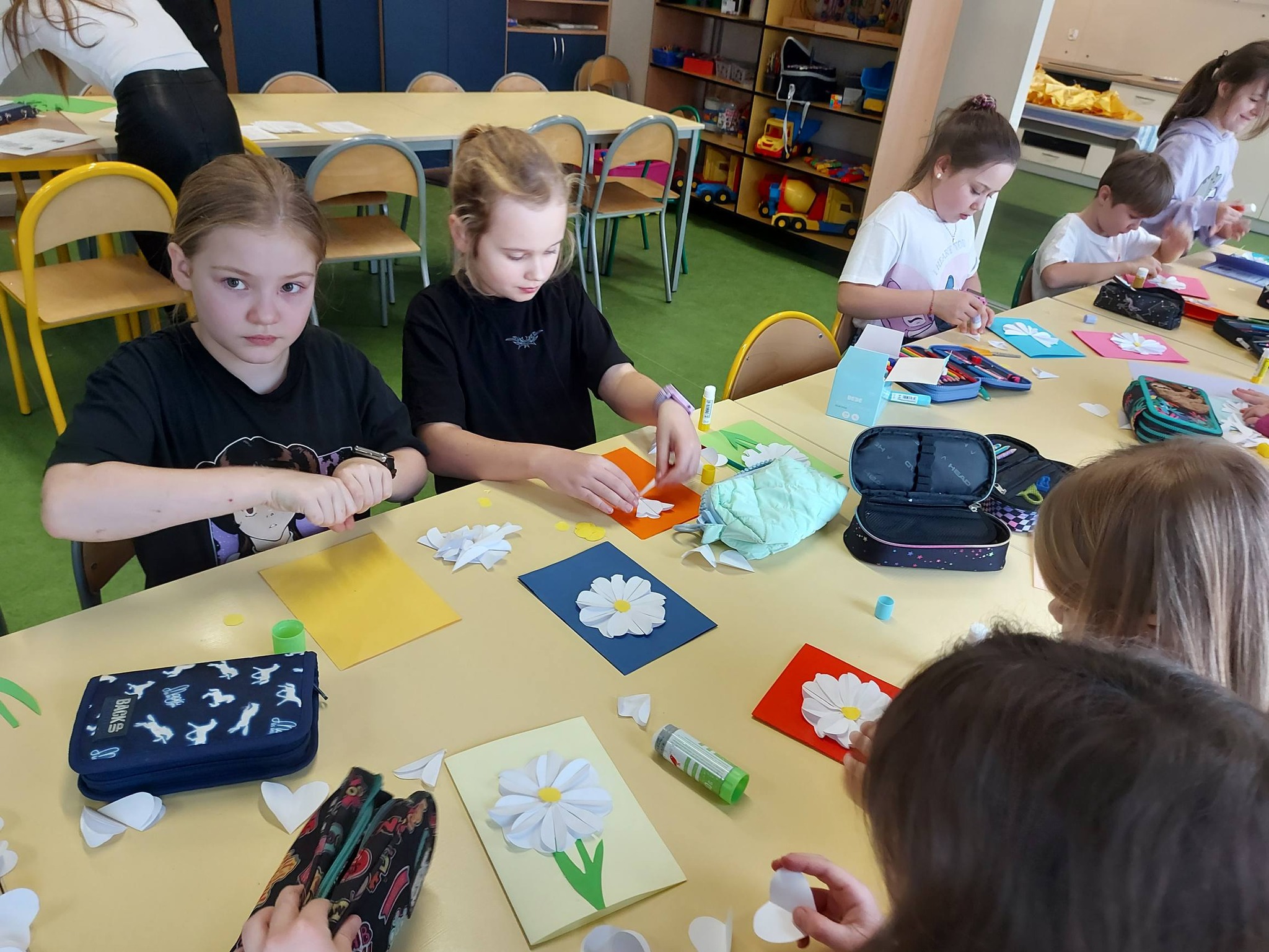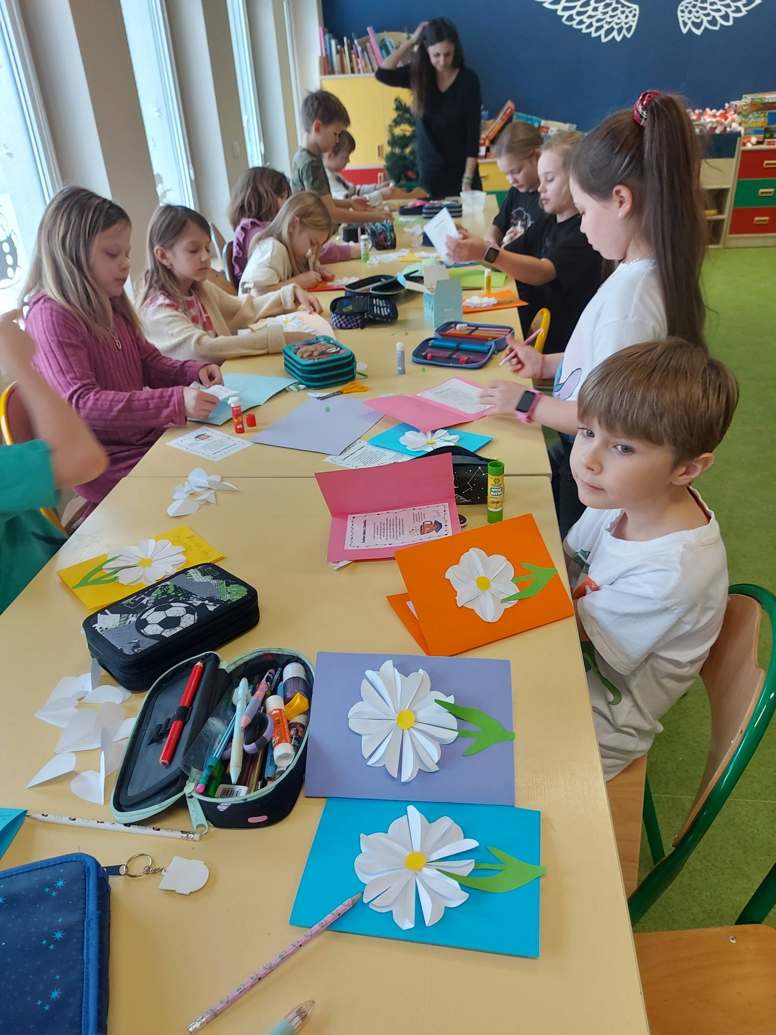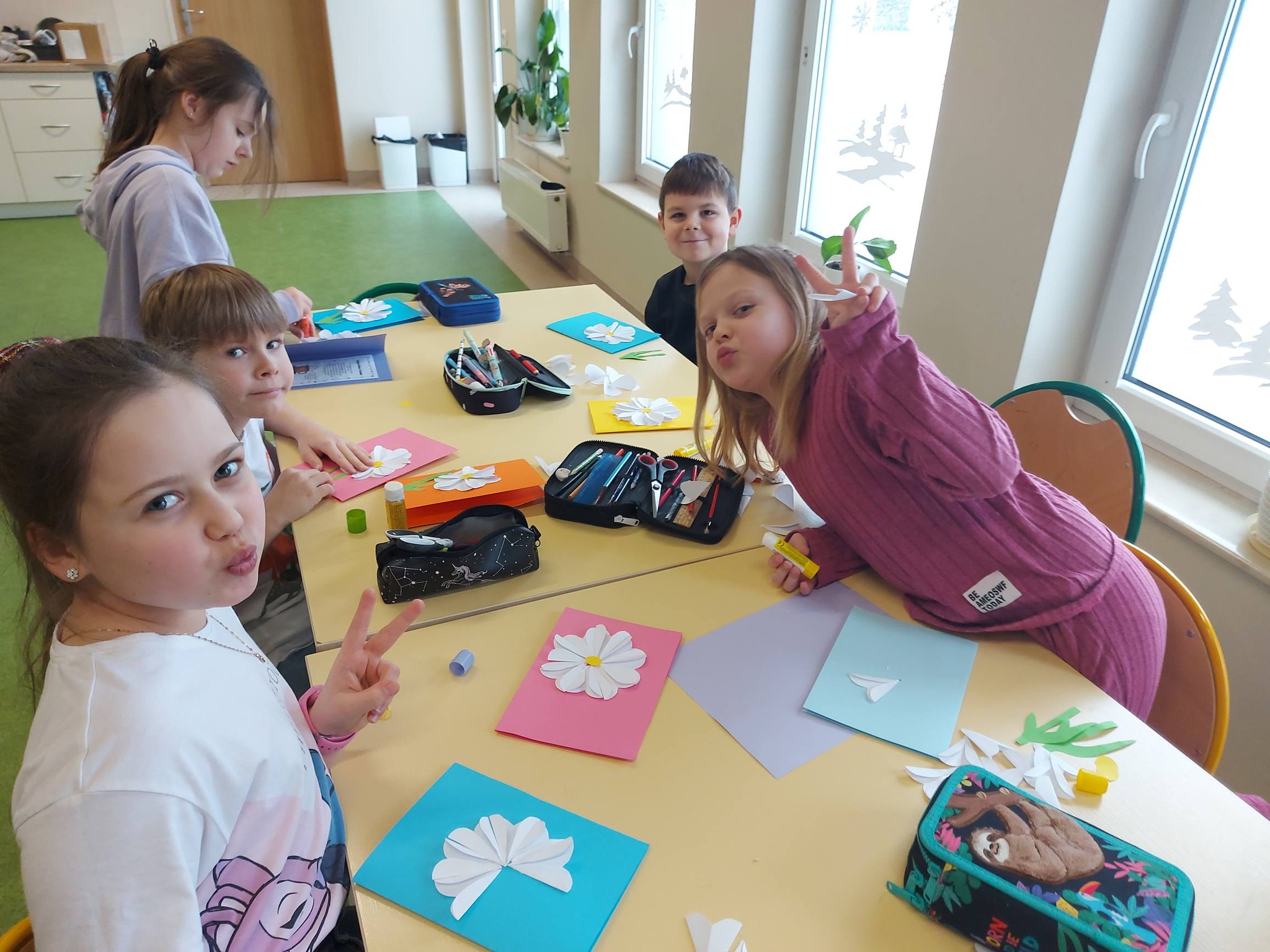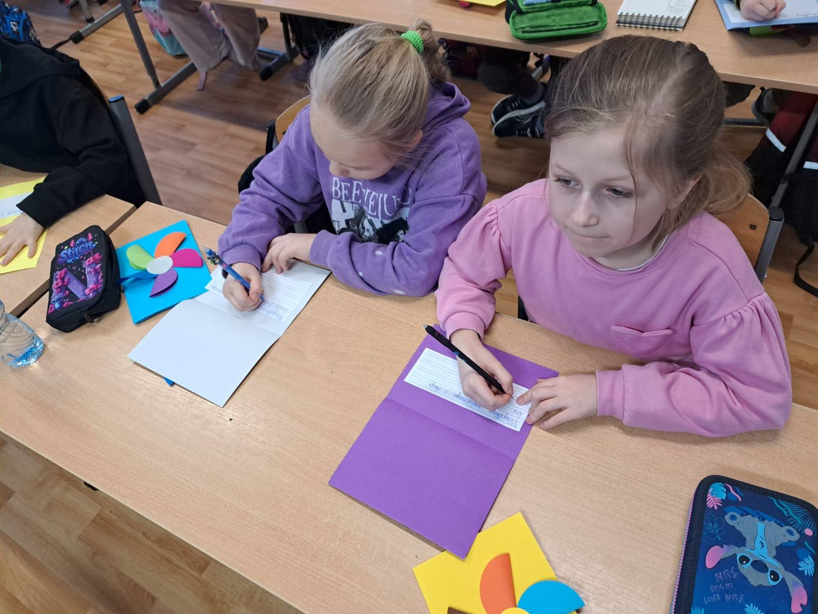 Do świętowania dołączyły także dzieci z klasy 2B, które wykonały cudowne prezenty – laurki z kwiatami, stworzone z wielkim sercem i dziecięcą radością 🌸