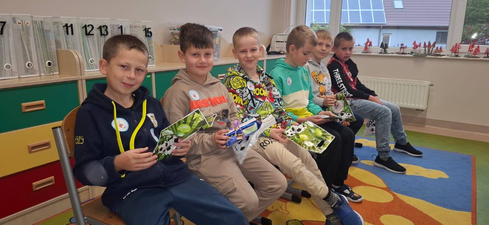 💫 Klasa 2b – tutaj dziewczynki również nie zawiodły 💝. Chłopcy zostali obdarowani samochodzikami 🚗 i kolorowymi długopisami ✍️, które wywołały szerokie uśmiechy i od razu znalazły się w użyciu. 😍