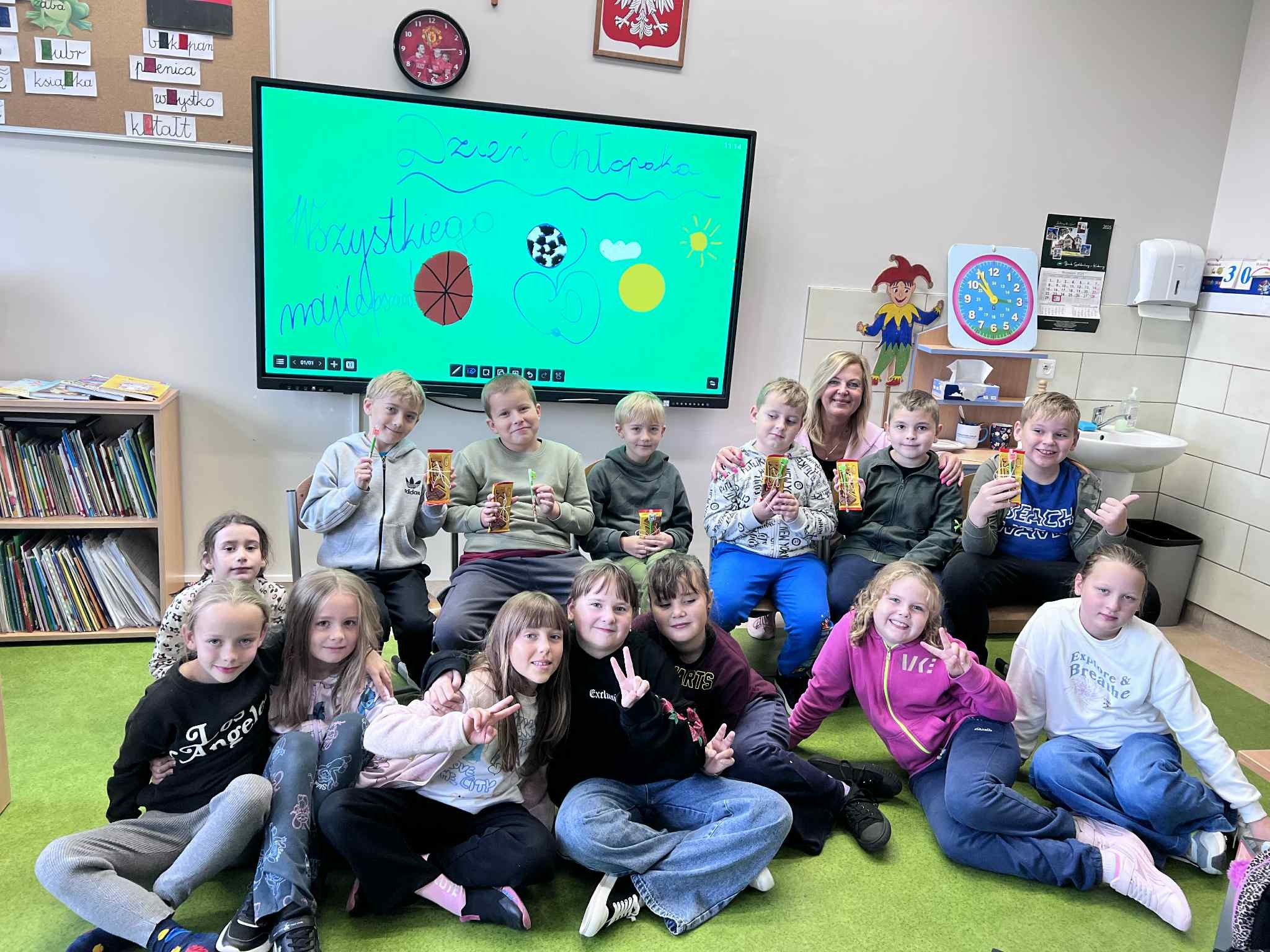 💫 Klasa 3 – świętowała na wesoło, z pięknymi i trafionymi prezentami 🎁. Dziewczynki spisały się na medal, a chłopcy nie pozostali dłużni – przygotowali dla koleżanek lizaki 🍭, za co zadbał gospodarz klasy. 👏