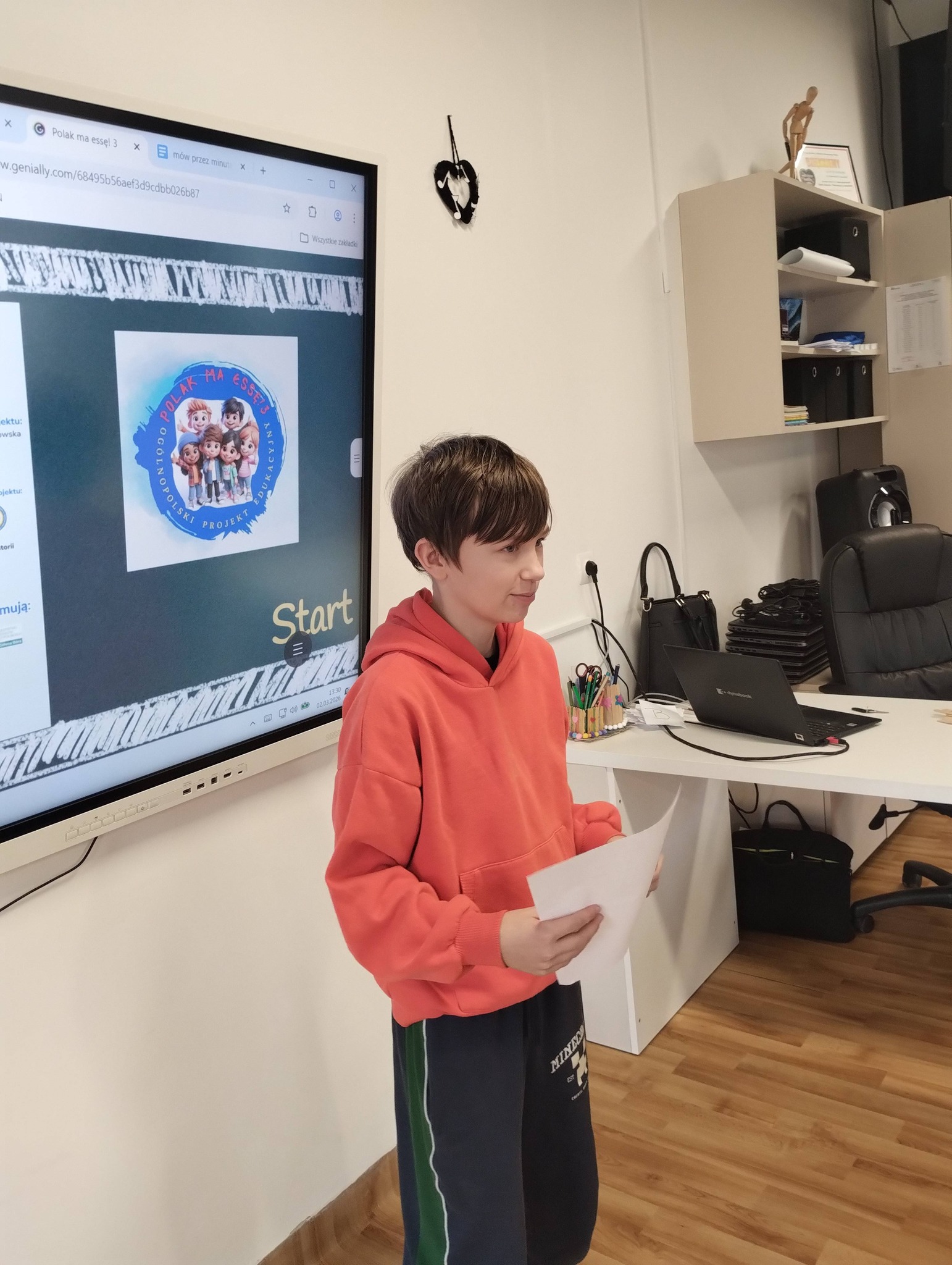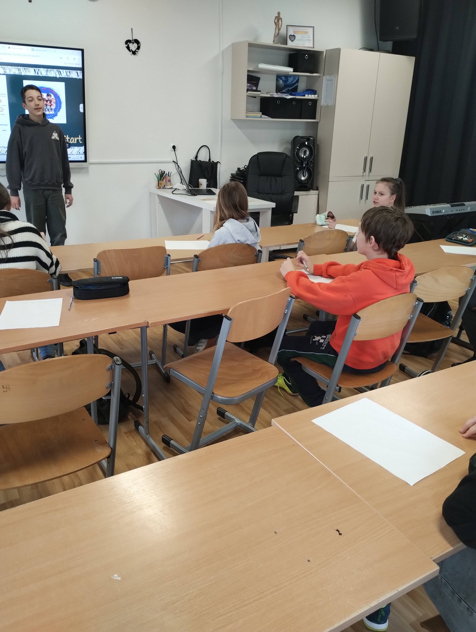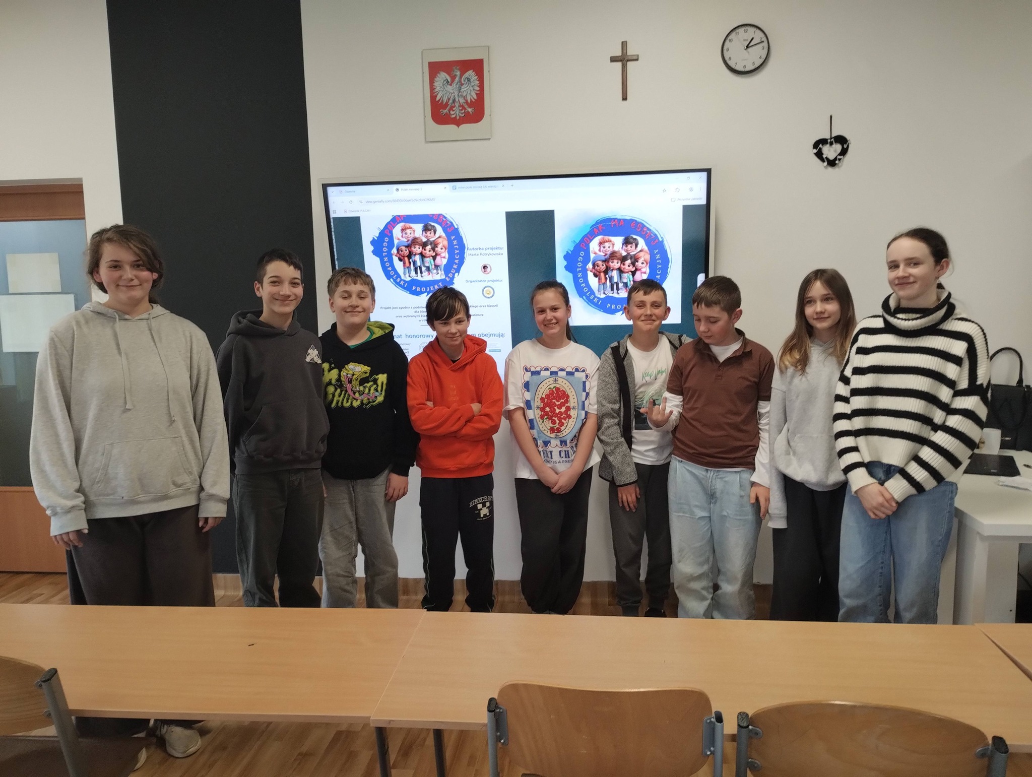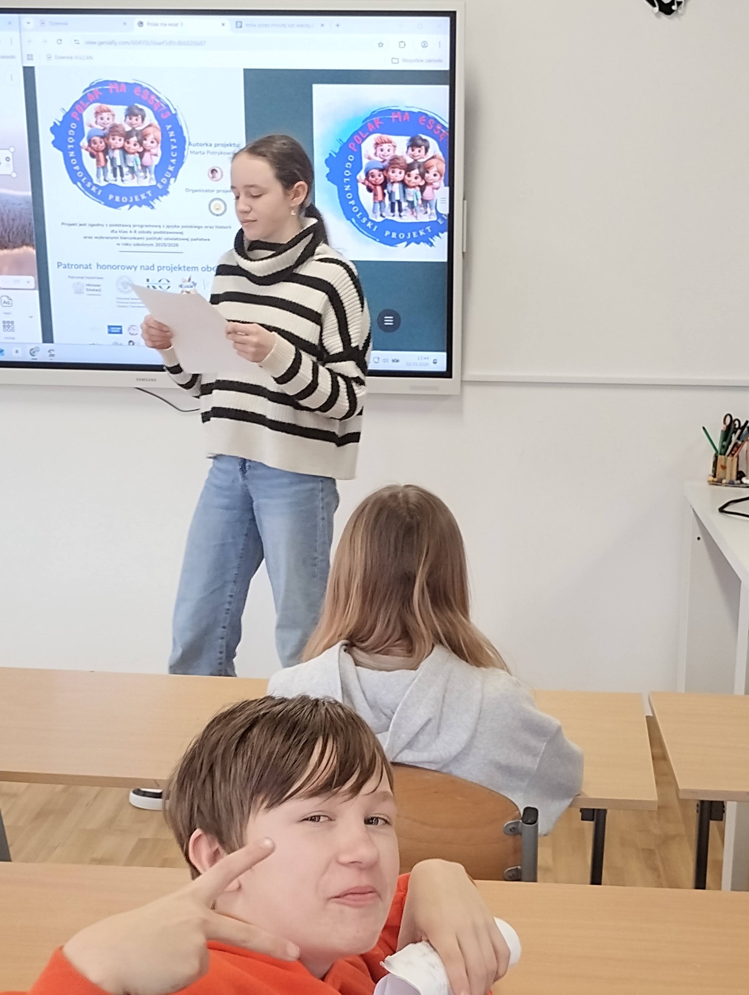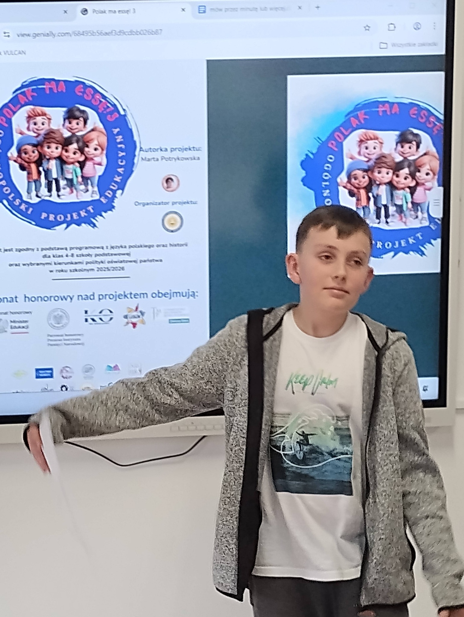 Uczniowie klasy 5 wzięli udział w projekcie „Polak ma Essę 3”, realizując zadanie nr 6 – „Mów przez minutę lub więcej” podczas lekcji historii.
