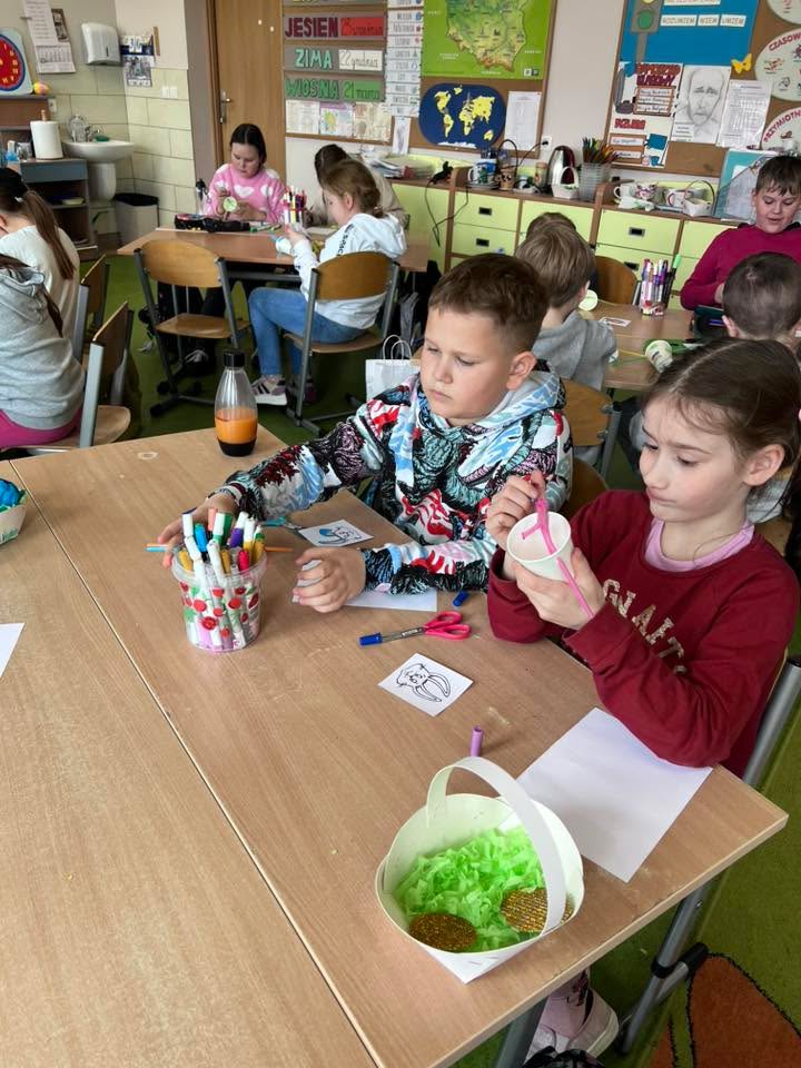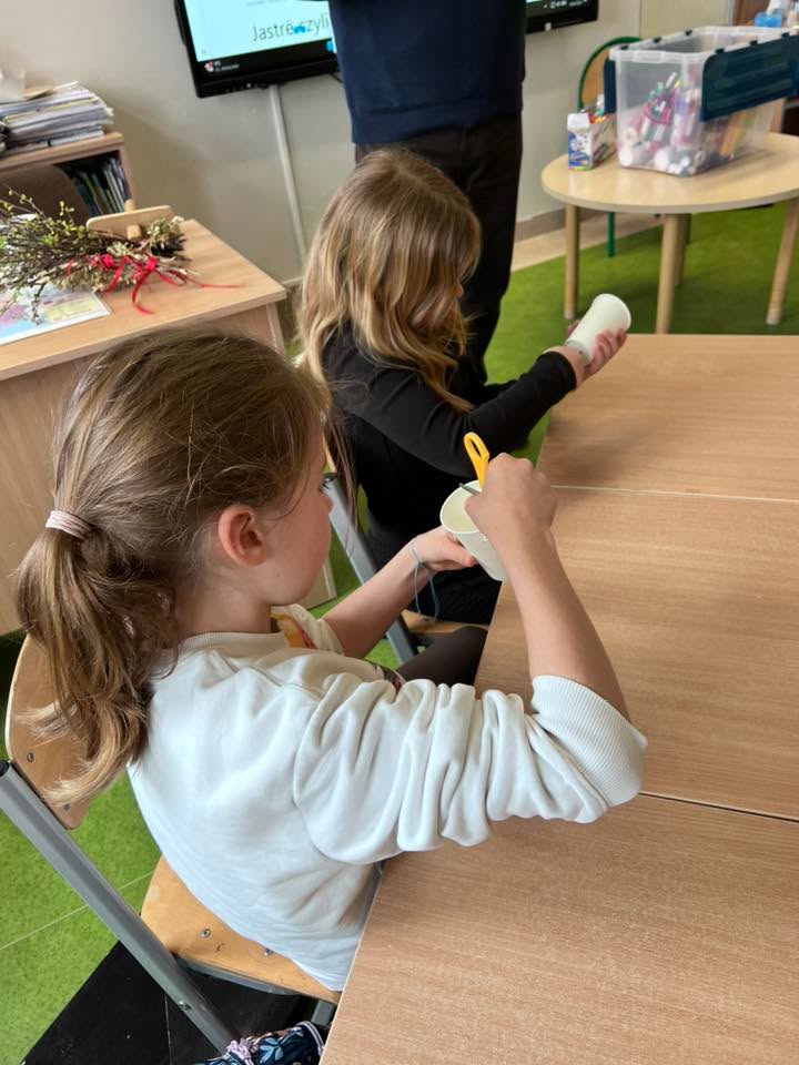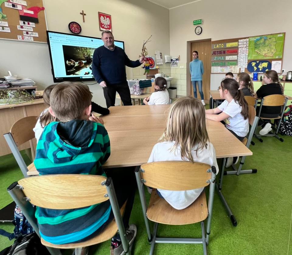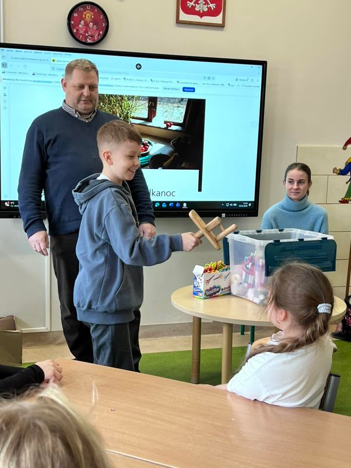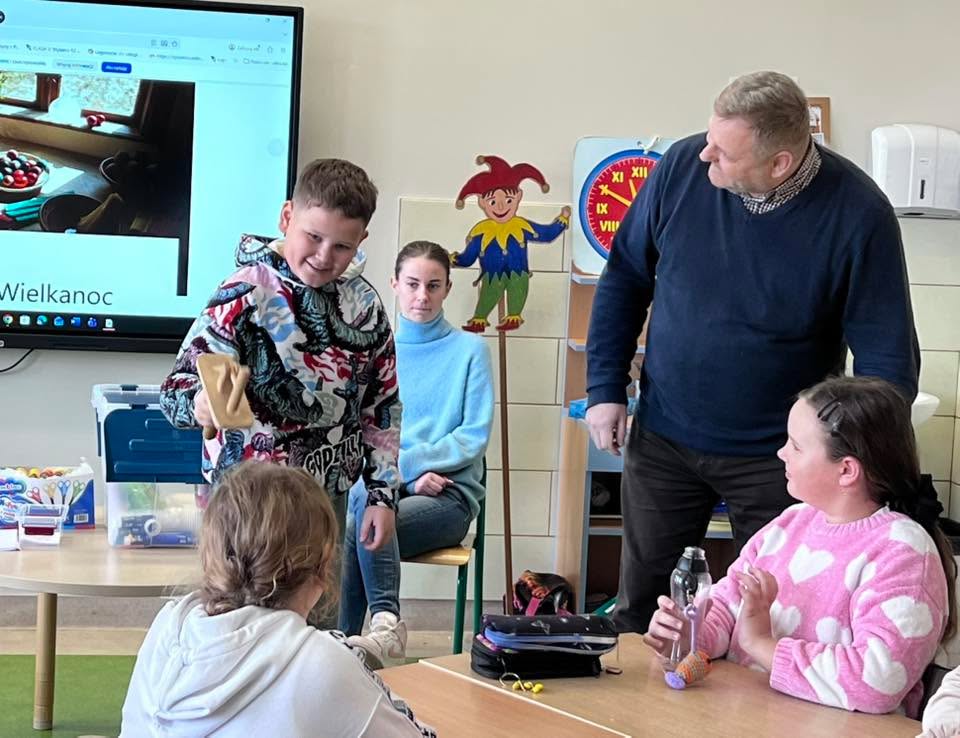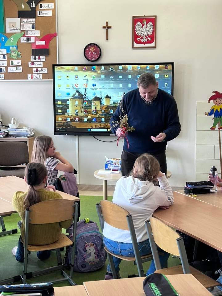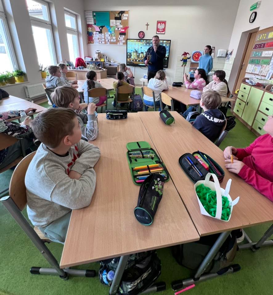 Podczas spotkania uczniowie klasy 2 B i klasy 3 mieli okazję poznać tradycje i zwyczaje Świąt Wielkanocnych na Kaszubach. Pan Roman w ciekawy sposób opowiedział o dawnych obrzędach, prezentując wybrane zwyczaje, natomiast pani Klaudia poprowadziła warsztaty plastyczno-techniczne na temat ,, Mój wymarzony świąteczny zajączek”. 🐰🐇