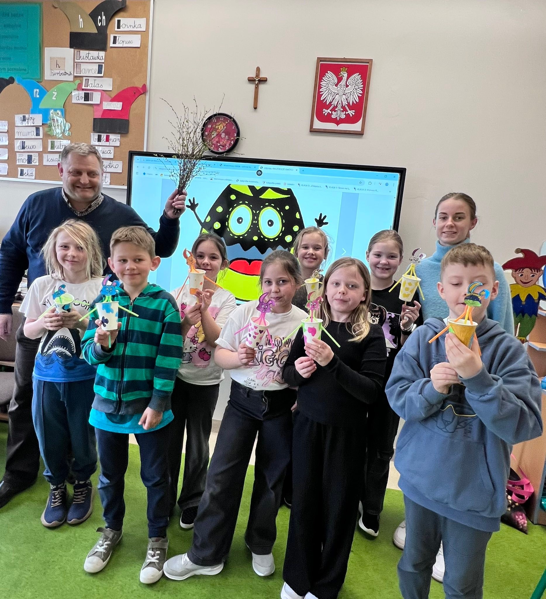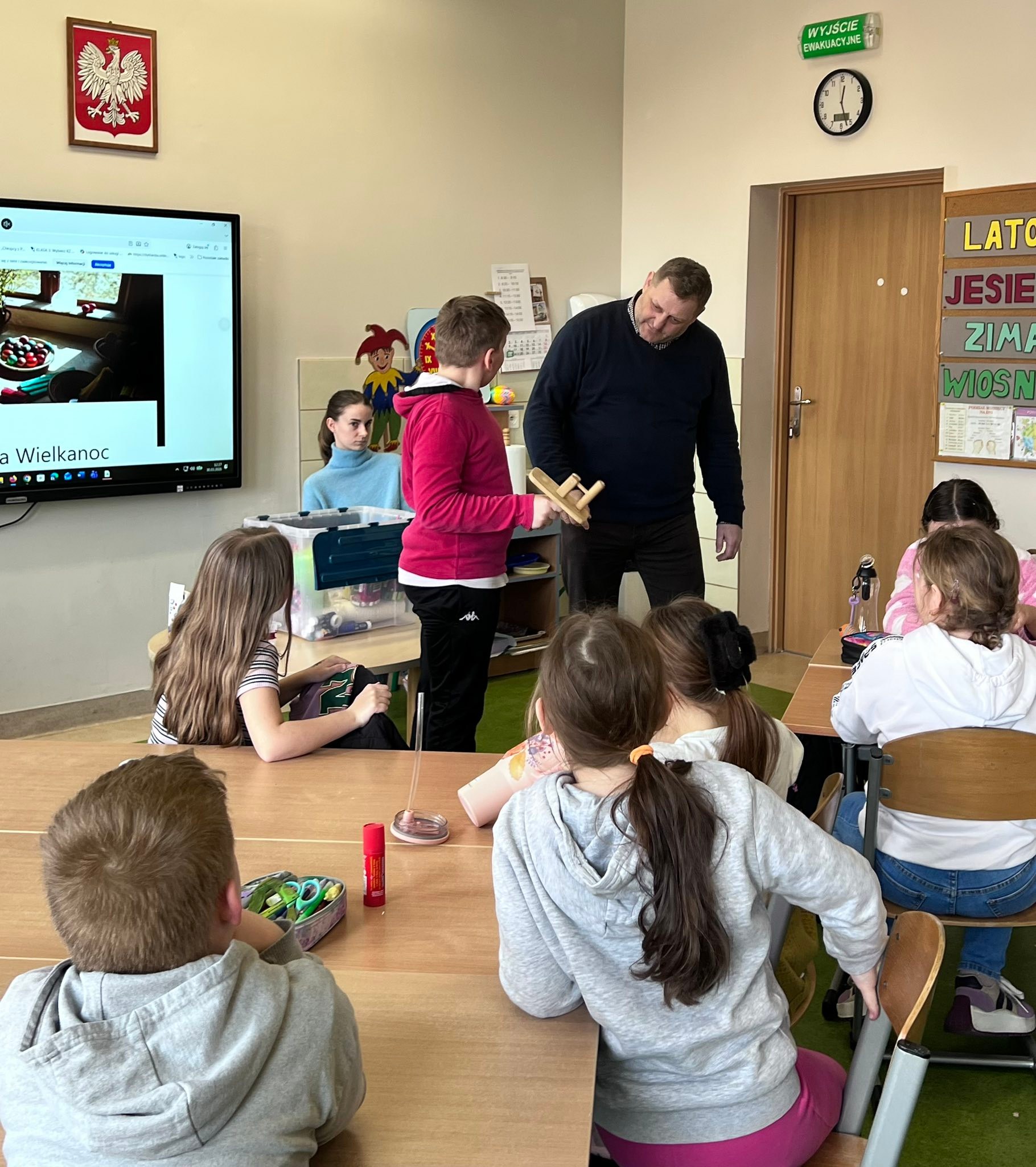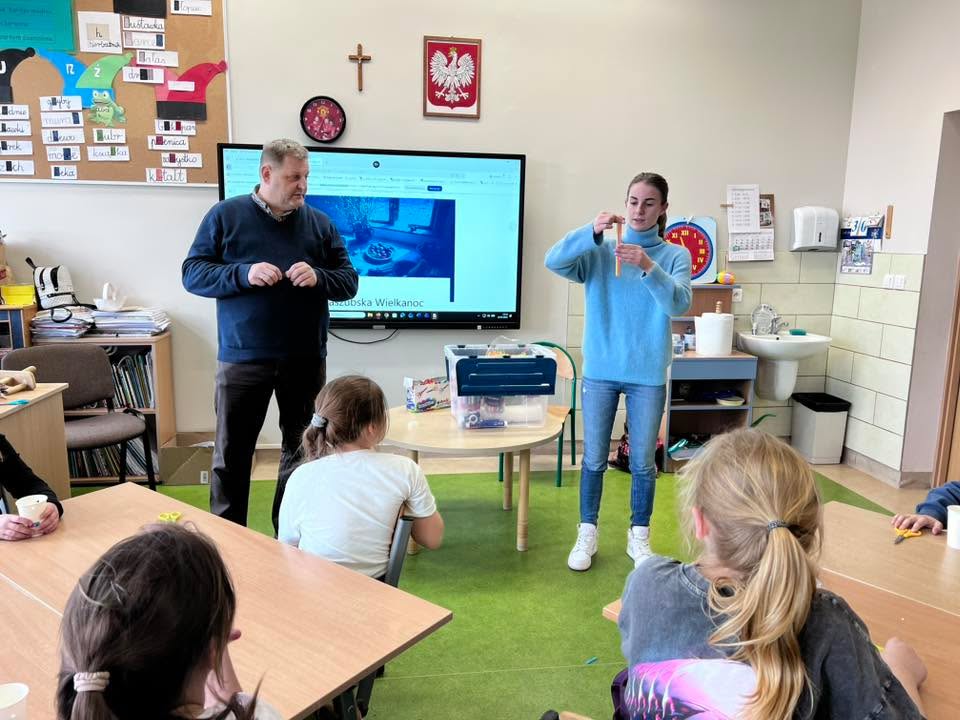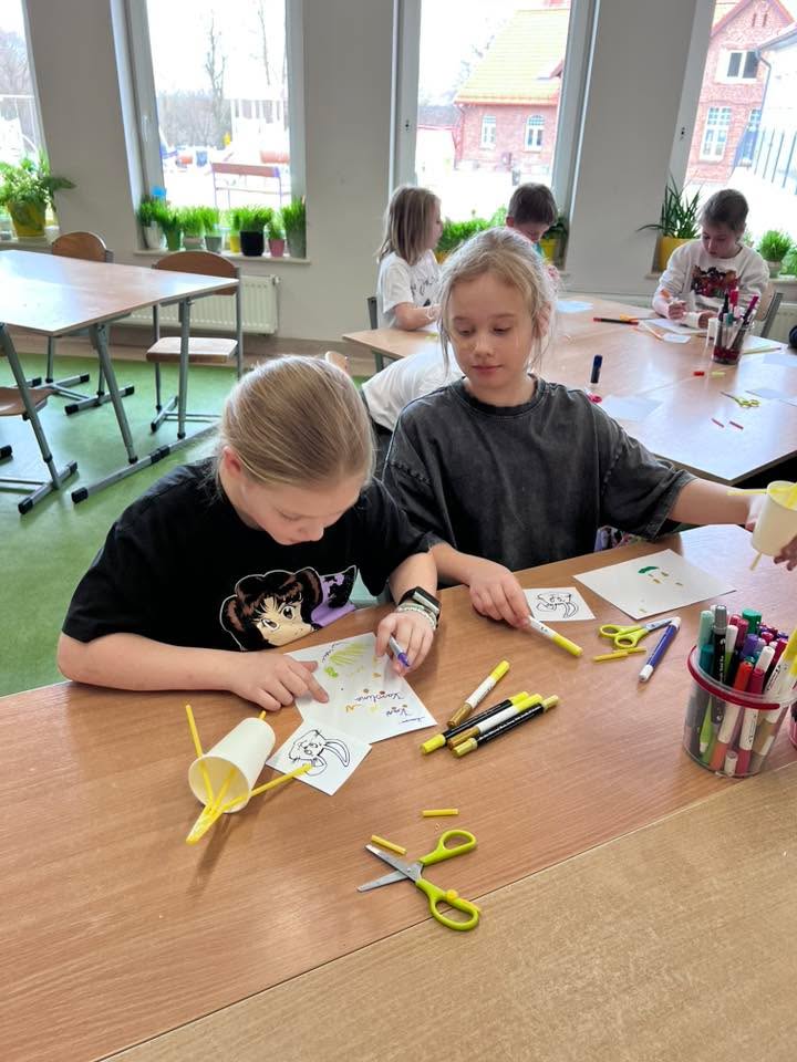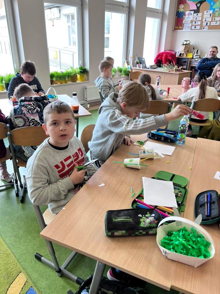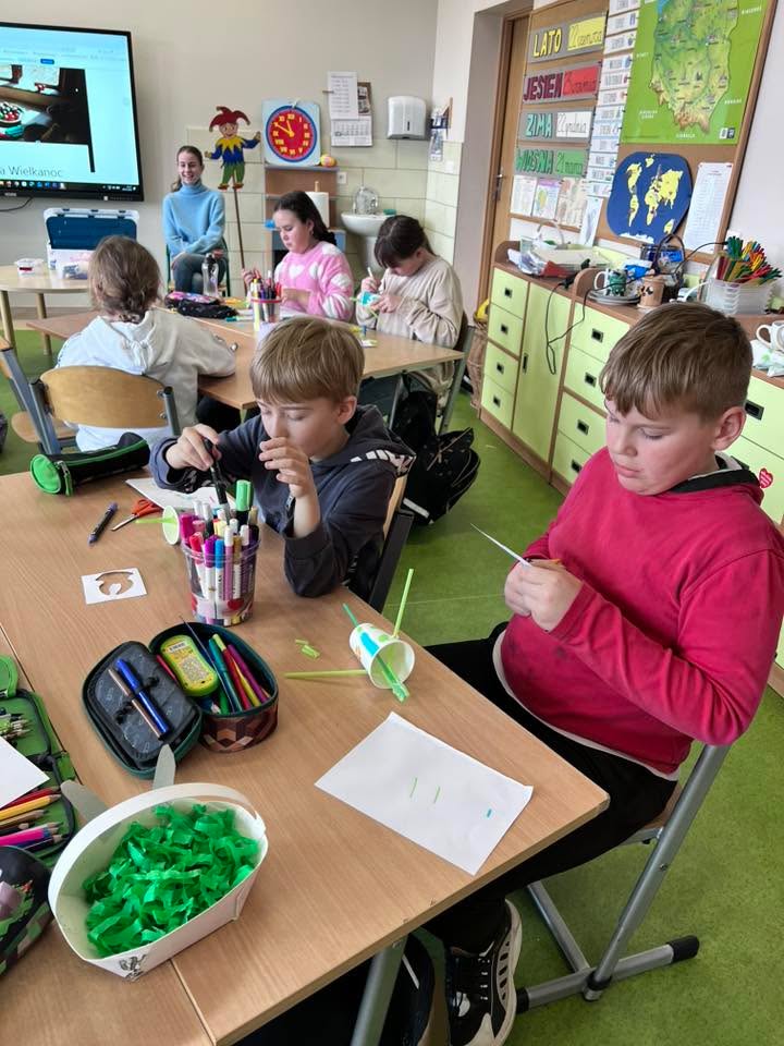 Podczas spotkania uczniowie klasy 2 B i klasy 3 mieli okazję poznać tradycje i zwyczaje Świąt Wielkanocnych na Kaszubach. Pan Roman w ciekawy sposób opowiedział o dawnych obrzędach, prezentując wybrane zwyczaje, natomiast pani Klaudia poprowadziła warsztaty plastyczno-techniczne na temat ,, Mój wymarzony świąteczny zajączek”. 🐰🐇