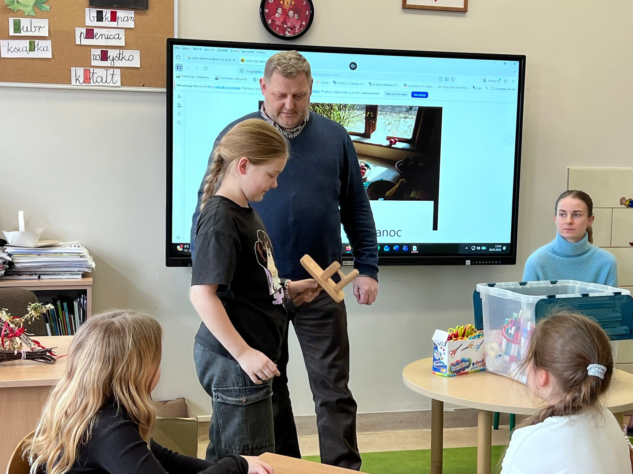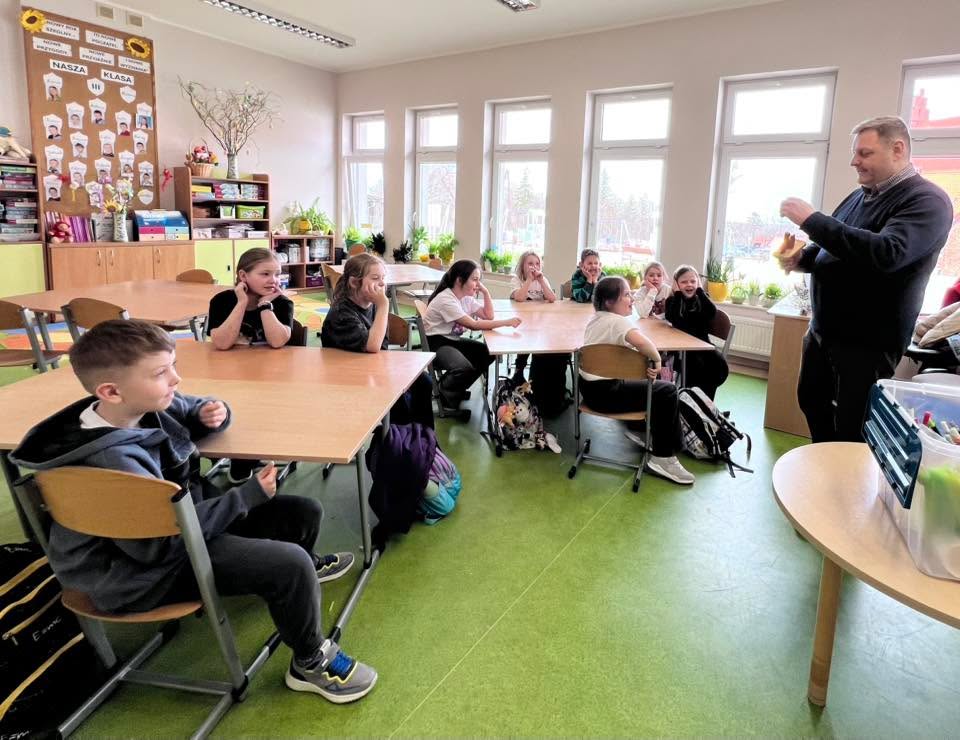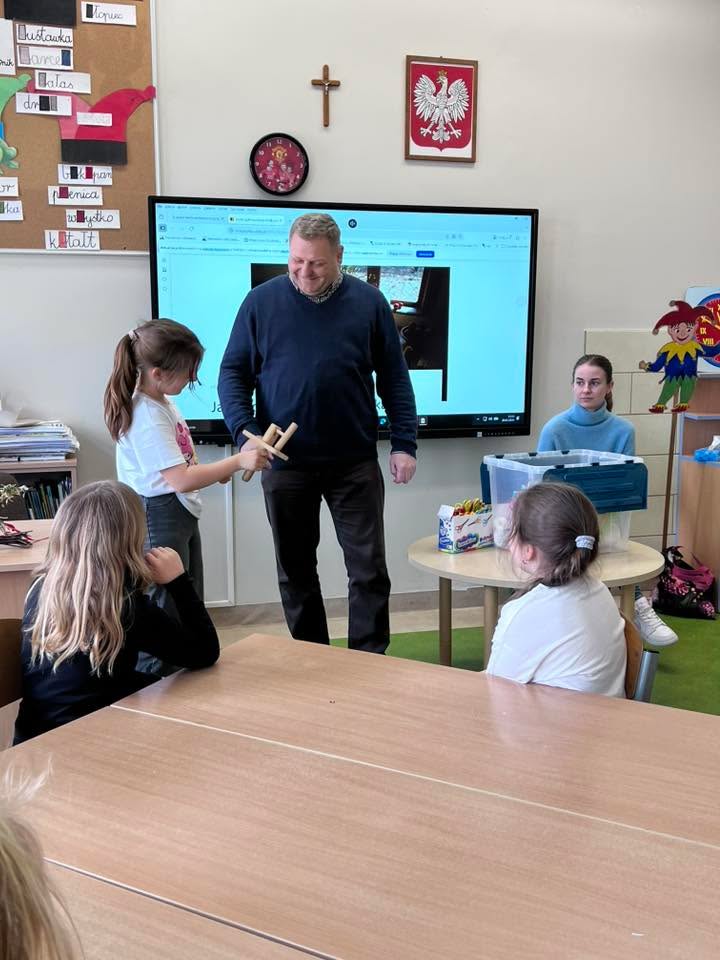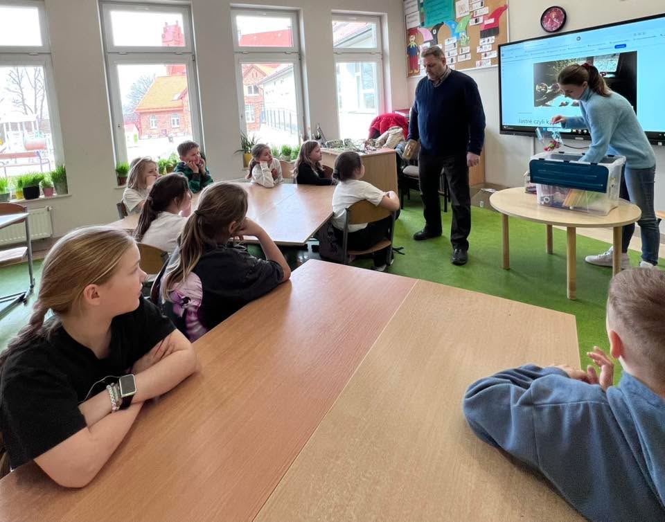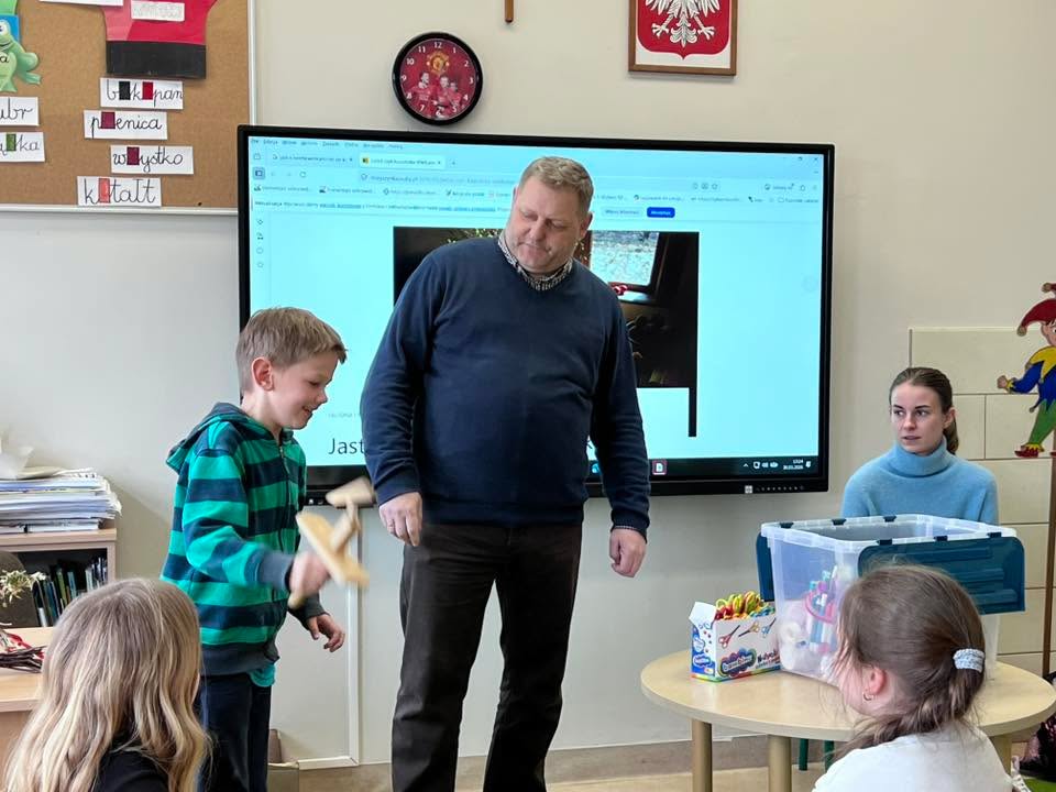 Dnia 30 marca 2026 r., w ramach zajęć z języka kaszubskiego, na zaproszenie pani Marii Borskiej, naszą szkołę odwiedzili wyjątkowi goście – pan Roman Drzeżdżon oraz pani Kamila Lademann z Muzeum Ziemi Puckiej w Pucku.