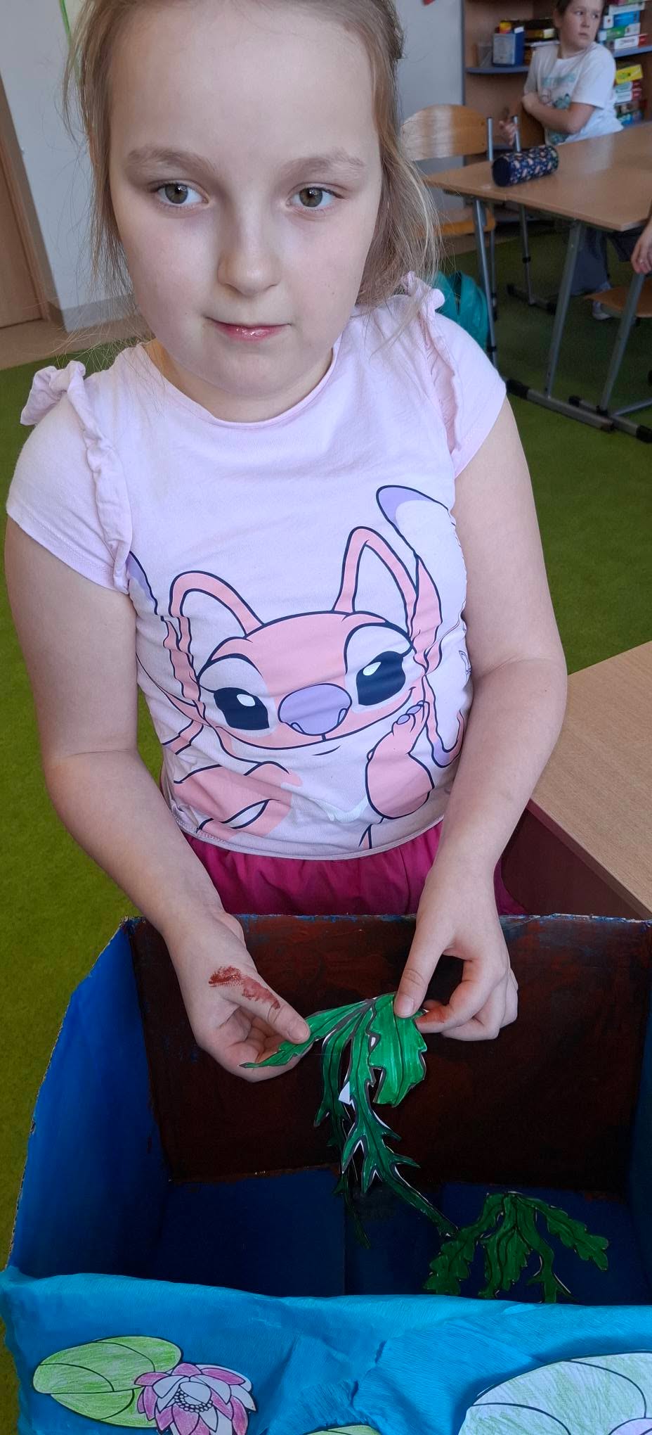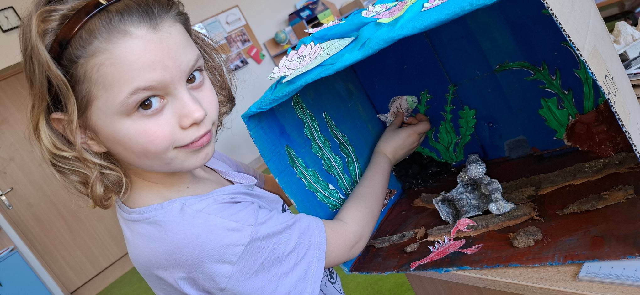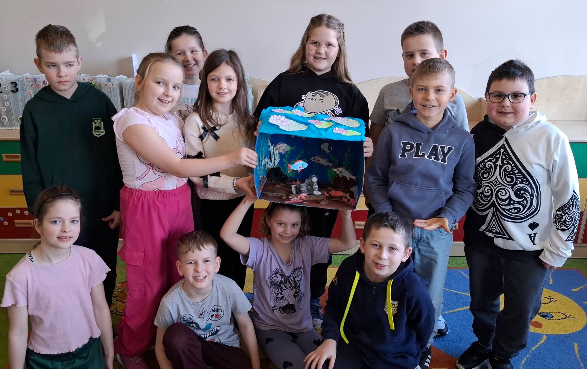 Uczniowie klasy 2A, wzbogacając swoją wiedzę przyrodniczą z zakresu życia wodnego, zrealizowali wspólny projekt pt. „Podwodny świat”.