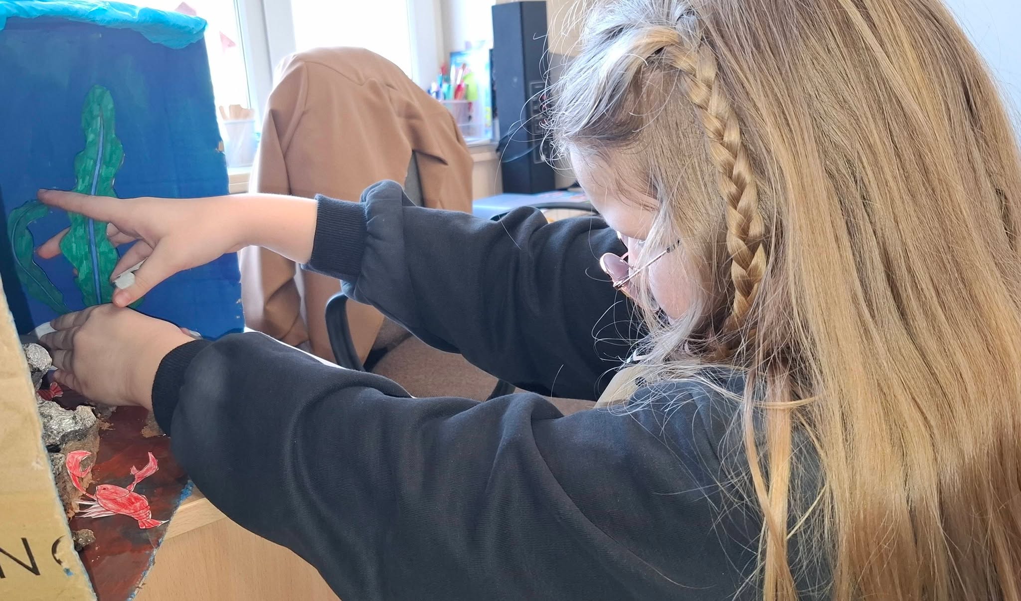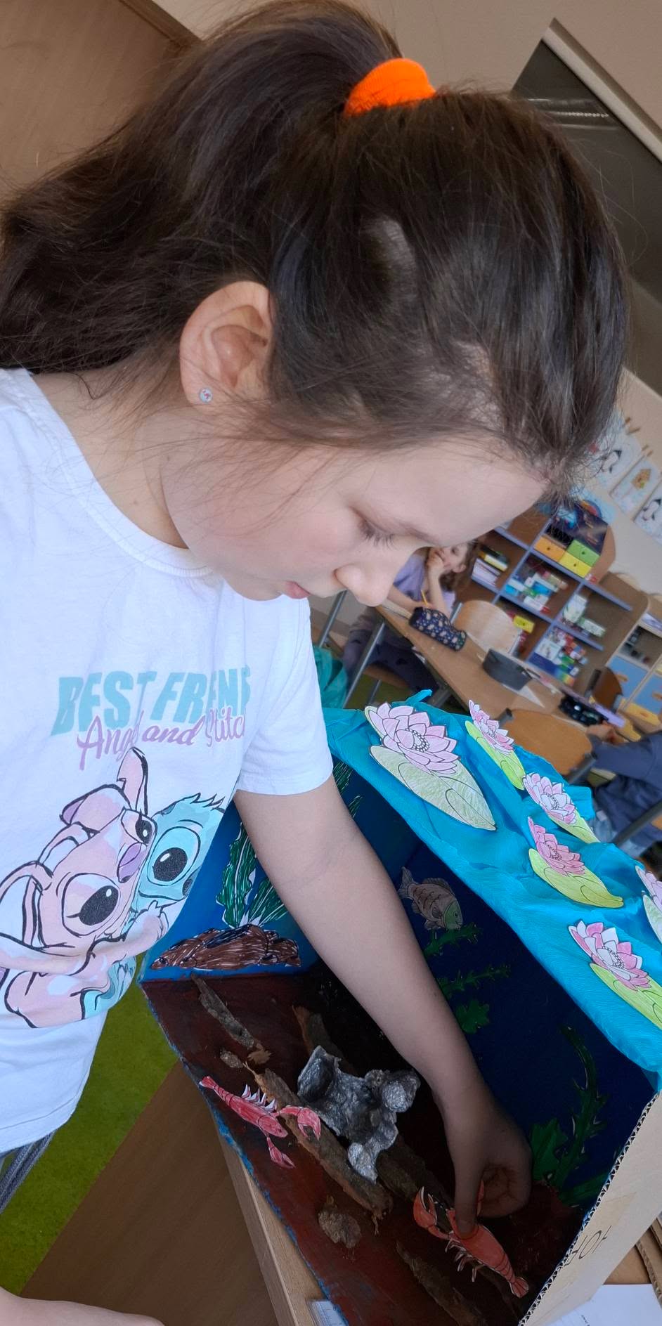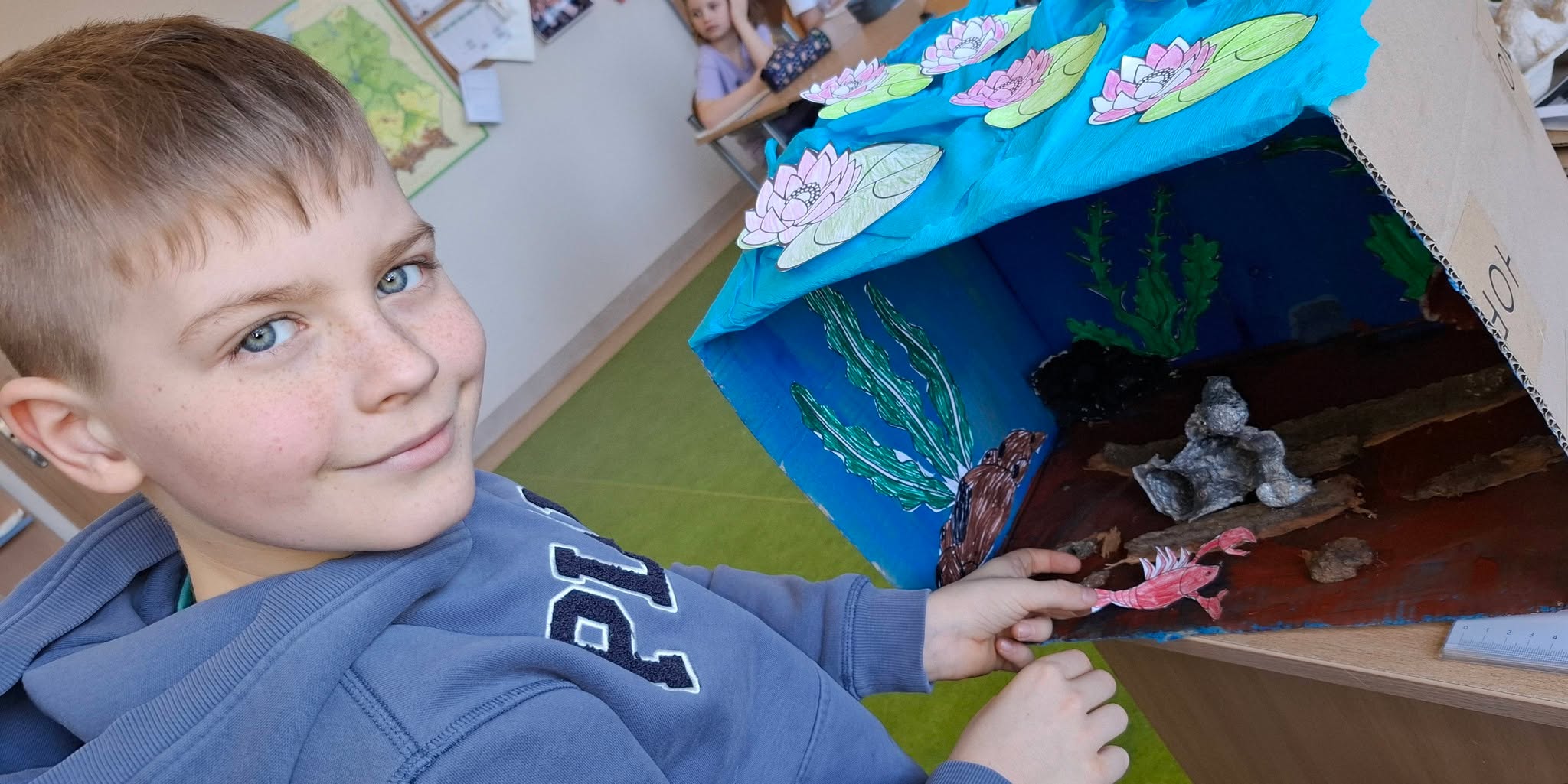 Uczniowie klasy 2A, wzbogacając swoją wiedzę przyrodniczą z zakresu życia wodnego, zrealizowali wspólny projekt pt. „Podwodny świat”.