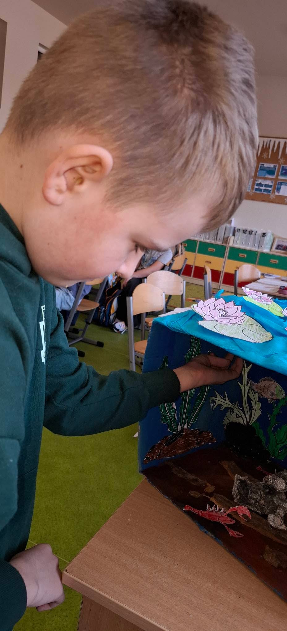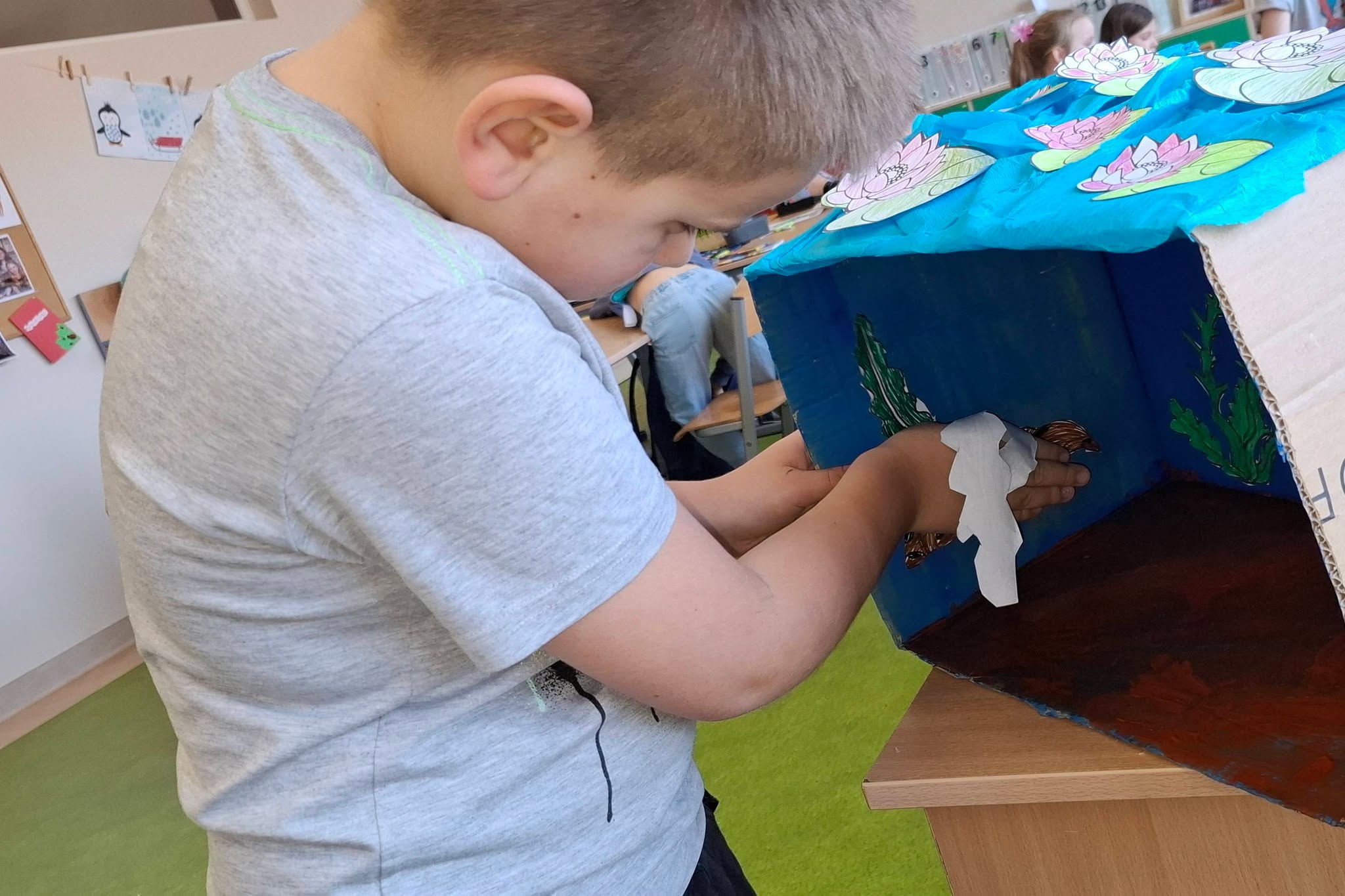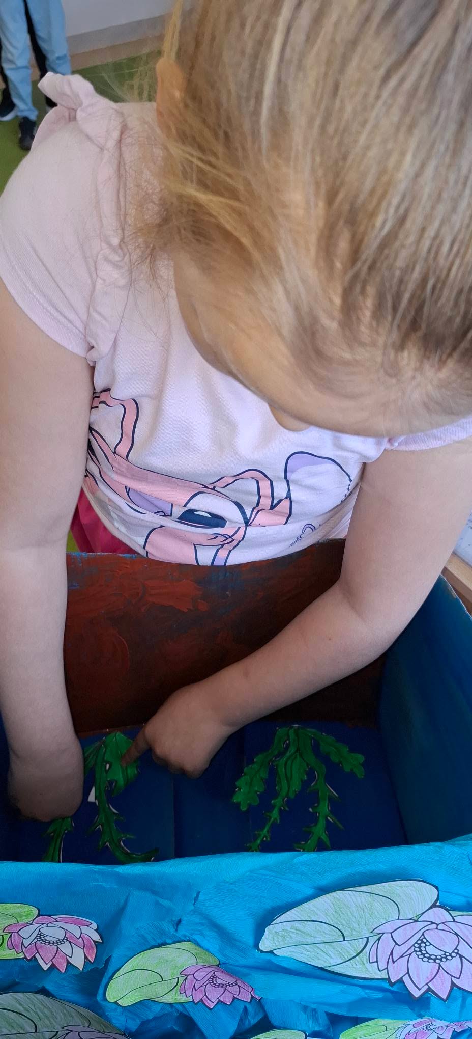 Podczas zajęć dzieci dowiedziały się, jakie zwierzęta zamieszkują wody słodkie, poznały budowę ryb oraz ich cechy charakterystyczne, które wyróżniają je wśród innych zwierząt.