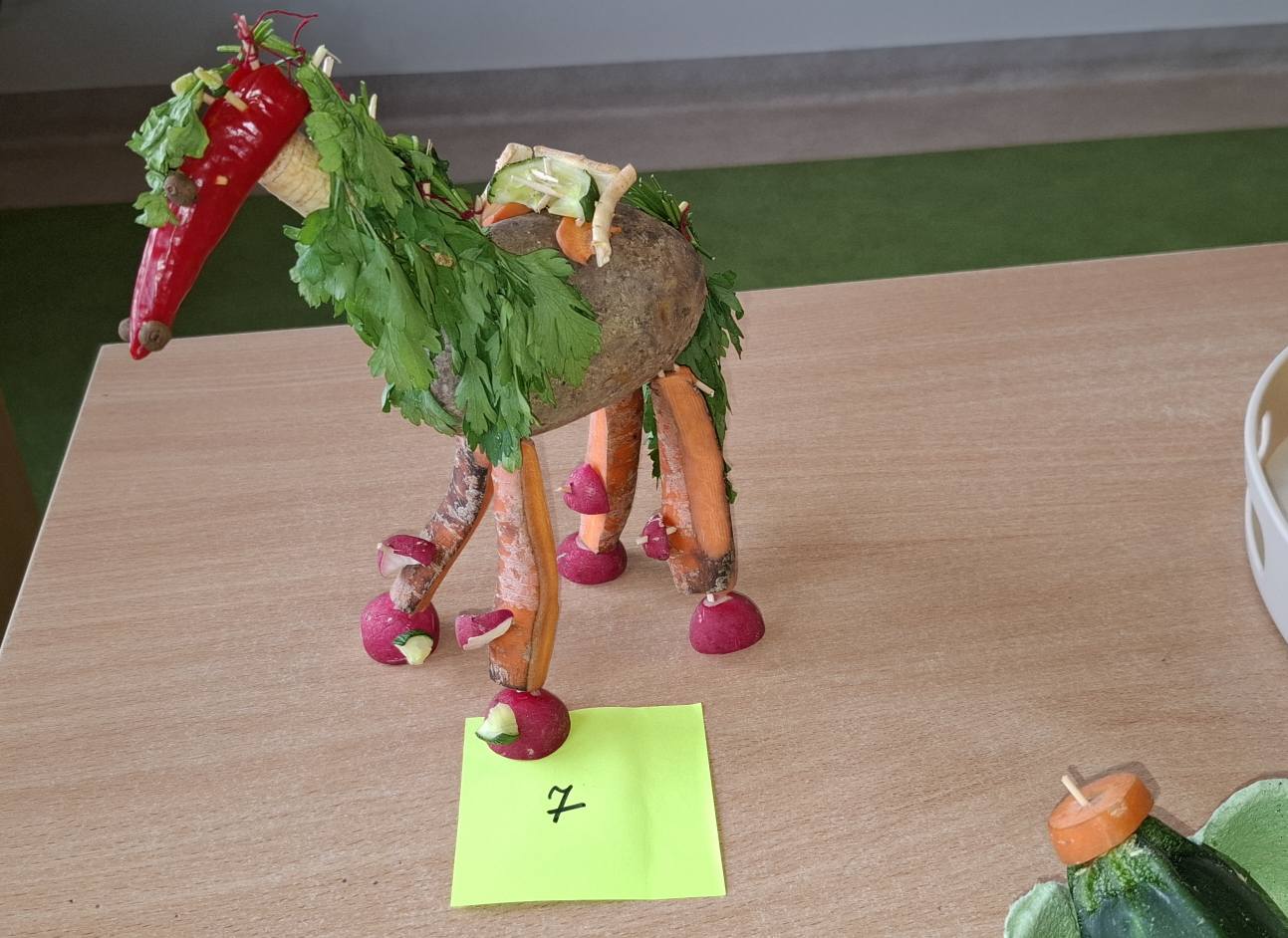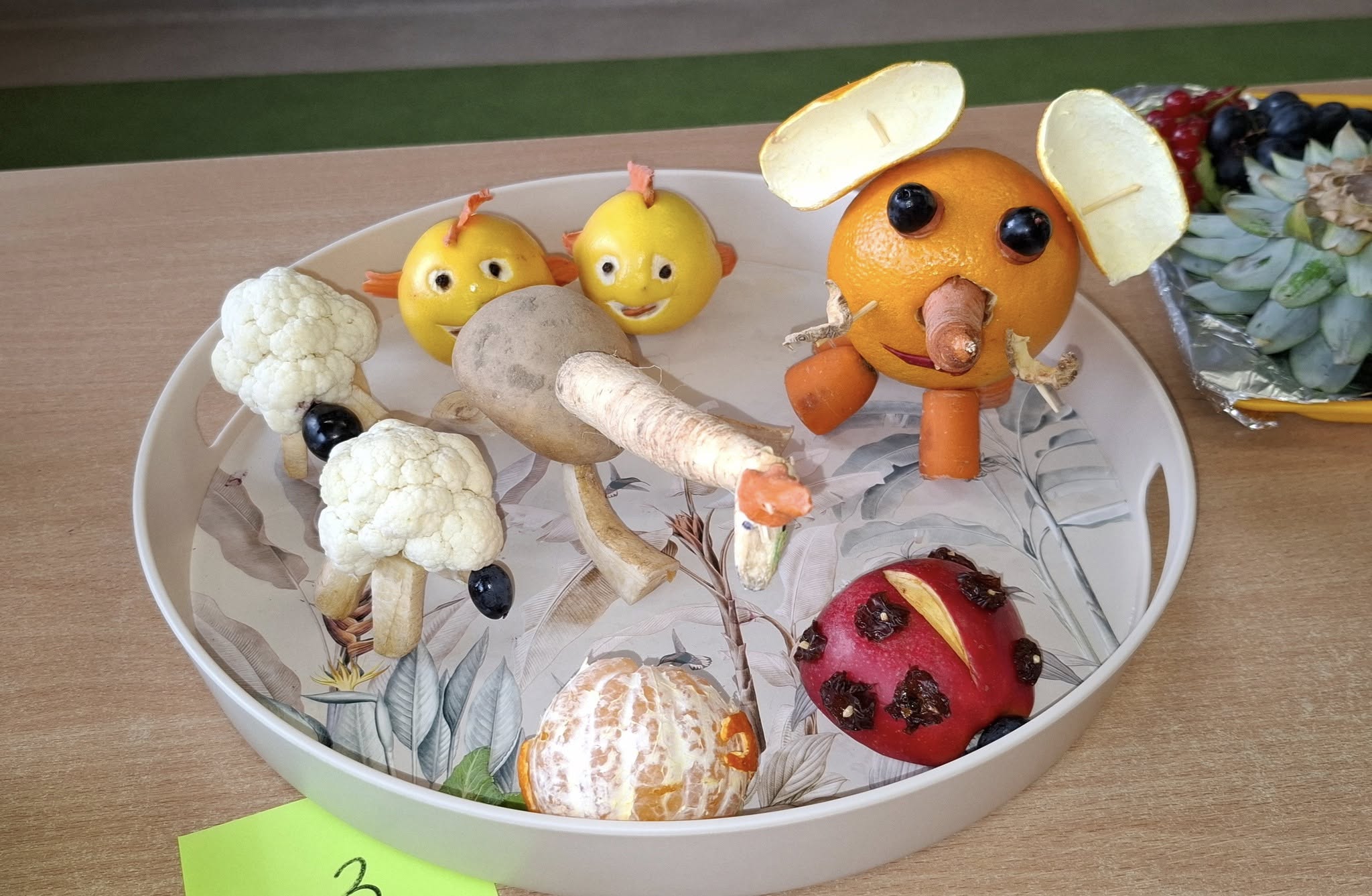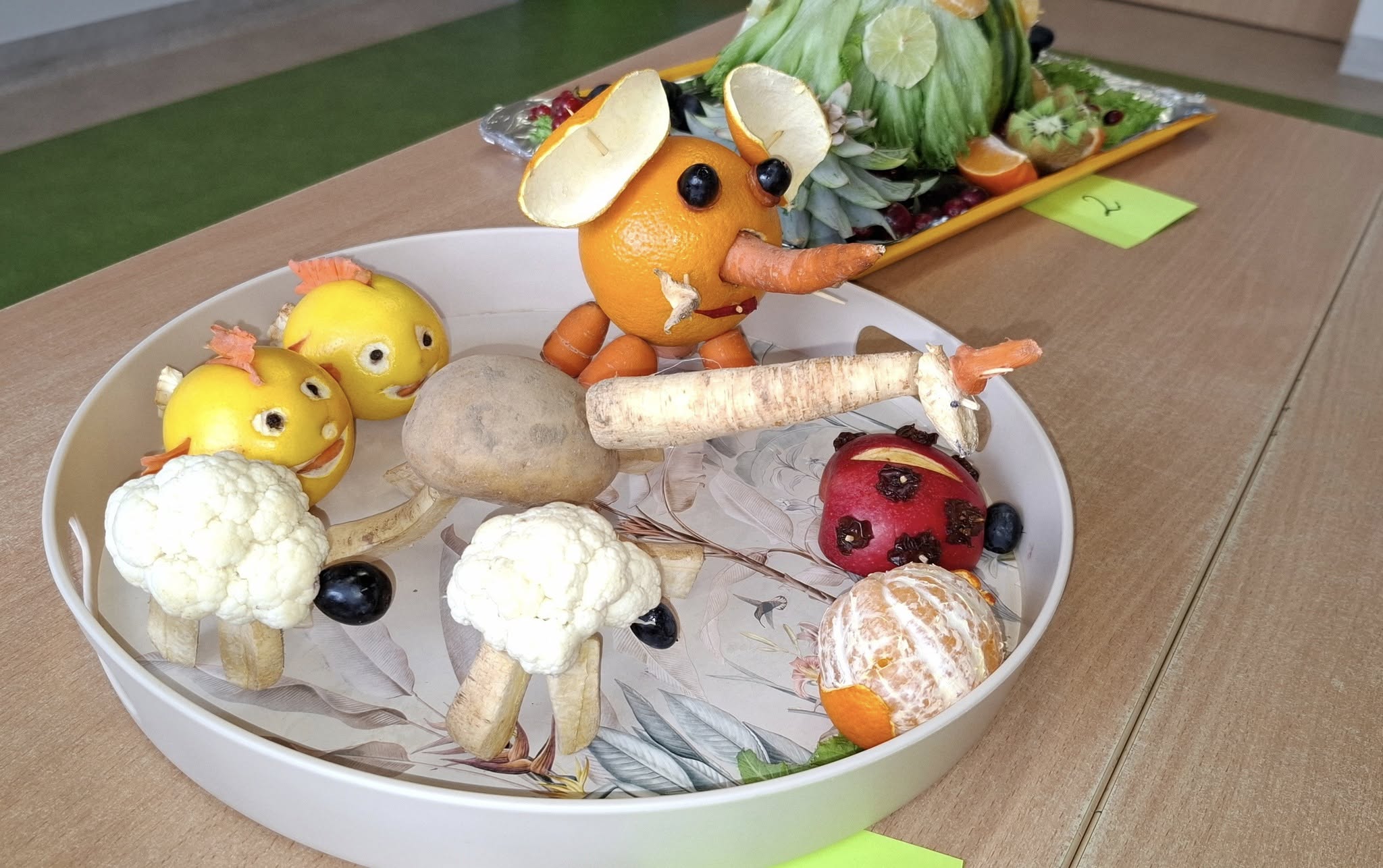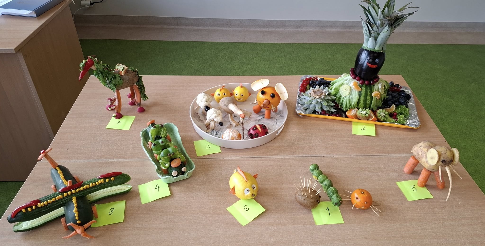 Na stołach pojawiły się wykonane z warzyw i owoców: zabawne ludziki, kolorowe zwierzaki, intrygujące owady oraz kosmiczne pojazdy.