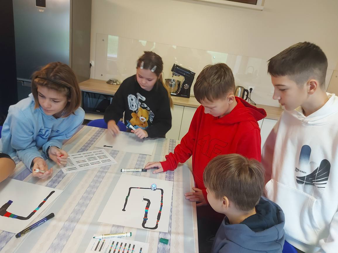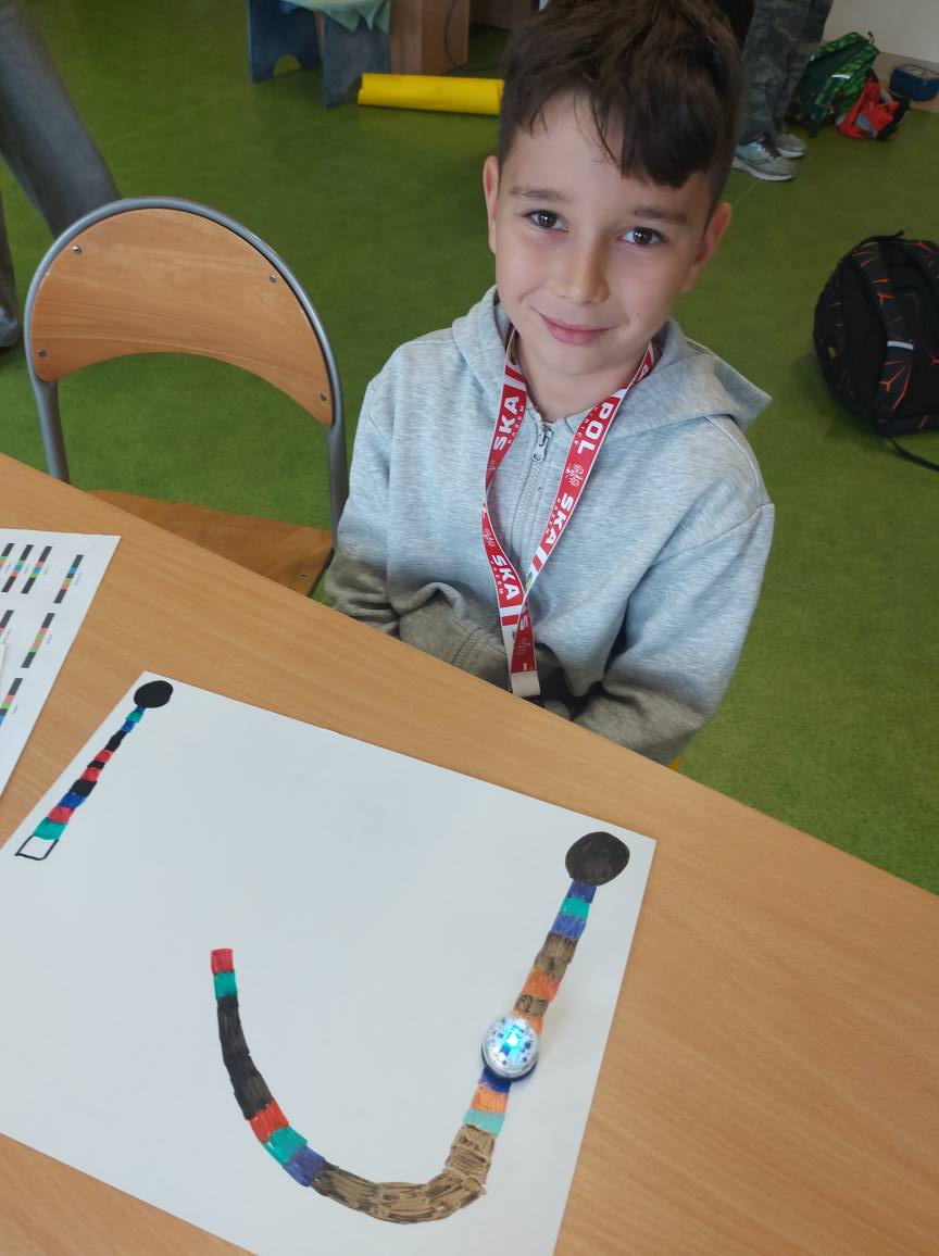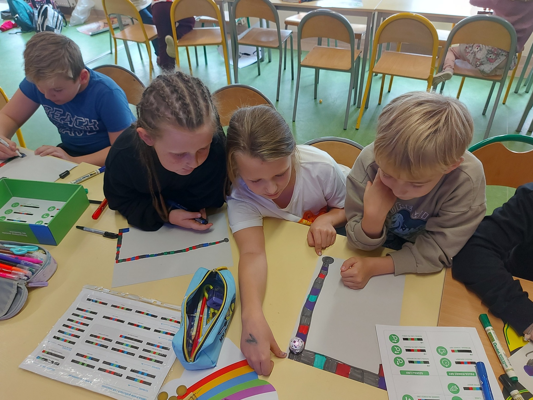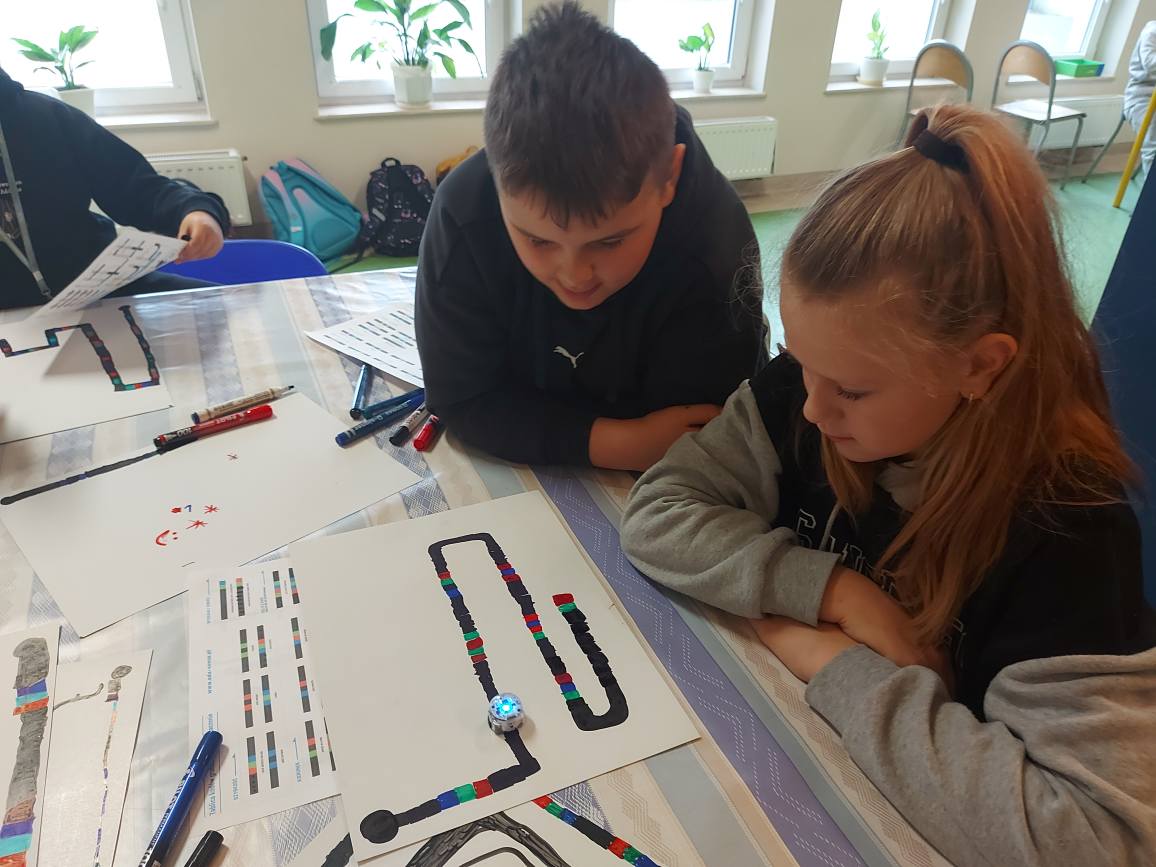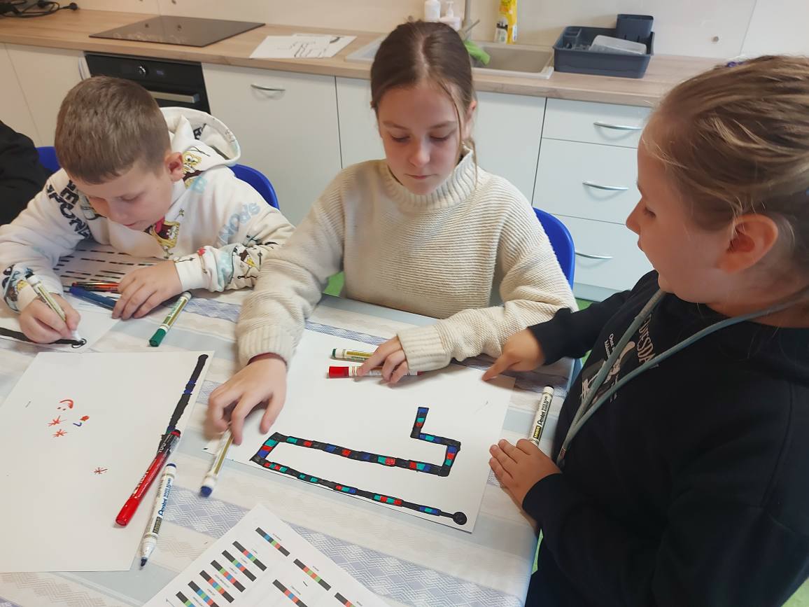 Na naszych stolikach pojawiły się małe, ale superinteligentne roboty Ozoboty 🤖💡, które dzięki kolorowym kodom ruszały w niezwykłe podróże po wcześniej zaplanowanych trasach. Uczniowie projektowali ścieżki pełne zakrętów, pułapek, zadań i niespodzianek 🎨🛤️ — a każdy poprawnie dobrany kolor oznaczał nowe polecenie dla robota!