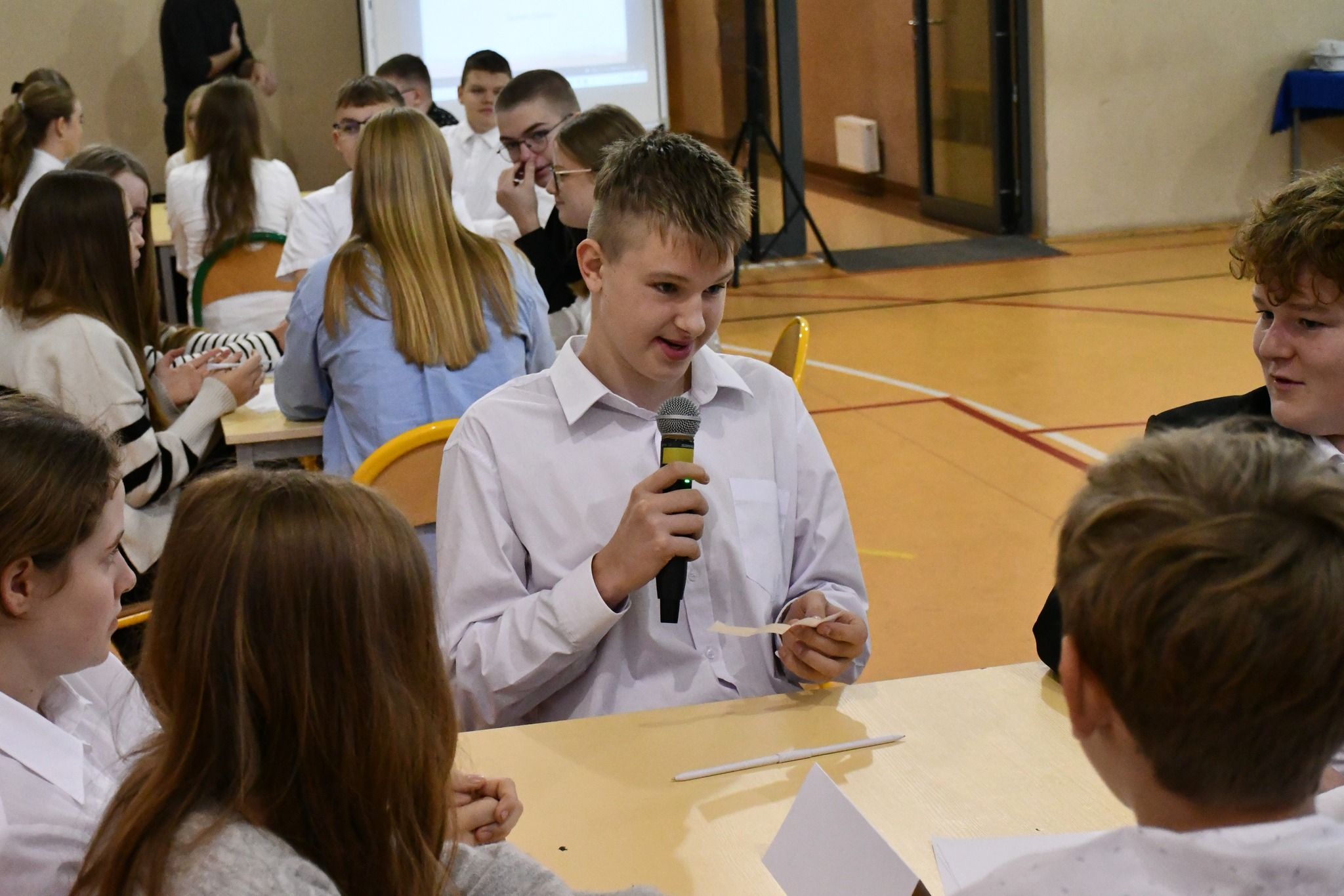 Ich prezentacje, odpowiedzi i sceniczne występy udowodniły, że młodzież ma nie tylko ogromną wiedzę, ale również 𝐨𝐝𝐰𝐚𝐠𝐞̨, 𝐩𝐚𝐬𝐣𝐞̨ 𝐢 𝐜𝐡𝐞̨𝐜́ 𝐝𝐳𝐢𝐚ł𝐚𝐧𝐢𝐚 𝐝𝐥𝐚 𝐬𝐰𝐨𝐣𝐞𝐣 „𝐦𝐚ł𝐞𝐣 𝐨𝐣𝐜𝐳𝐲𝐳𝐧𝐲”. 💛🌍