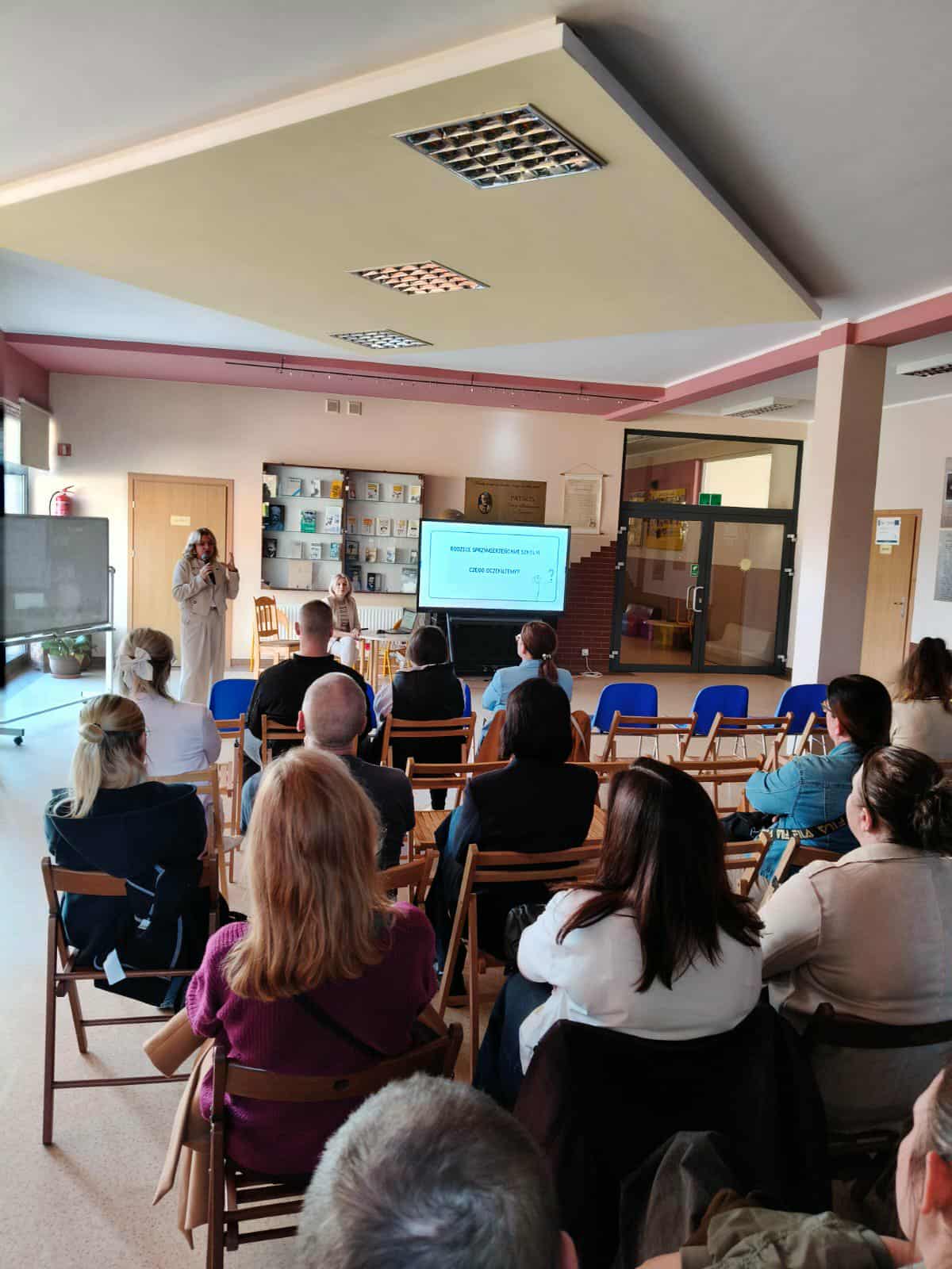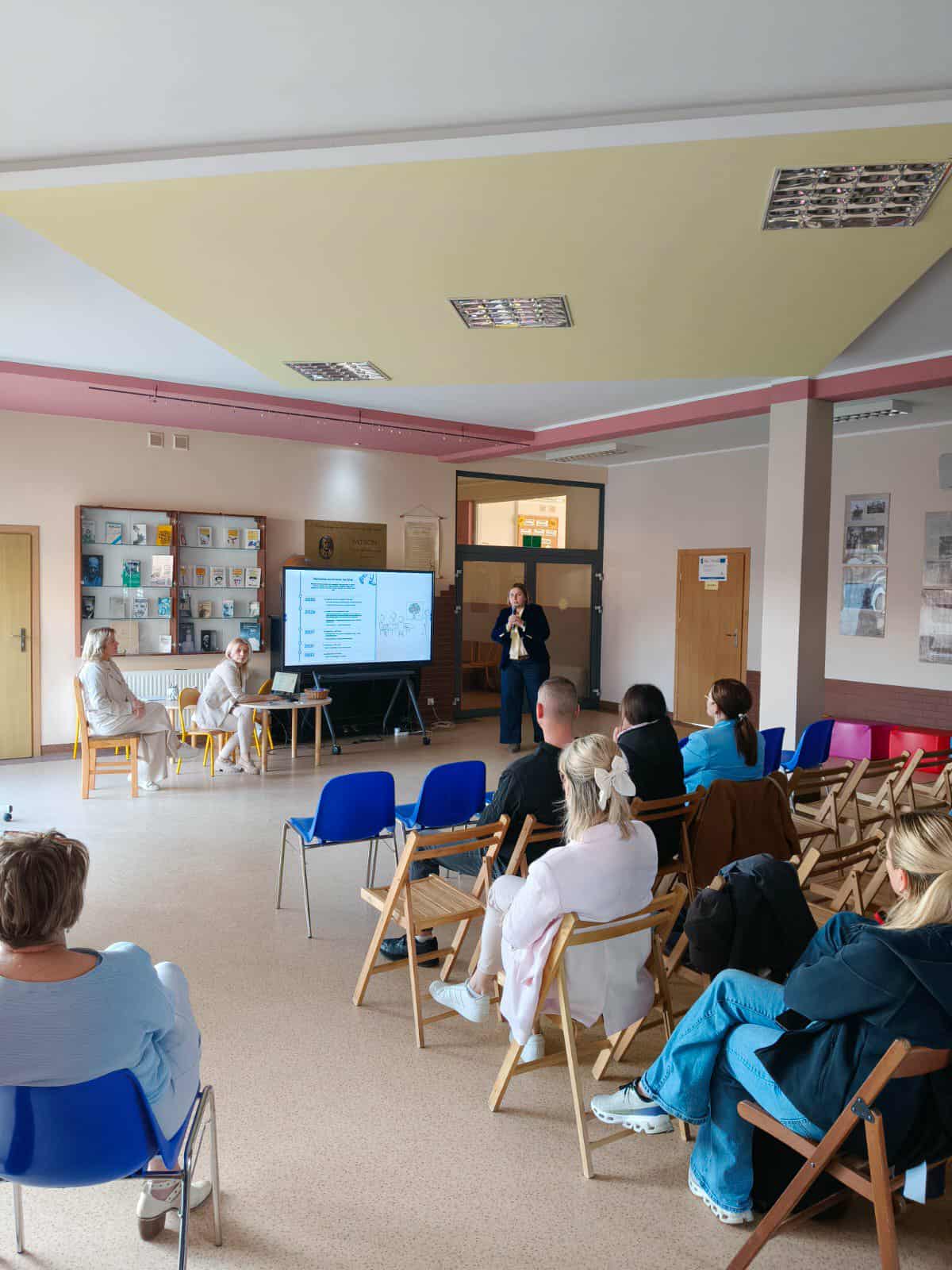 Po części prezentacyjnej uczestnicy – rodzice i nauczyciele – podjęli 𝐦𝐞𝐫𝐲𝐭𝐨𝐫𝐲𝐜𝐳𝐧𝐚̨ 𝐝𝐲𝐬𝐤𝐮𝐬𝐣𝐞̨, koncentrując się na praktycznym wymiarze wdrażania tego modelu w codziennej pracy szkoły. Rozmowa była okazją do wymiany doświadczeń, spojrzeń i oczekiwań wobec procesu oceniania.