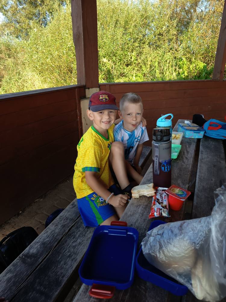Łapiąc promyki słońca🌞, Żabki spacerkiem dotarły nad Jezioro Żarnowieckie. Po zjedzeniu drugiego śniadanka humorki dopisywały😄, a siły się zregenerowały 💪🏻.