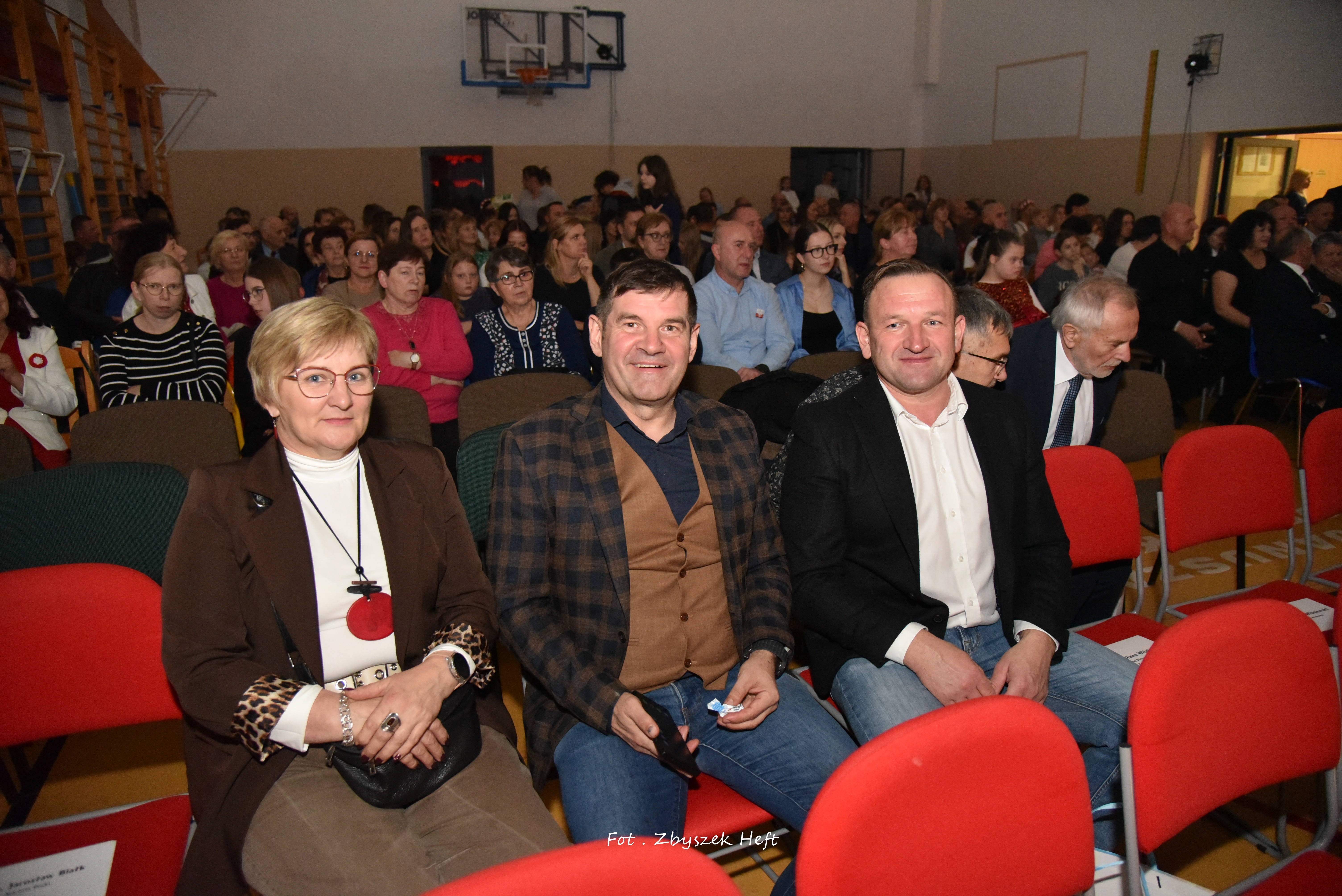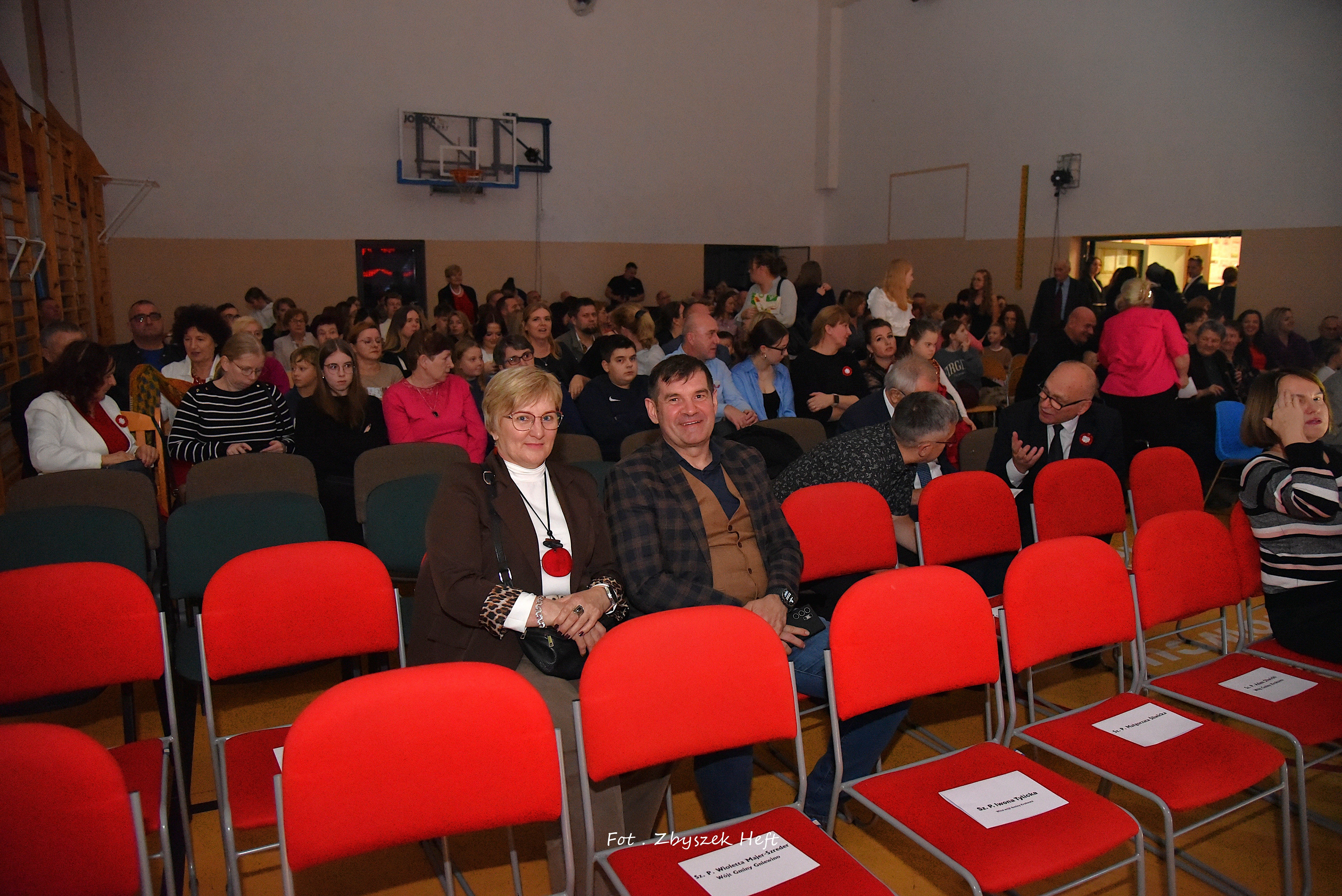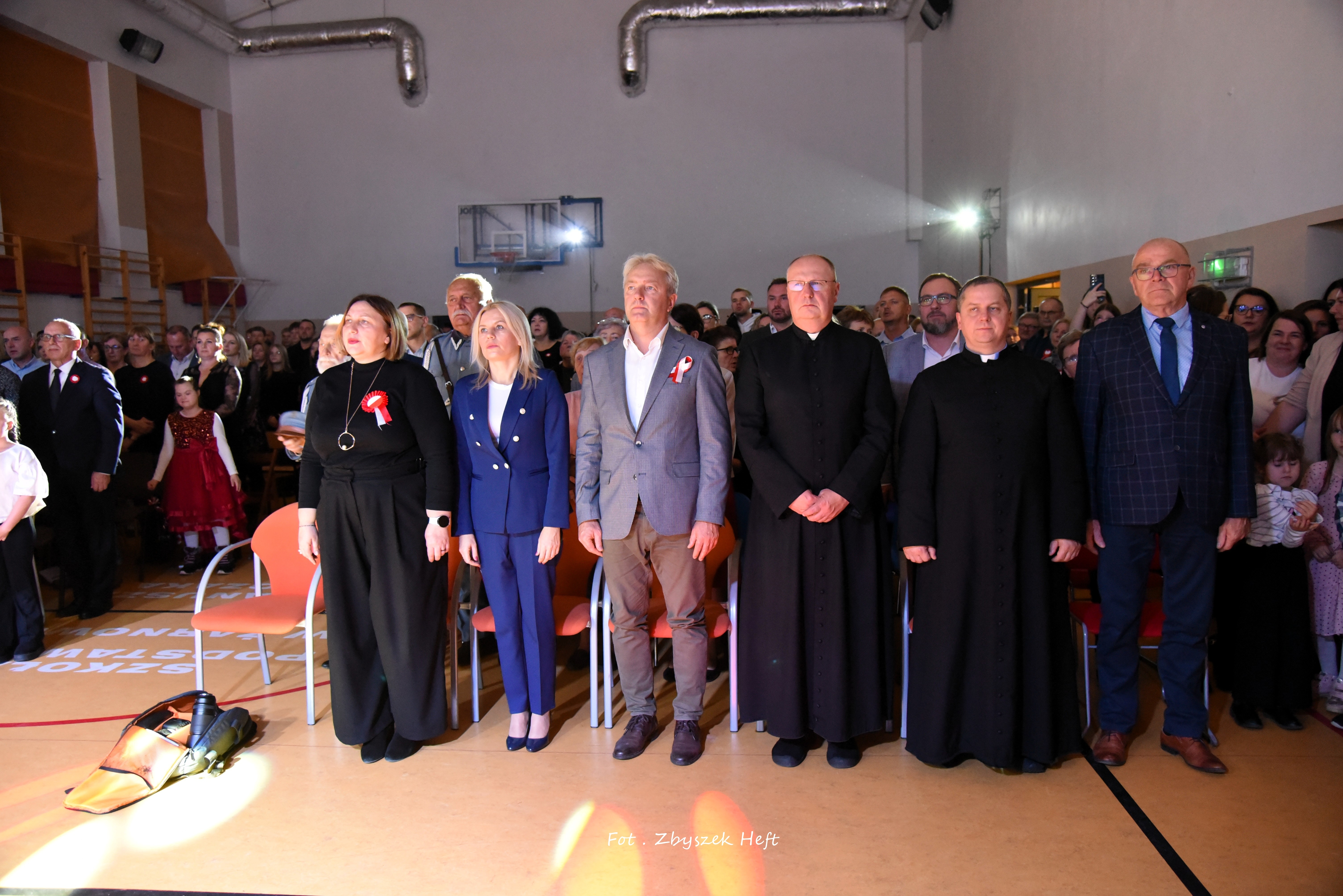 Wszystkich przybyłych, a wśród nich: Wójta Gminy Pana Adama Śliwickiego, Przedstawicieli Władz Samorządowych, Przedstawicieli Związku Piłsudczyków Polskich z Rozewia z Generałem Marianem Wiśniewskim na czele, Przewodniczącego Sekcji Oświaty Regionu Gdańskiego NSZZ „Solidarność” Pana Wojciecha Książka, Wiceprzewodniczącego Zrzeszenia Osób Internowanych „Strzebielinek” Pana Jana Skibę, Emerytowanych Dyrektorów Naszej Szkoły: Panią Genowefę Bizewską i Panią Irenę Ceynowa, Księży: Arkadiusza Warszyńskiego i Sebastiana Habowskiego, Absolwentów i Rodziców Uczniów oraz Wszystkich Przyjaciół Szkoły ciepło i serdecznie powitała Dyrektor Pani Aleksandra Obszyńska.
