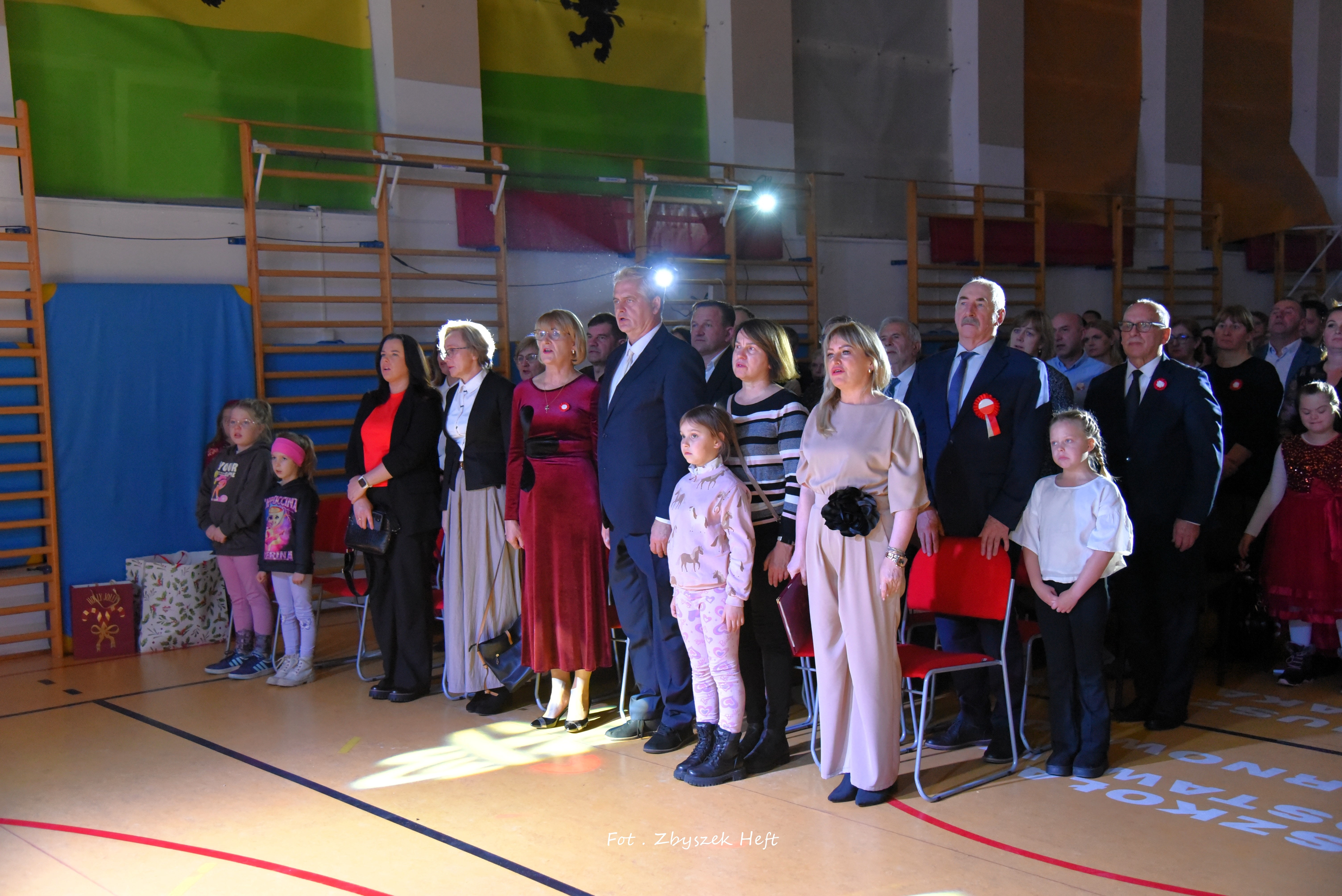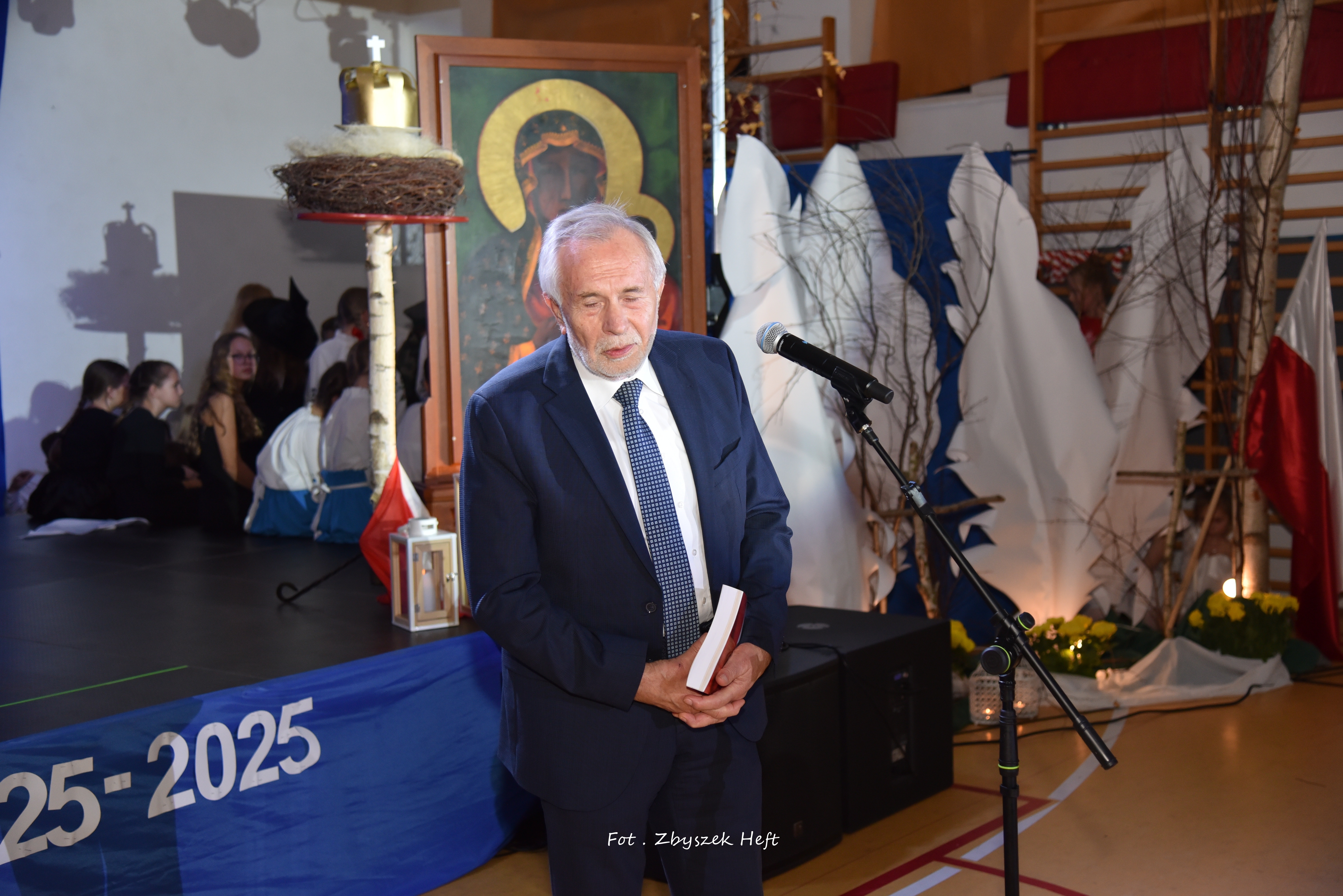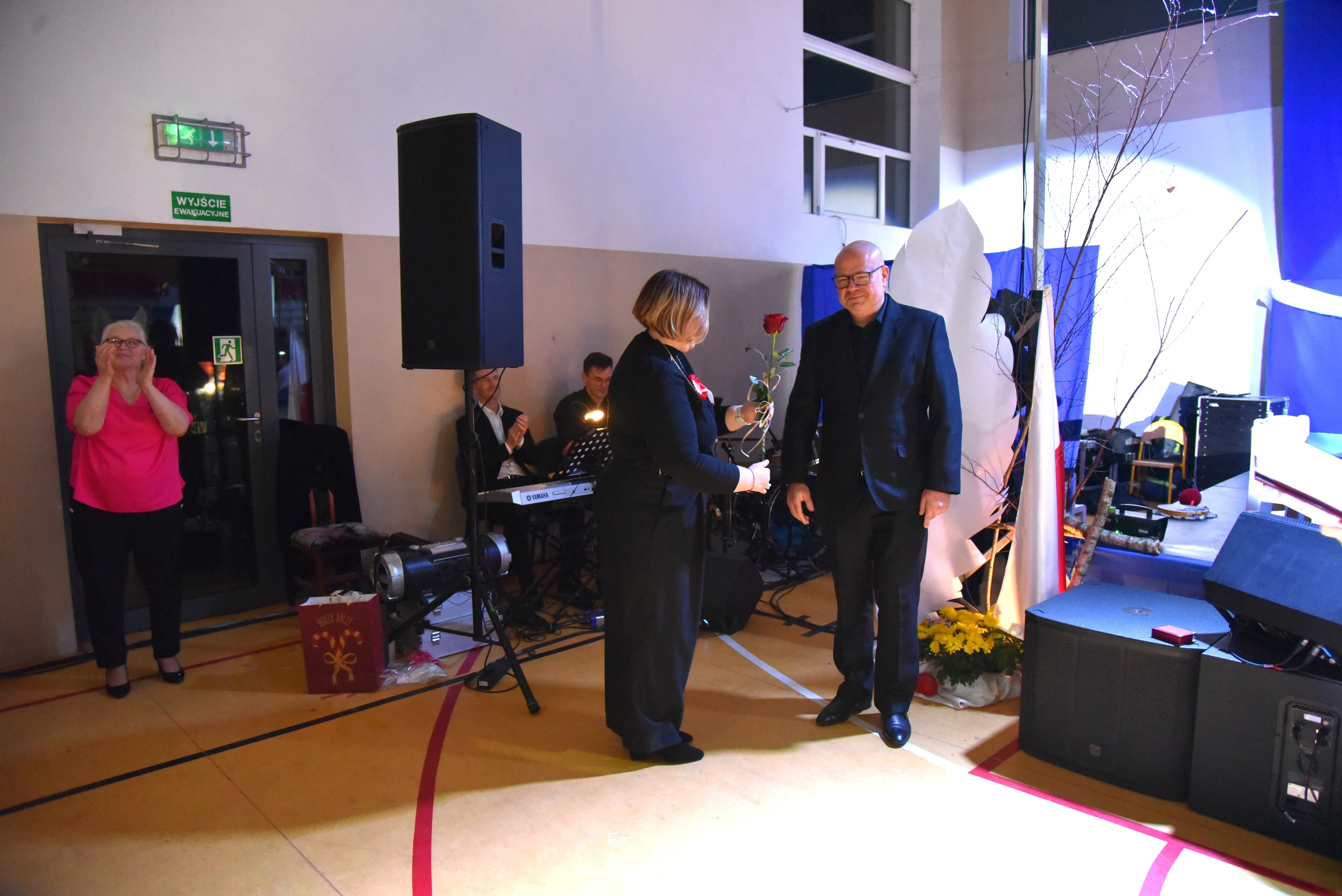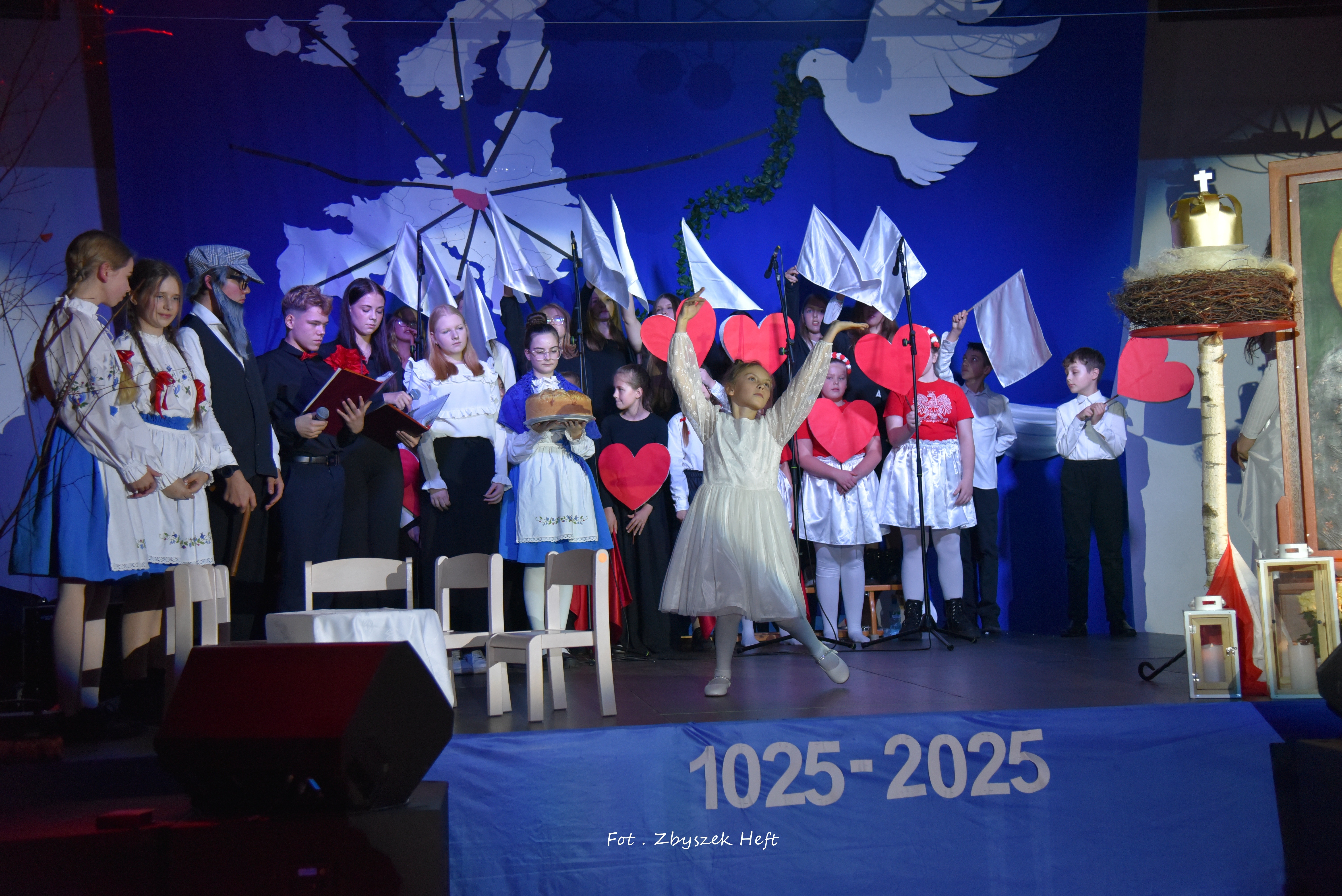 Po części oficjalnej i odprowadzeniu Sztandaru zgromadzeni mogli obejrzeć niezwykle poruszający 𝐬𝐩𝐞𝐤𝐭𝐚𝐤𝐥 𝐩𝐭. „𝐍𝐢𝐞 𝐦𝐚 𝐝𝐫𝐨𝐠𝐢 𝐝𝐨 𝐩𝐨𝐤𝐨𝐣𝐮. 𝐓𝐨 𝐩𝐨𝐤𝐨́𝐣 𝐣𝐞𝐬𝐭 𝐝𝐫𝐨𝐠𝐚̨” przygotowany przez uczniów klas IV-VIII pod kierunkiem nauczycieli: P. Haliny Gojke, P. Beaty Dettlaff i P. Bartłomieja Szefke.
