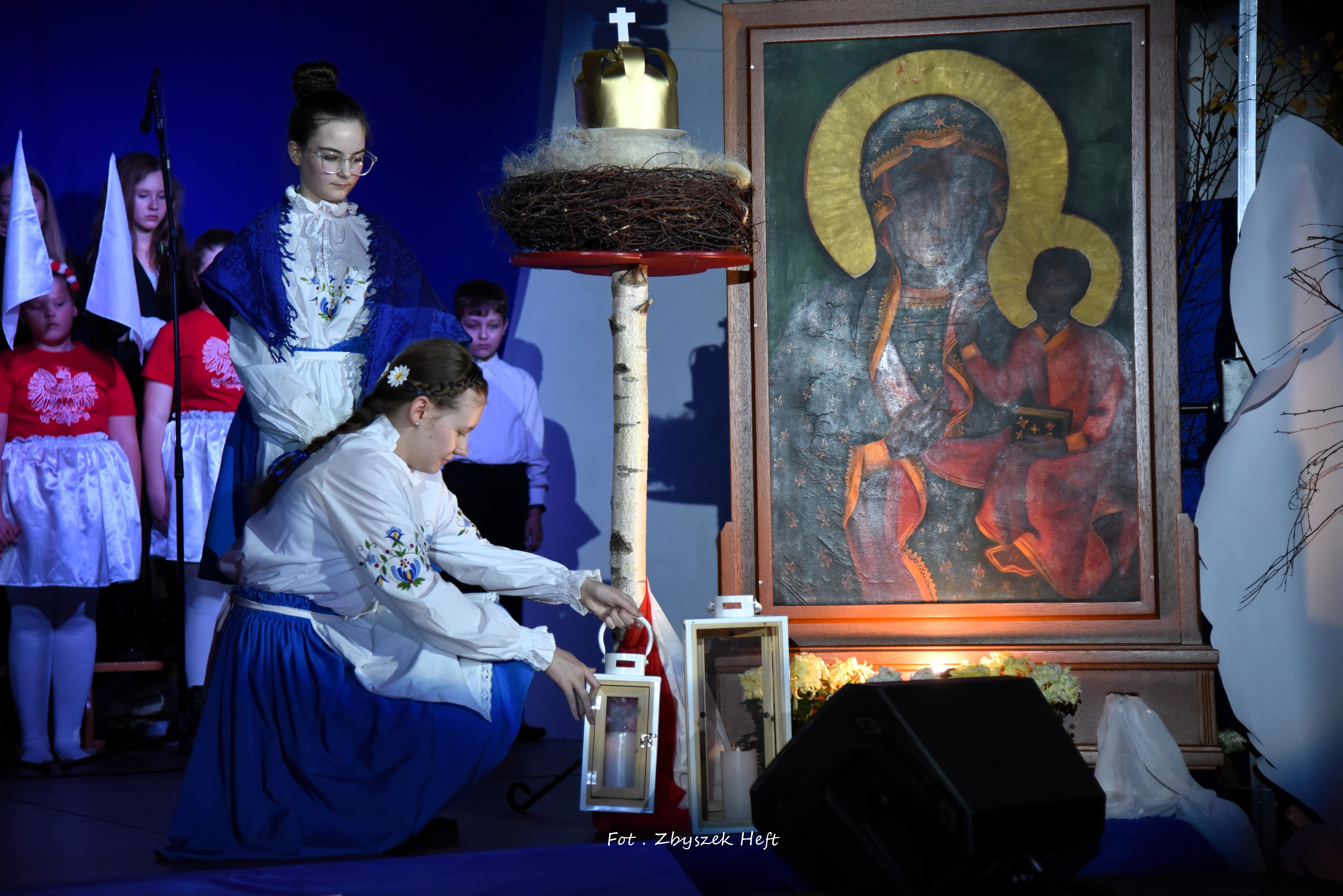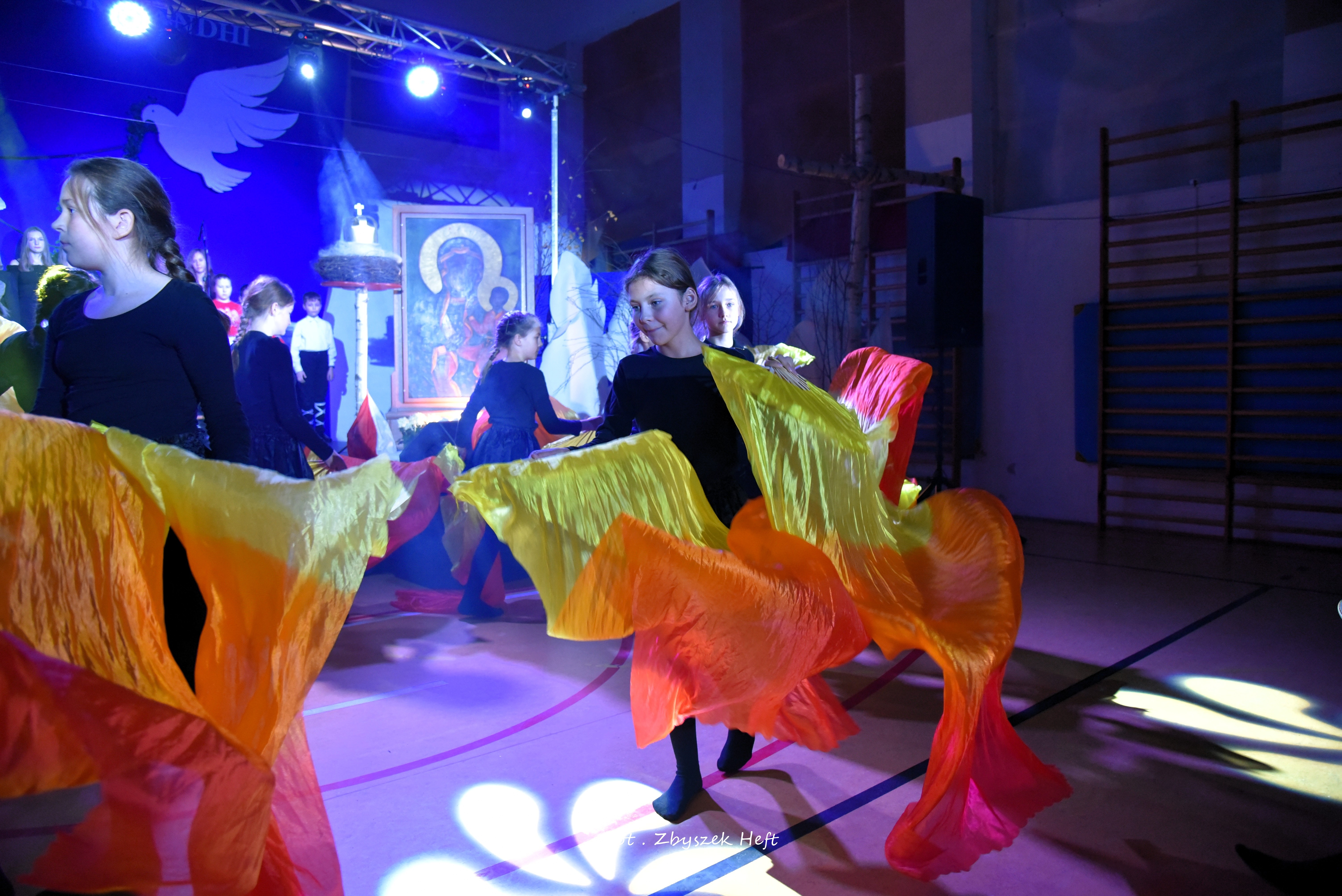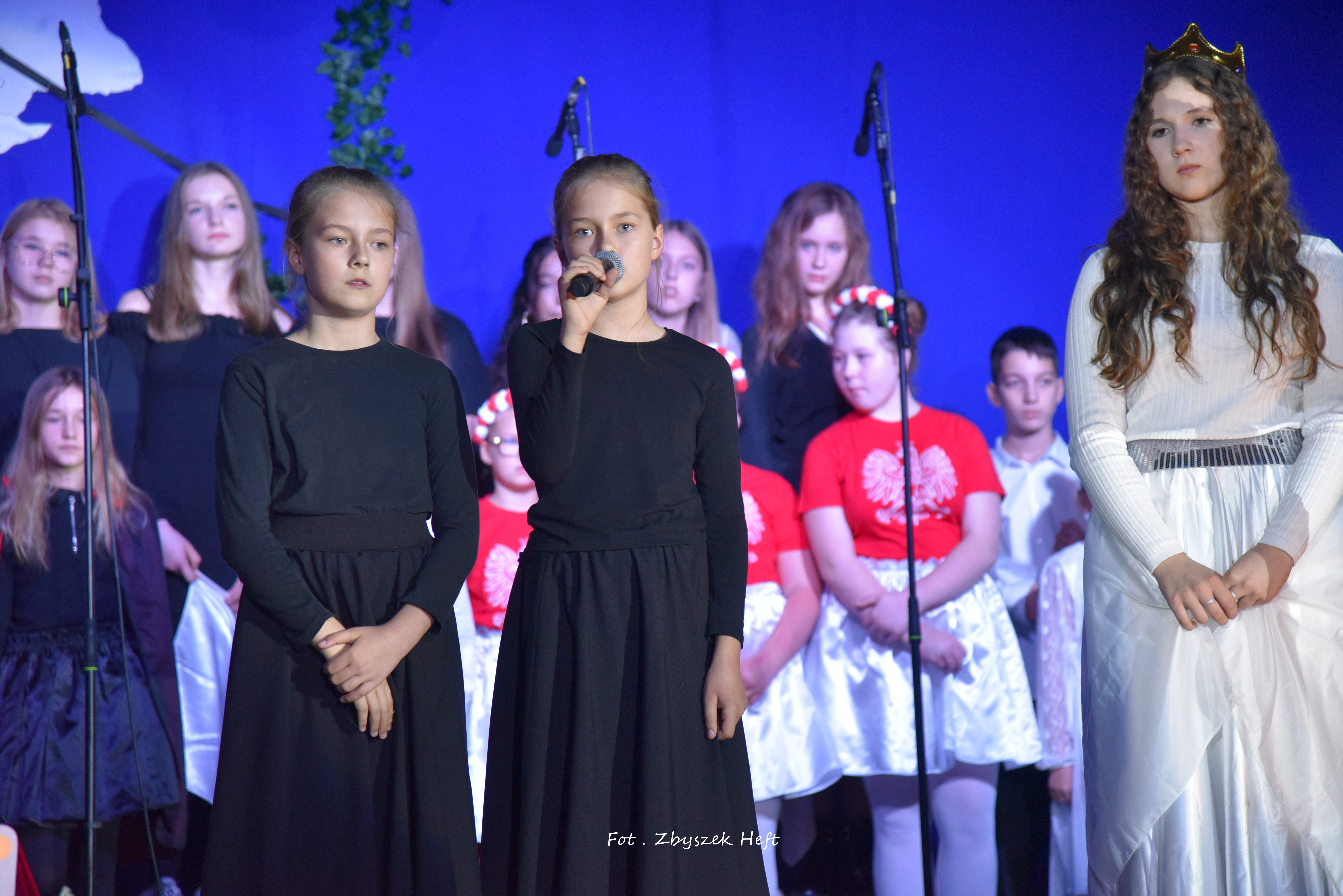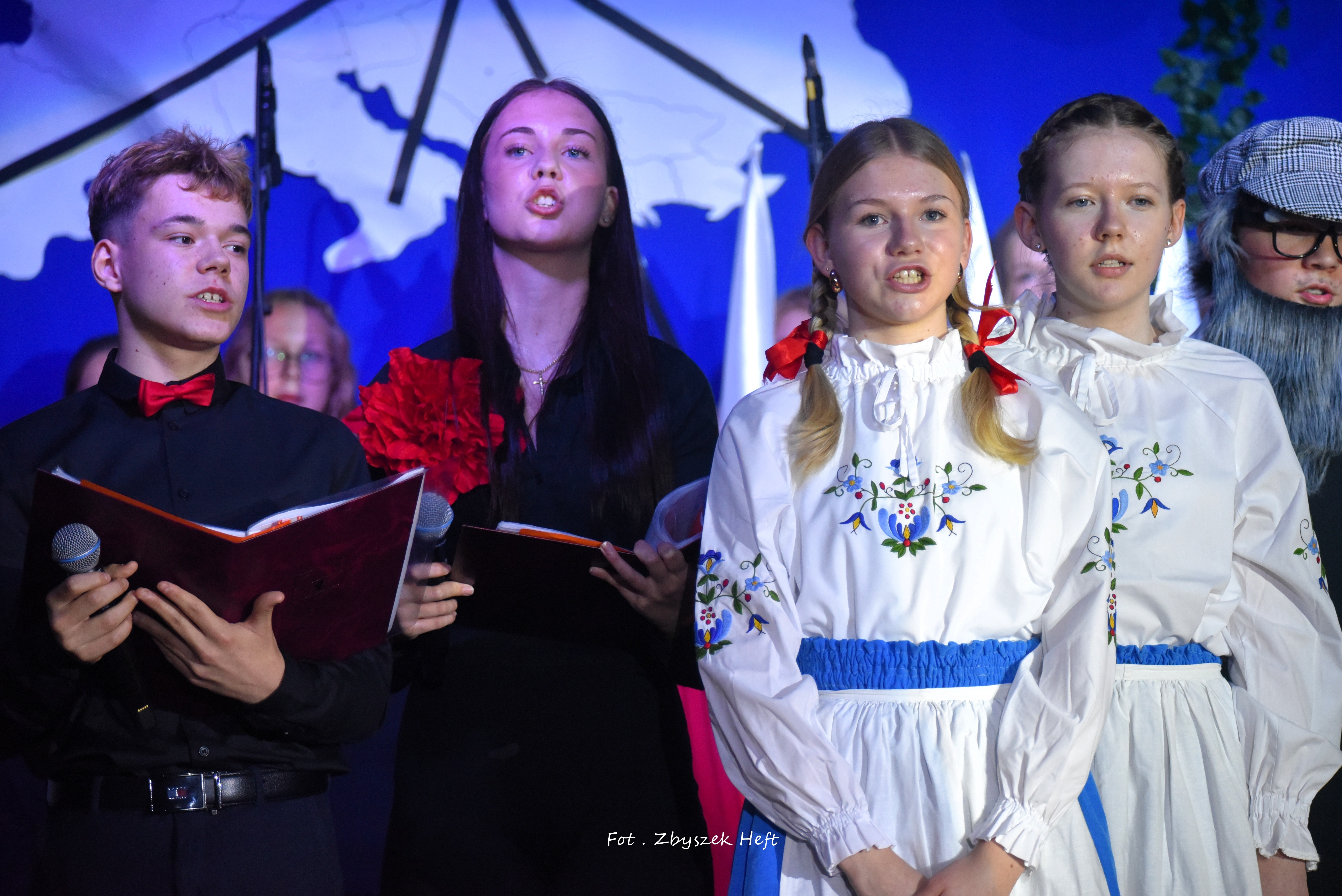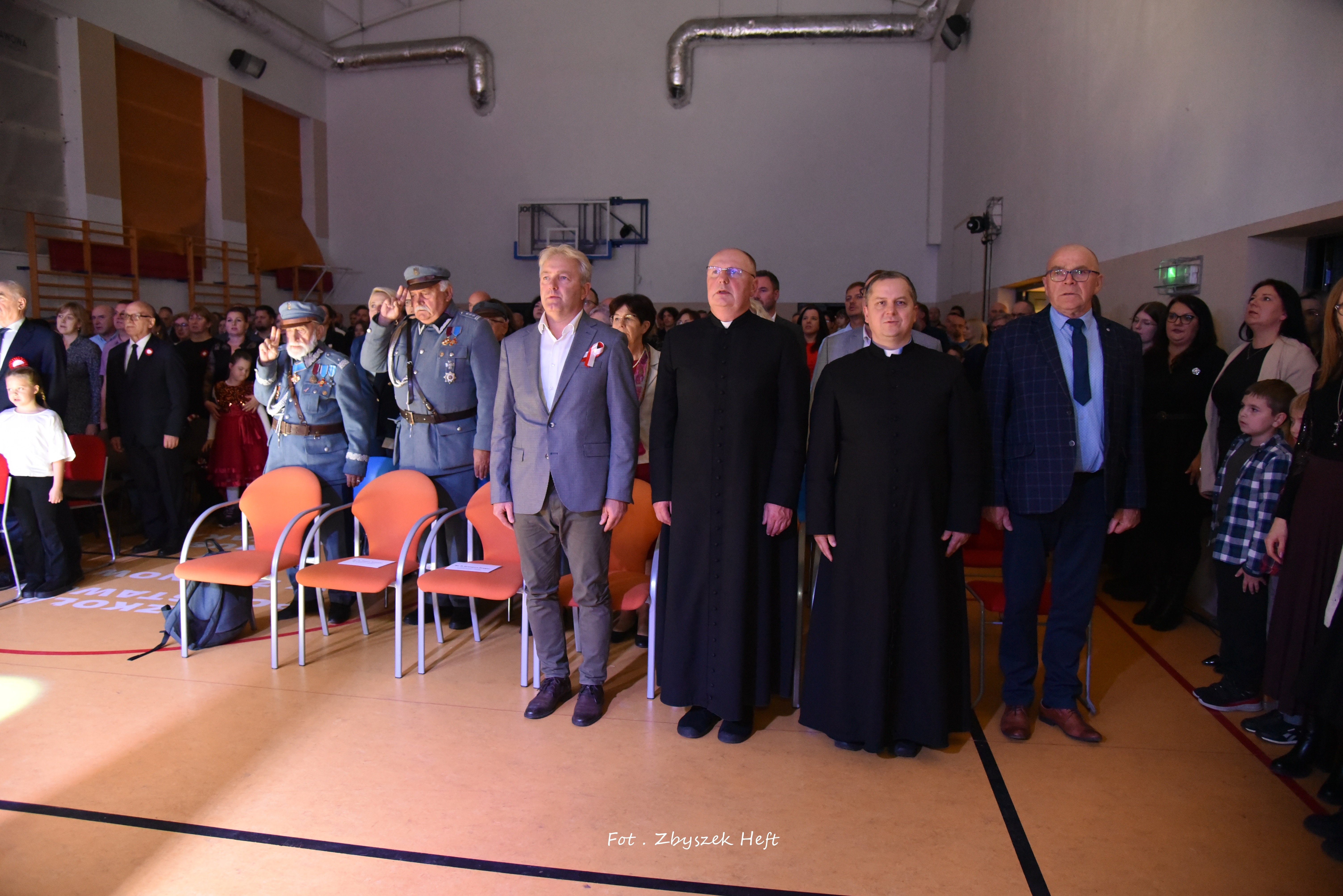 Po części oficjalnej i odprowadzeniu Sztandaru zgromadzeni mogli obejrzeć niezwykle poruszający 𝐬𝐩𝐞𝐤𝐭𝐚𝐤𝐥 𝐩𝐭. „𝐍𝐢𝐞 𝐦𝐚 𝐝𝐫𝐨𝐠𝐢 𝐝𝐨 𝐩𝐨𝐤𝐨𝐣𝐮. 𝐓𝐨 𝐩𝐨𝐤𝐨́𝐣 𝐣𝐞𝐬𝐭 𝐝𝐫𝐨𝐠𝐚̨” przygotowany przez uczniów klas IV-VIII pod kierunkiem nauczycieli: P. Haliny Gojke, P. Beaty Dettlaff i P. Bartłomieja Szefke.