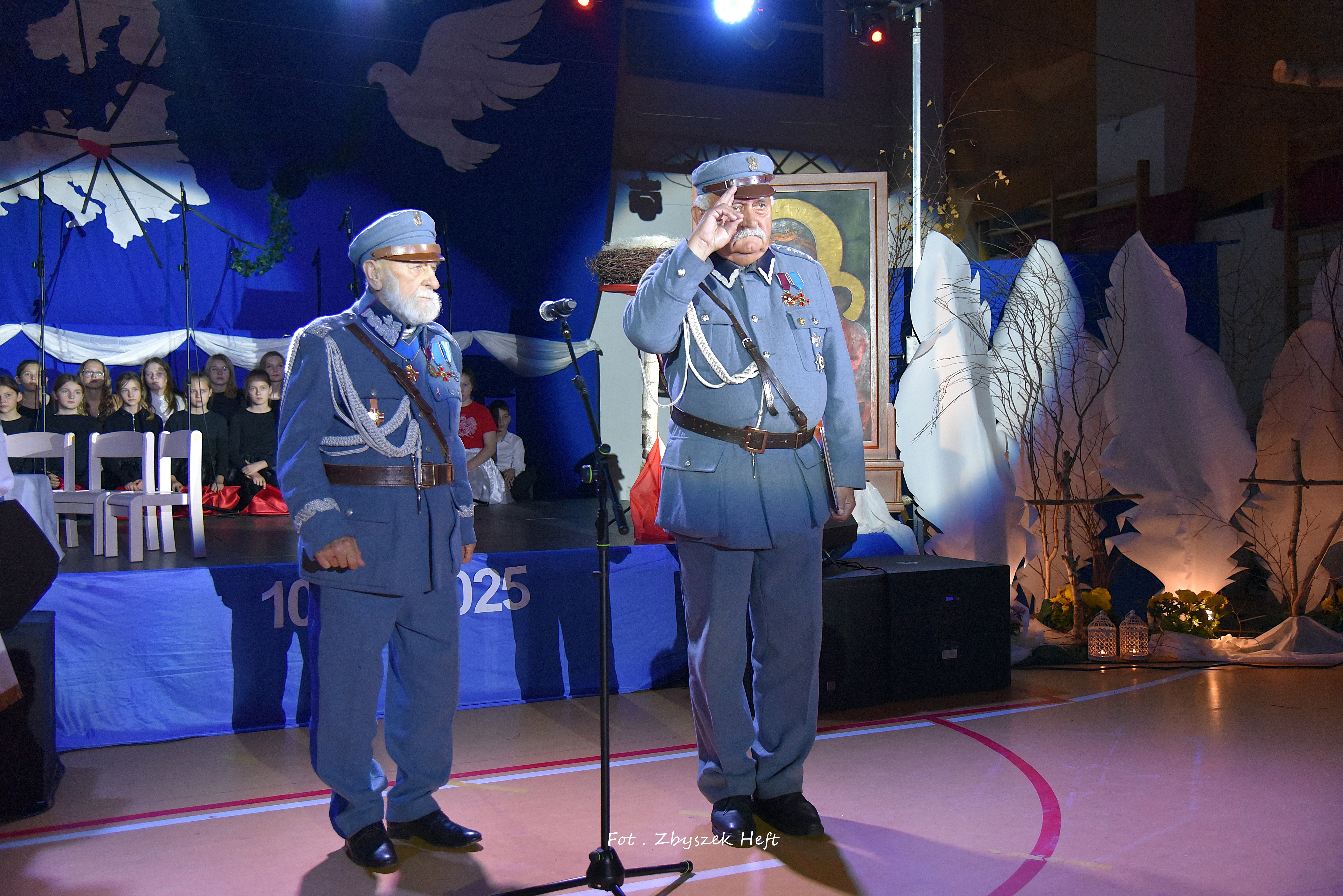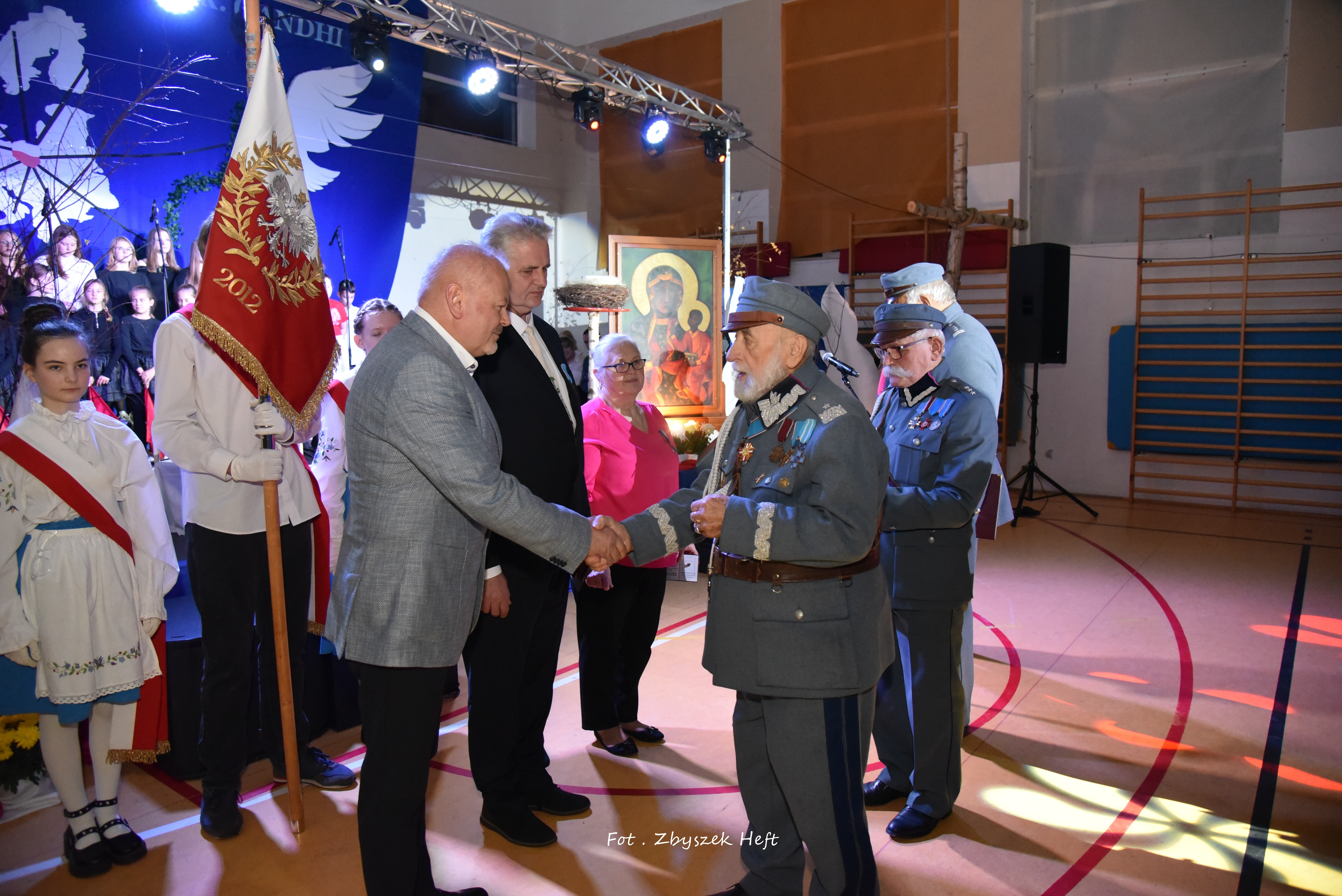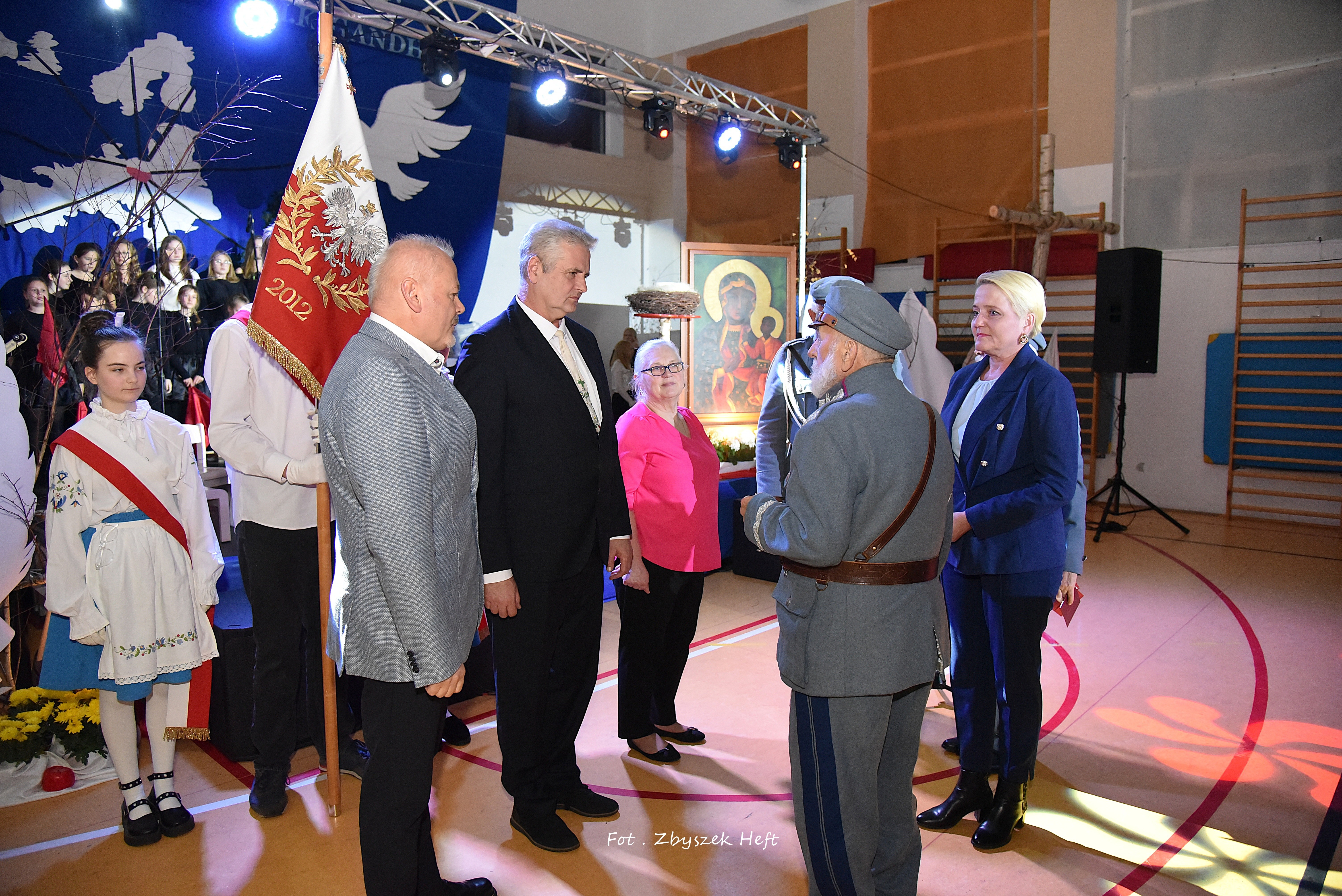 W swym wystąpieniu Pani Dyrektor A. Obszyńska poinformowała zebranych o zaszczytnym odznaczeniu niedawno przyznanym naszej placówce: 𝐌𝐞𝐝𝐚𝐥𝐮 𝐏𝐫𝐨 𝐏𝐚𝐭𝐫𝐢𝐚 i podkreśliła wagę dziedzictwa krzewienia patriotyzmu - przejętego od przodków, w szczególności od 𝐩𝐫𝐳𝐞𝐝𝐰𝐨𝐣𝐞𝐧𝐧𝐞𝐠𝐨 𝐊𝐢𝐞𝐫𝐨𝐰𝐧𝐢𝐤𝐚 𝐍𝐚𝐬𝐳𝐞𝐣 𝐒𝐳𝐤𝐨ł𝐲, 𝐙𝐚ł𝐨𝐳̇𝐲𝐜𝐢𝐞𝐥𝐚 𝐢 𝐊𝐨𝐦𝐞𝐧𝐝𝐚𝐧𝐭𝐚 𝐓𝐚𝐣𝐧𝐞𝐣 𝐎𝐫𝐠𝐚𝐧𝐢𝐳𝐚𝐜𝐣𝐢 𝐖𝐨𝐣𝐬𝐤𝐨𝐰𝐞𝐣 „𝐆𝐫𝐲𝐟 𝐏𝐨𝐦𝐨𝐫𝐬𝐤𝐢” 𝐒́.𝐏. 𝐉𝐨́𝐳𝐞𝐟𝐚 𝐃𝐚𝐦𝐛𝐤𝐚.