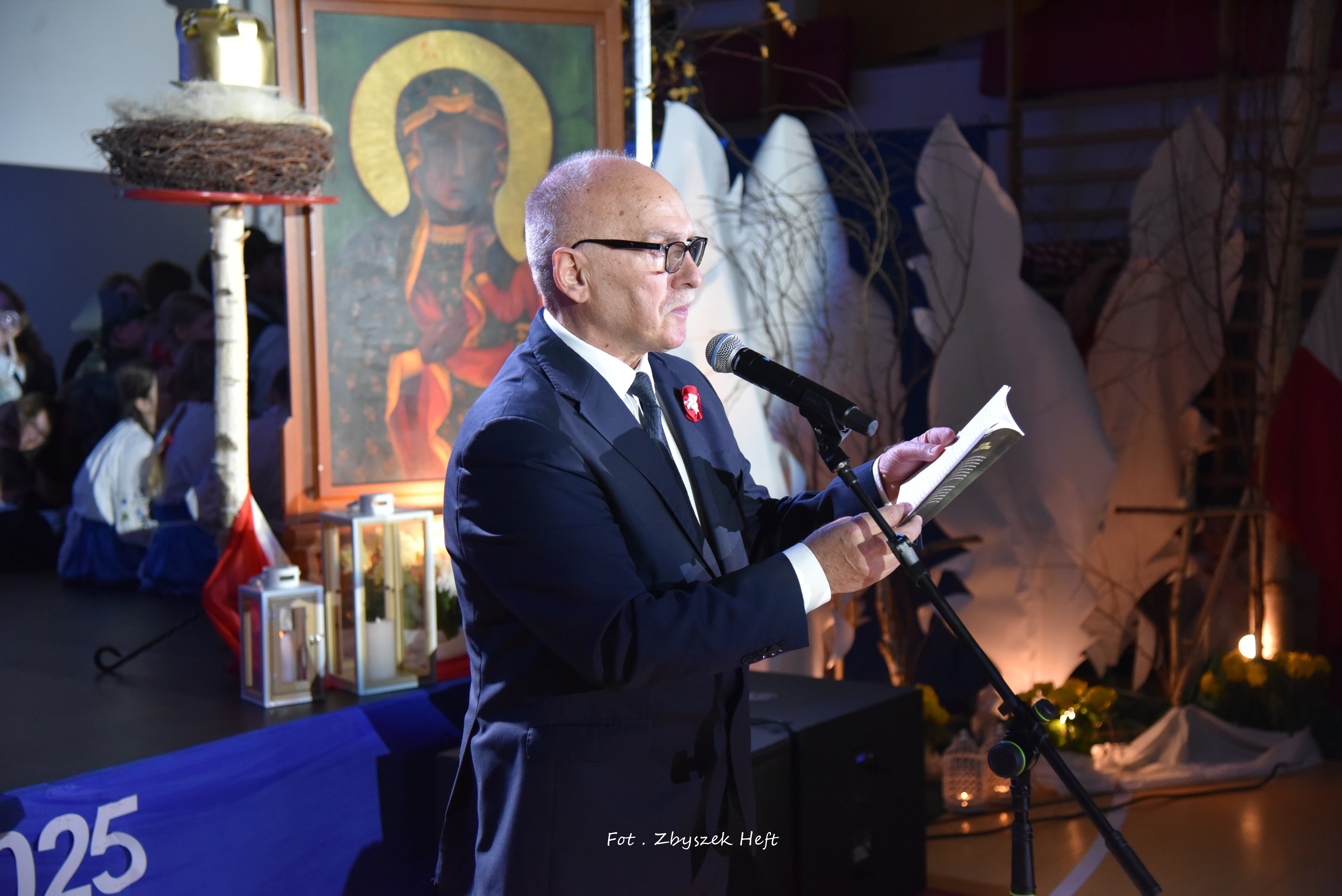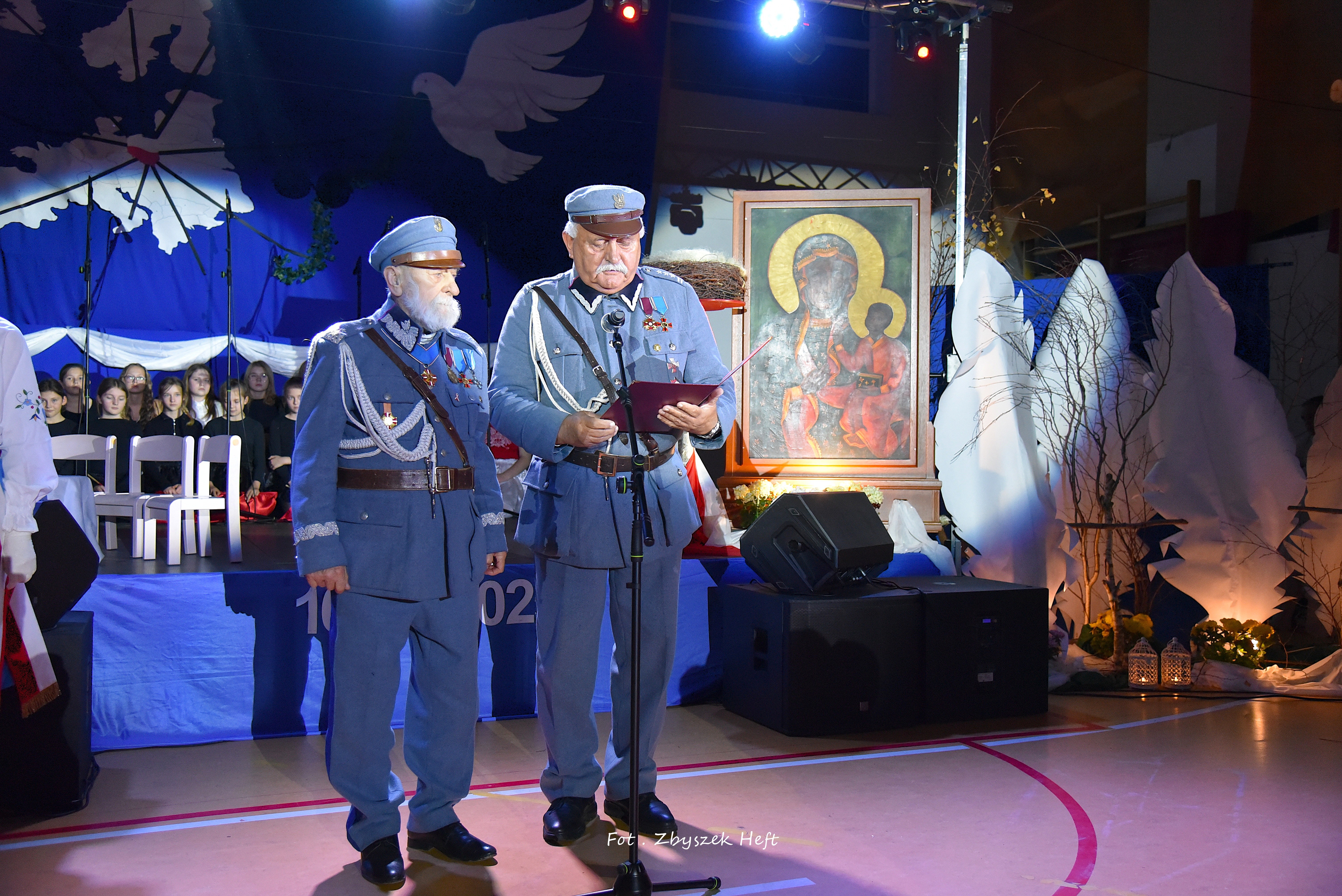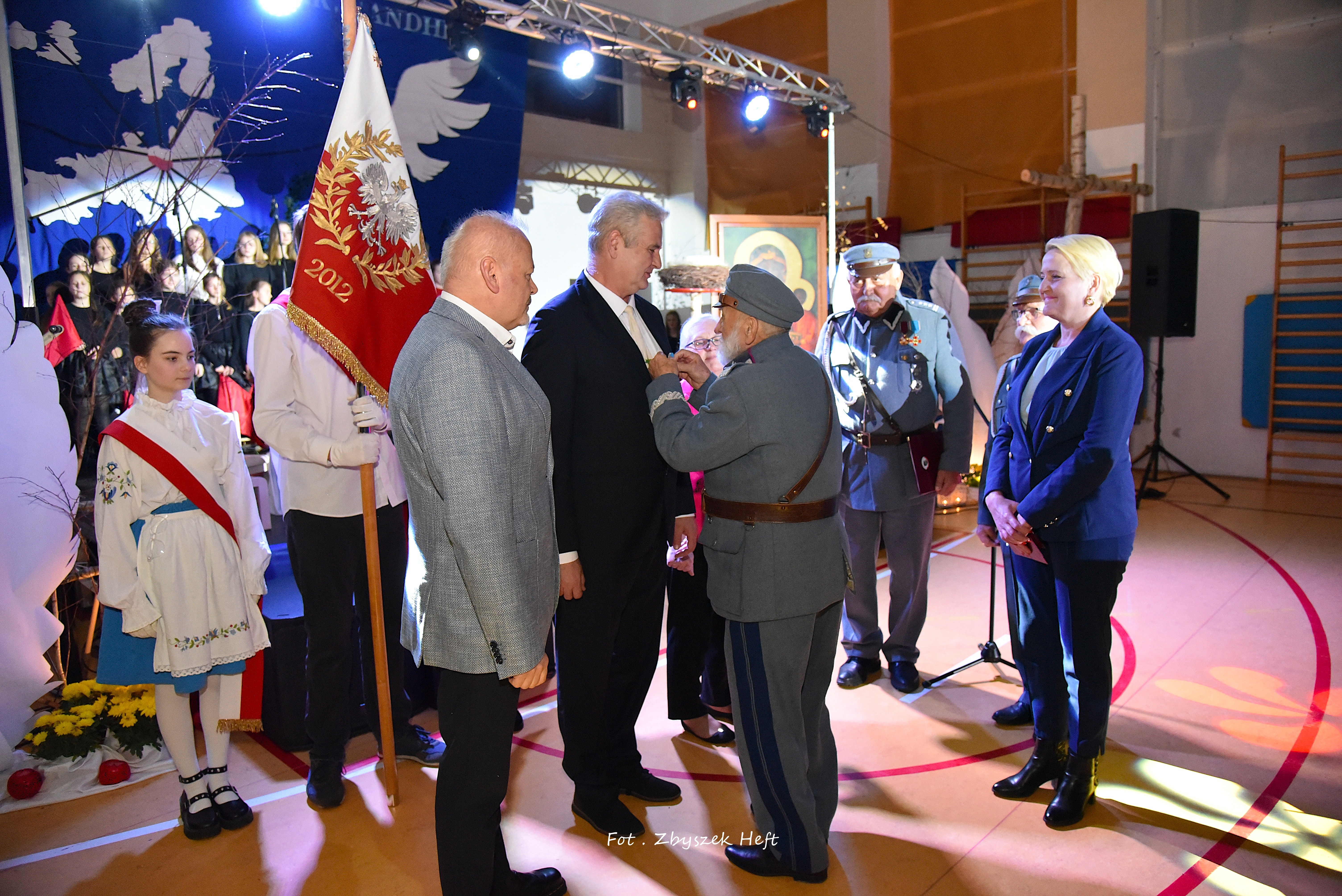 W swym wystąpieniu Pani Dyrektor A. Obszyńska poinformowała zebranych o zaszczytnym odznaczeniu niedawno przyznanym naszej placówce: 𝐌𝐞𝐝𝐚𝐥𝐮 𝐏𝐫𝐨 𝐏𝐚𝐭𝐫𝐢𝐚 i podkreśliła wagę dziedzictwa krzewienia patriotyzmu - przejętego od przodków, w szczególności od 𝐩𝐫𝐳𝐞𝐝𝐰𝐨𝐣𝐞𝐧𝐧𝐞𝐠𝐨 𝐊𝐢𝐞𝐫𝐨𝐰𝐧𝐢𝐤𝐚 𝐍𝐚𝐬𝐳𝐞𝐣 𝐒𝐳𝐤𝐨ł𝐲, 𝐙𝐚ł𝐨𝐳̇𝐲𝐜𝐢𝐞𝐥𝐚 𝐢 𝐊𝐨𝐦𝐞𝐧𝐝𝐚𝐧𝐭𝐚 𝐓𝐚𝐣𝐧𝐞𝐣 𝐎𝐫𝐠𝐚𝐧𝐢𝐳𝐚𝐜𝐣𝐢 𝐖𝐨𝐣𝐬𝐤𝐨𝐰𝐞𝐣 „𝐆𝐫𝐲𝐟 𝐏𝐨𝐦𝐨𝐫𝐬𝐤𝐢” 𝐒́.𝐏. 𝐉𝐨́𝐳𝐞𝐟𝐚 𝐃𝐚𝐦𝐛𝐤𝐚.