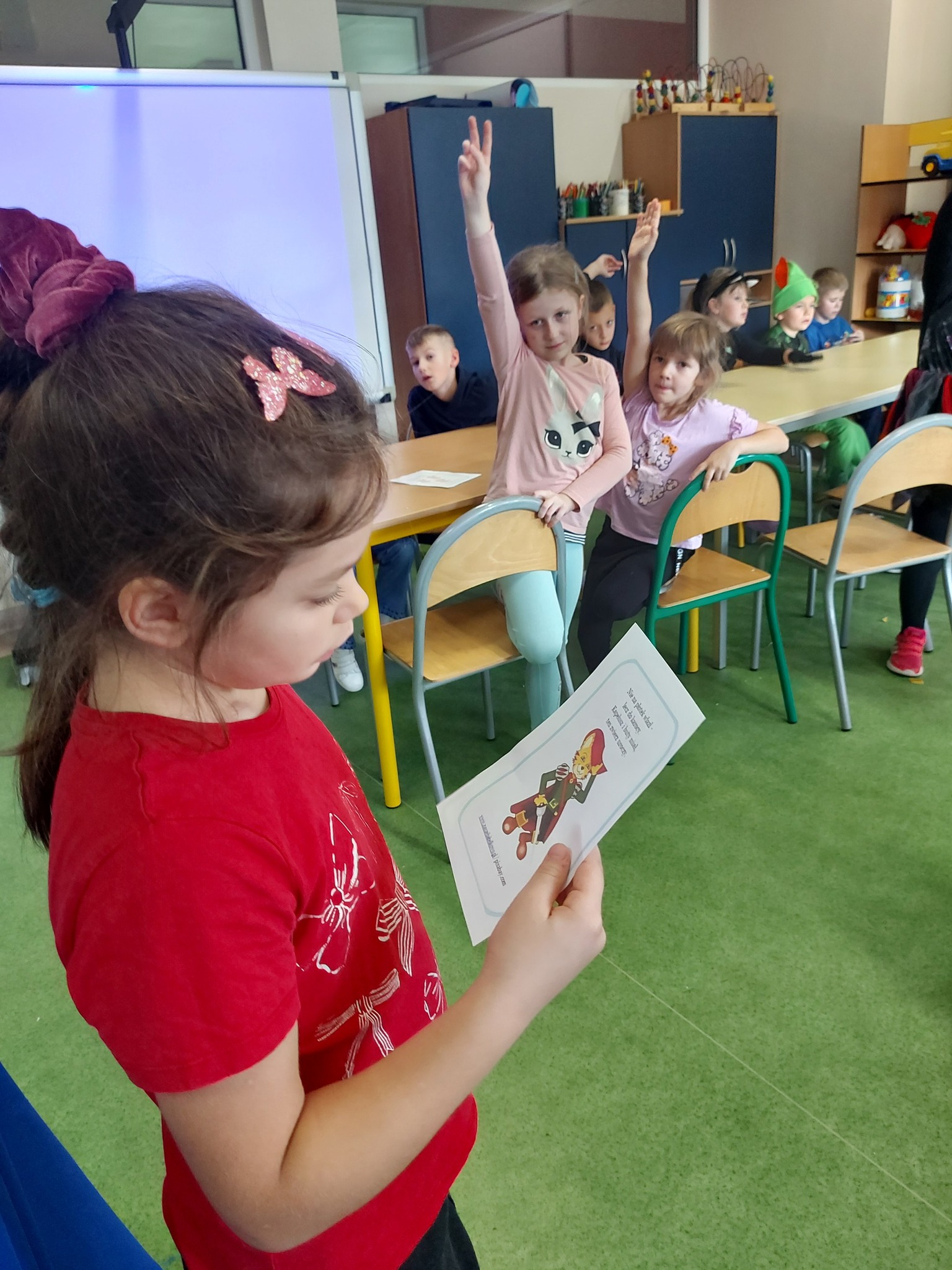 Z tajemniczego pudełka dzieci losowały rekwizyty, a ich zadaniem było dopasowanie ich do odpowiedniej bajki lub postaci. Złoty pantofelek? Kopciuszek! Czerwony kapturek? Wiadomo! 👠🧺