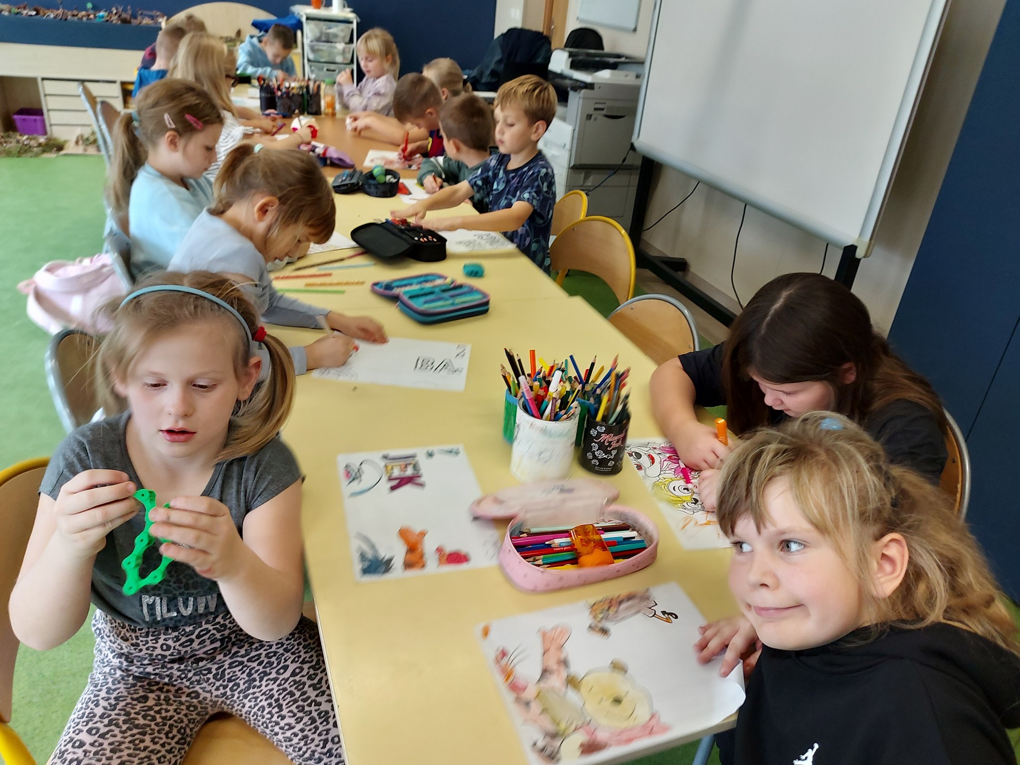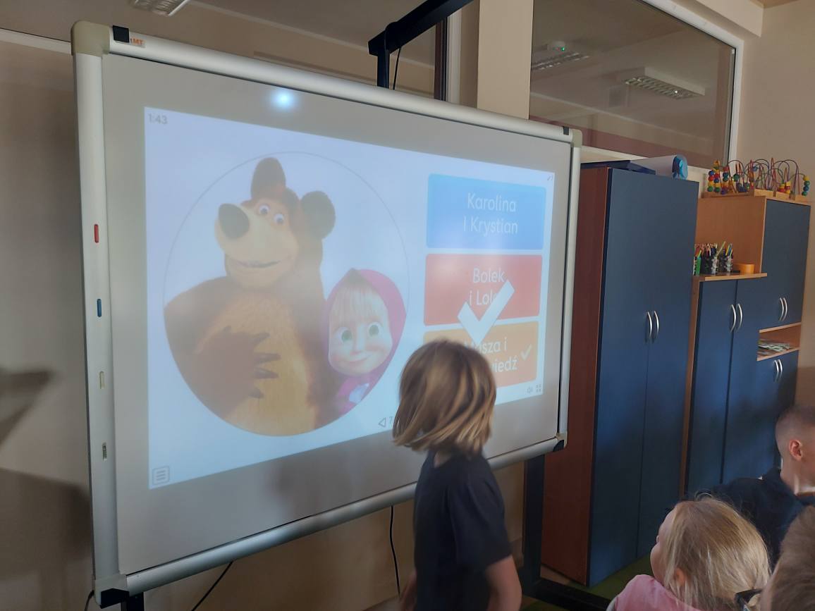 Uczniowie z zapałem odgadywali zagadki oraz rozwiązywali interaktywne quizy na tablicy multimedialnej. Było dużo śmiechu, ale też współpracy, sprytu i logicznego myślenia! 🧩💡