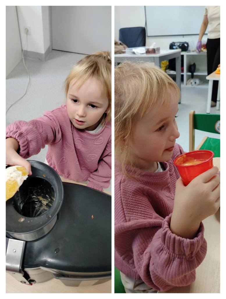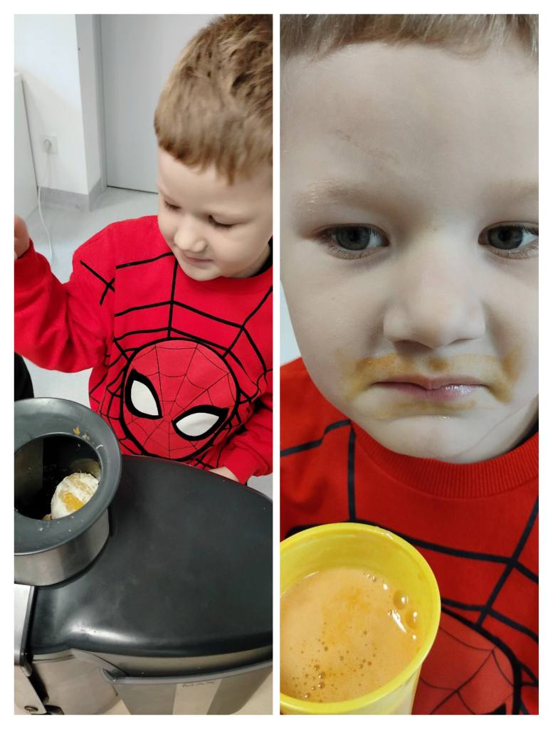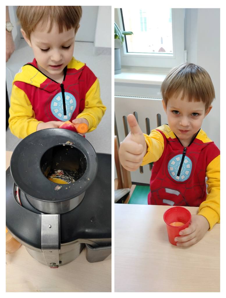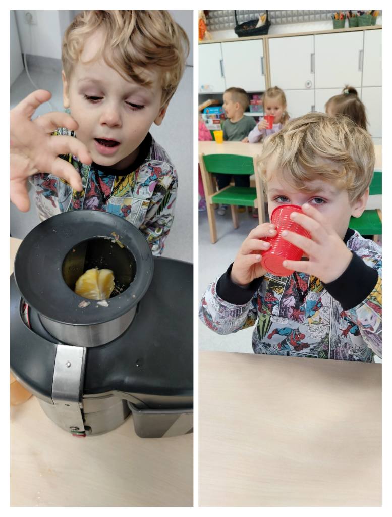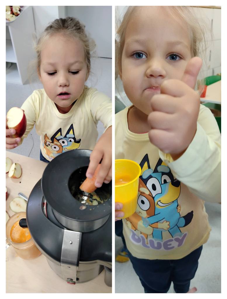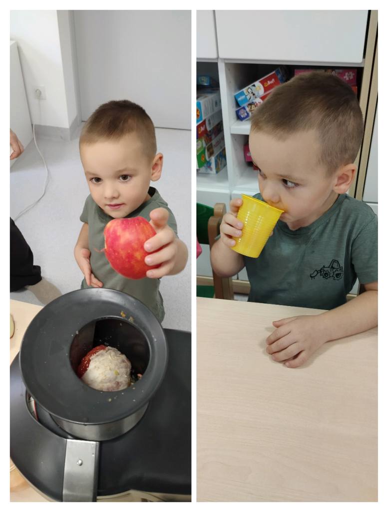 Przedszkolaki z grupy „Jeżyki” przygotowały podczas zajęć pyszny, zdrowy sok owocowy – pełen witamin, kolorów i uśmiechów!