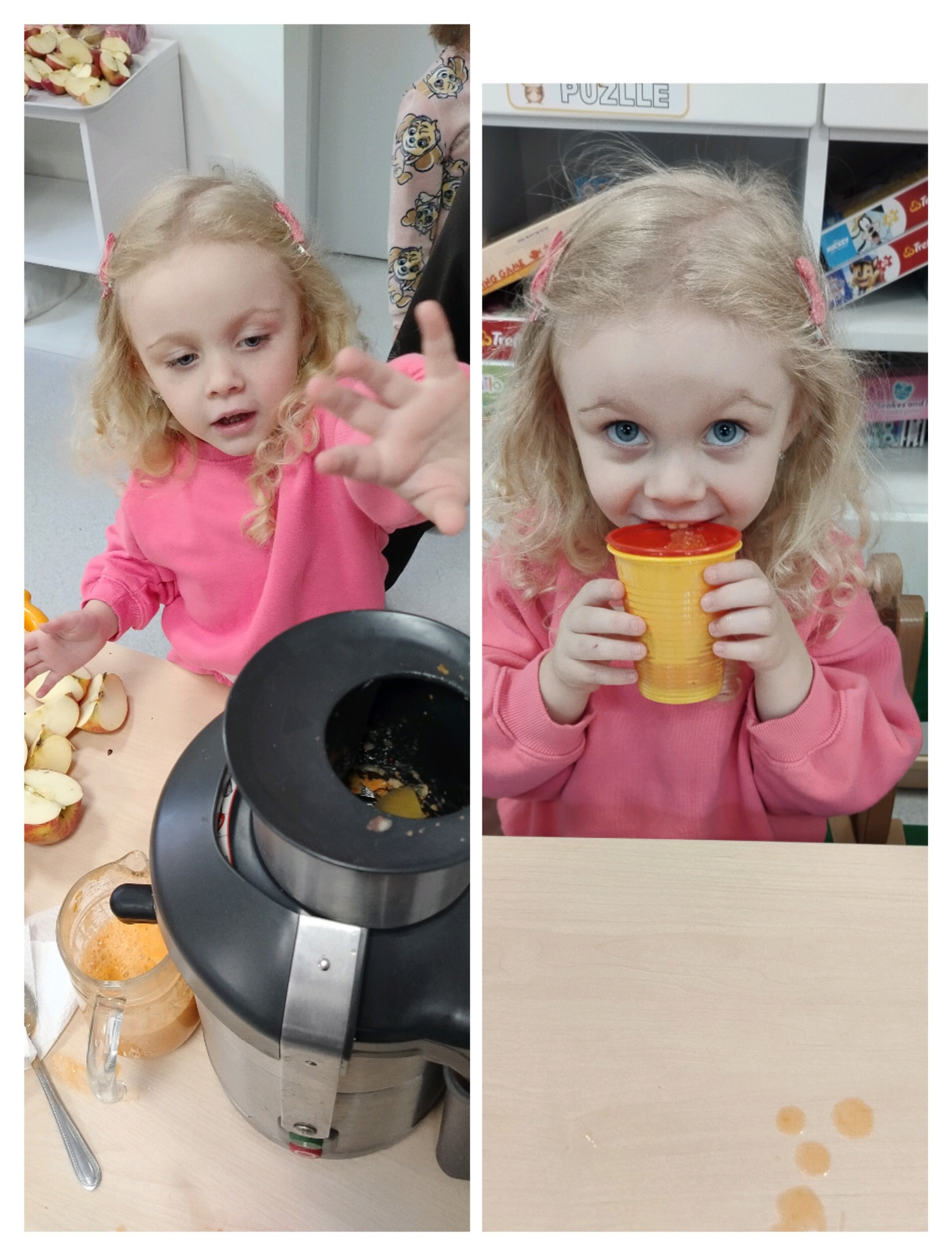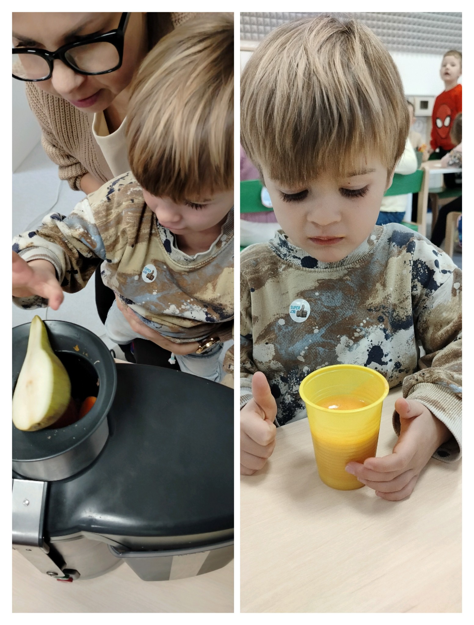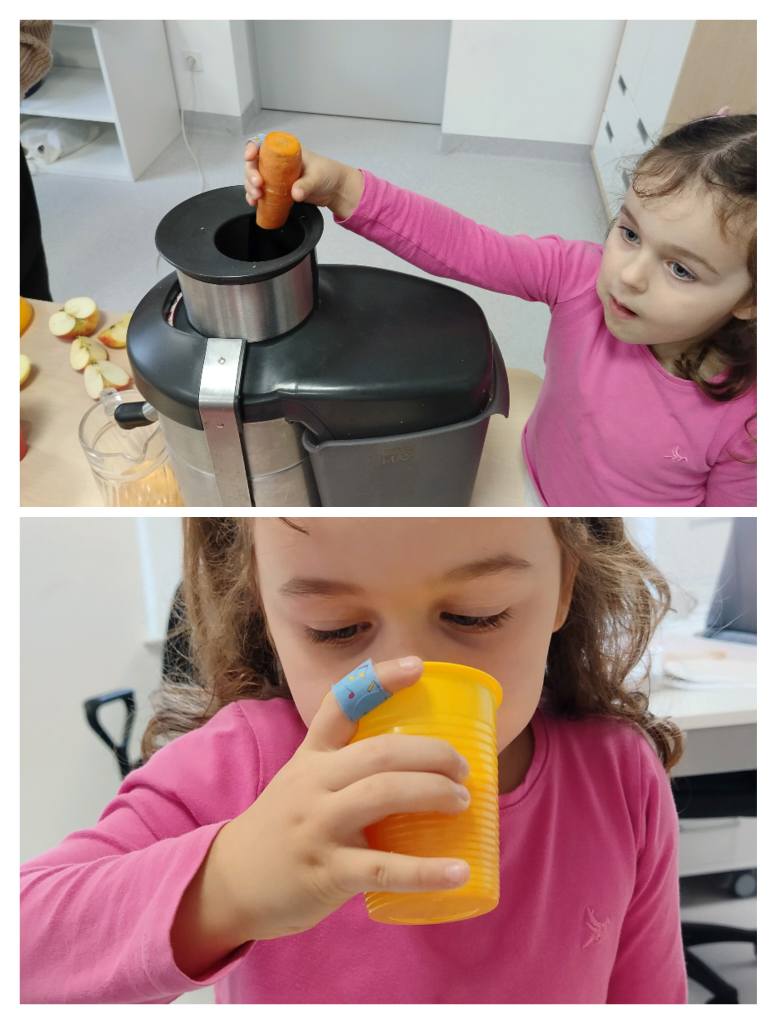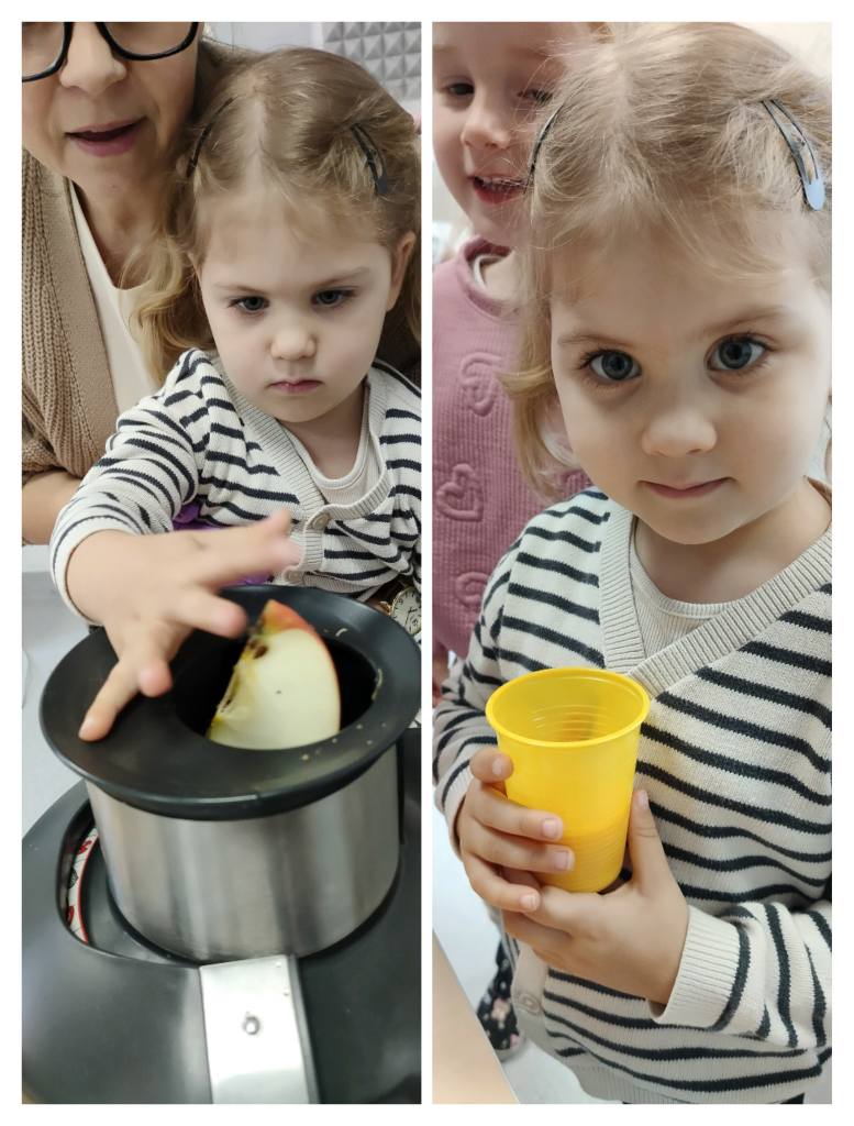 Przedszkolaki z grupy „Jeżyki” przygotowały podczas zajęć pyszny, zdrowy sok owocowy – pełen witamin, kolorów i uśmiechów!