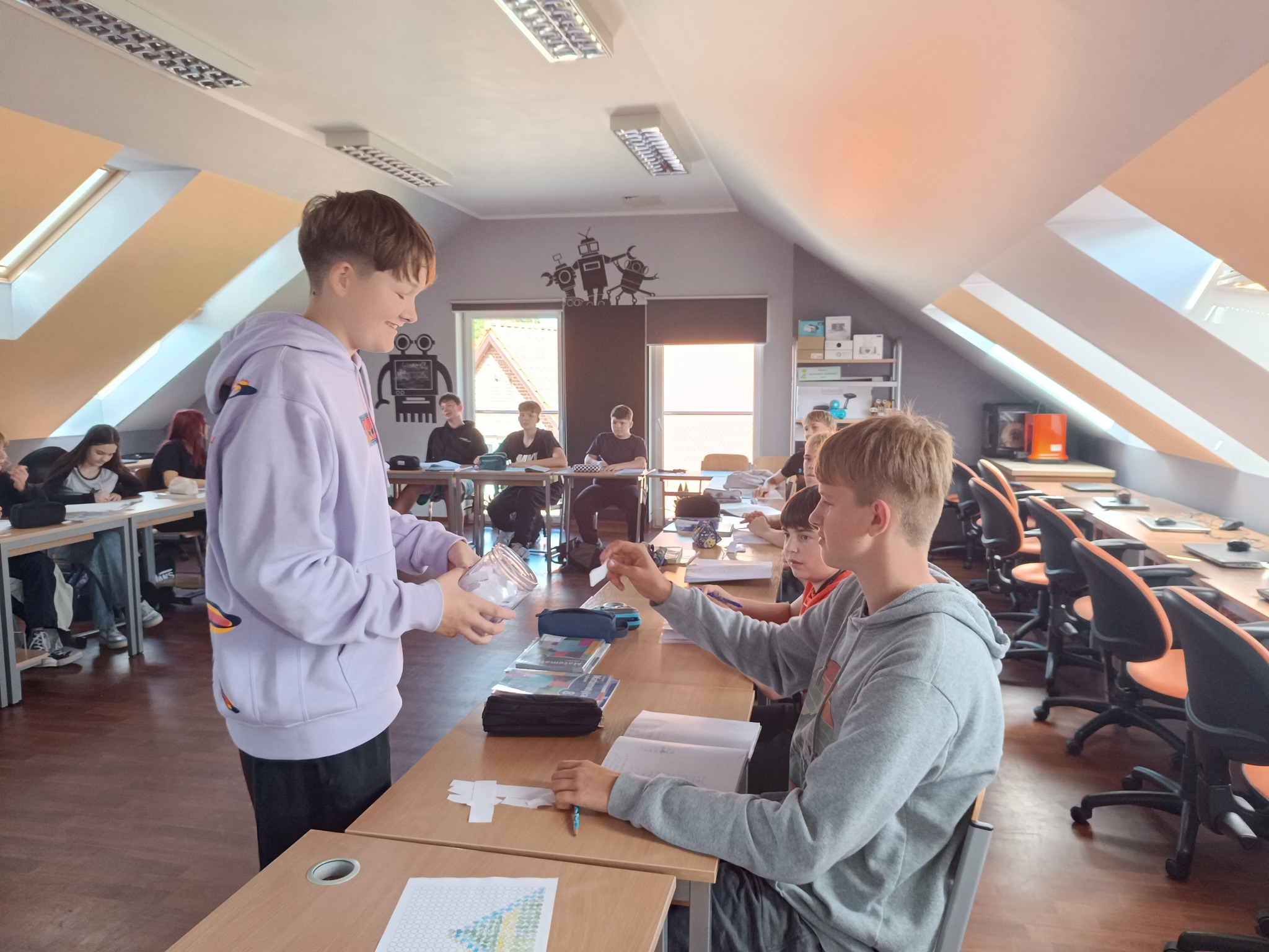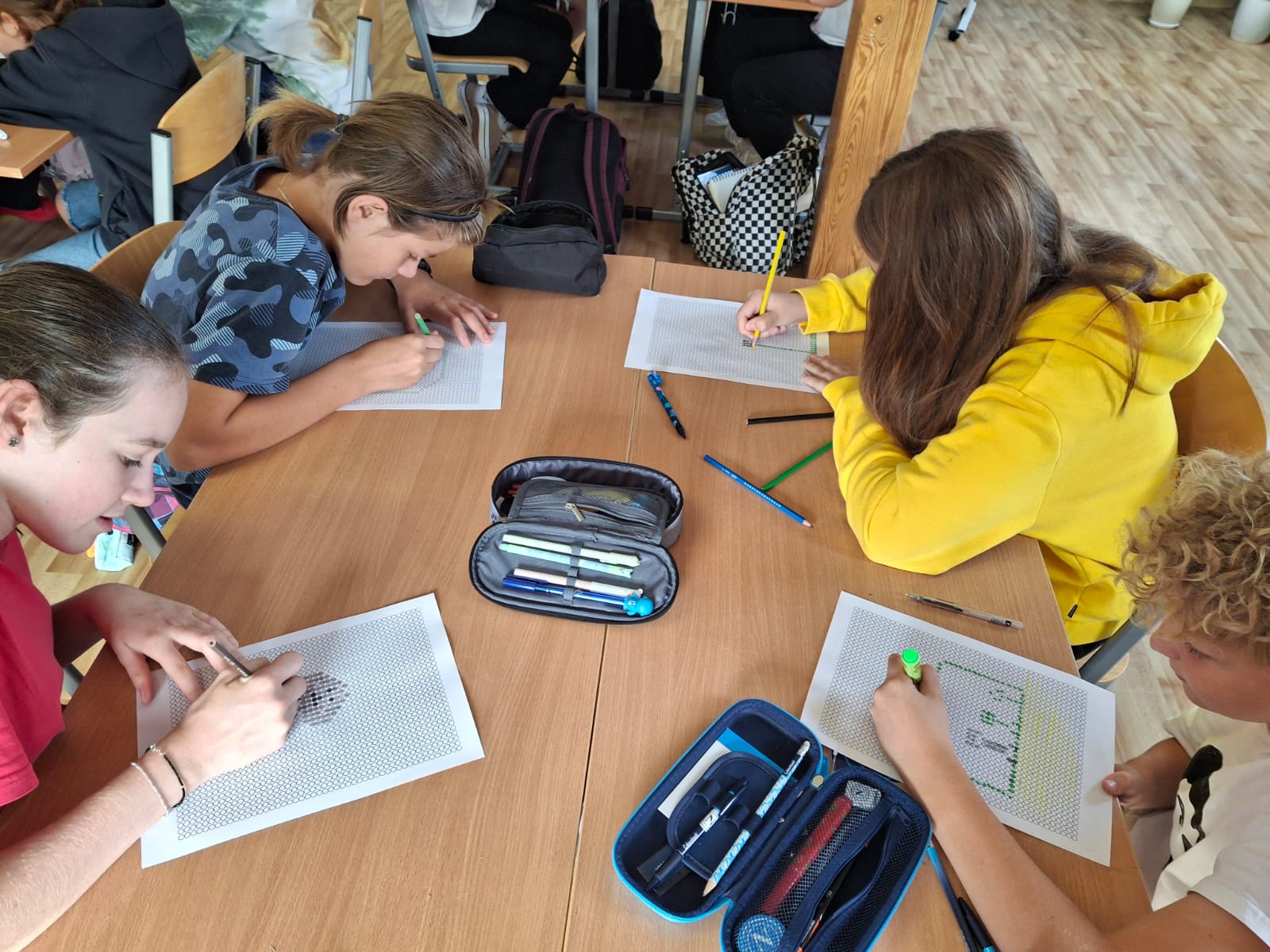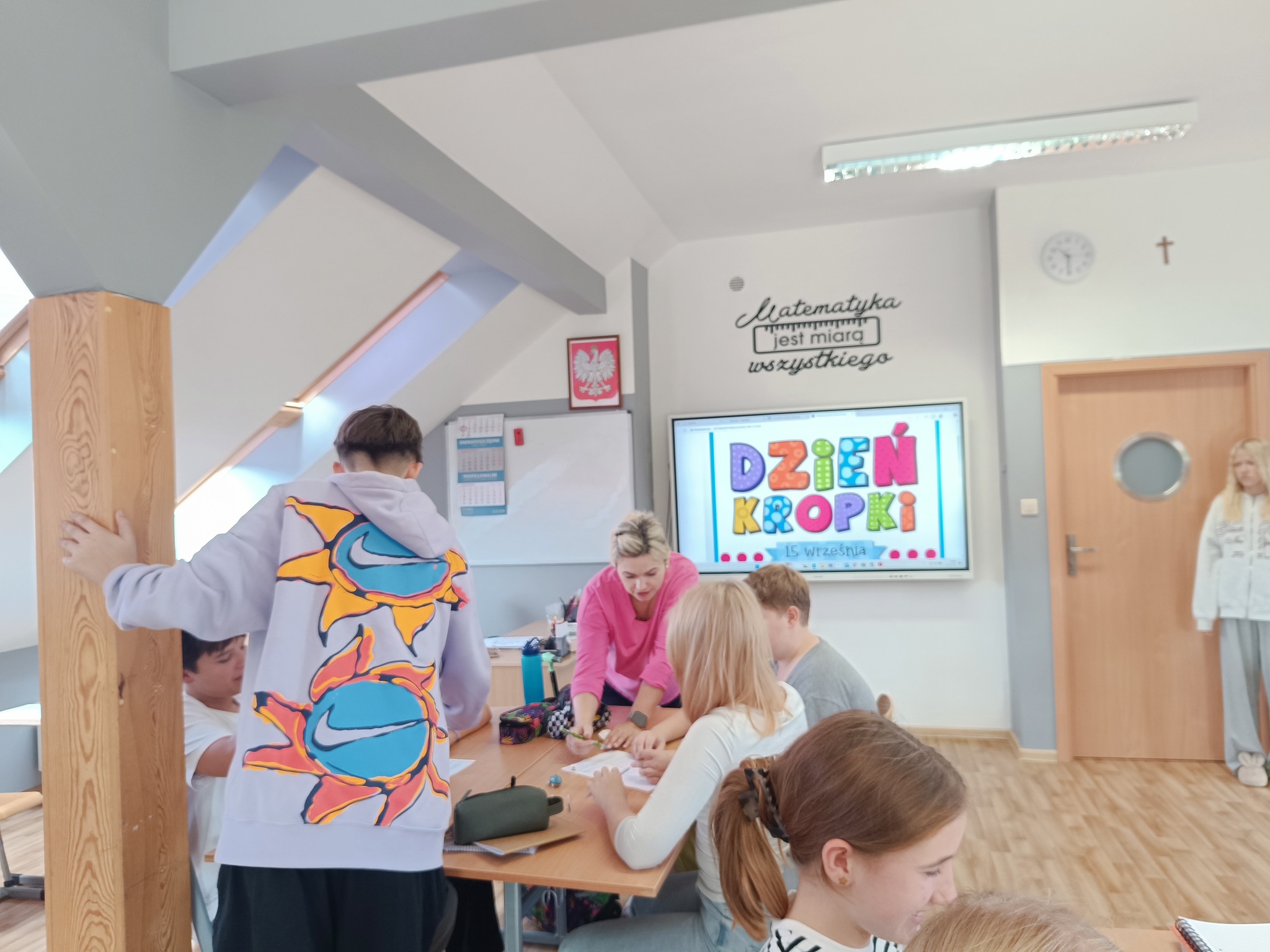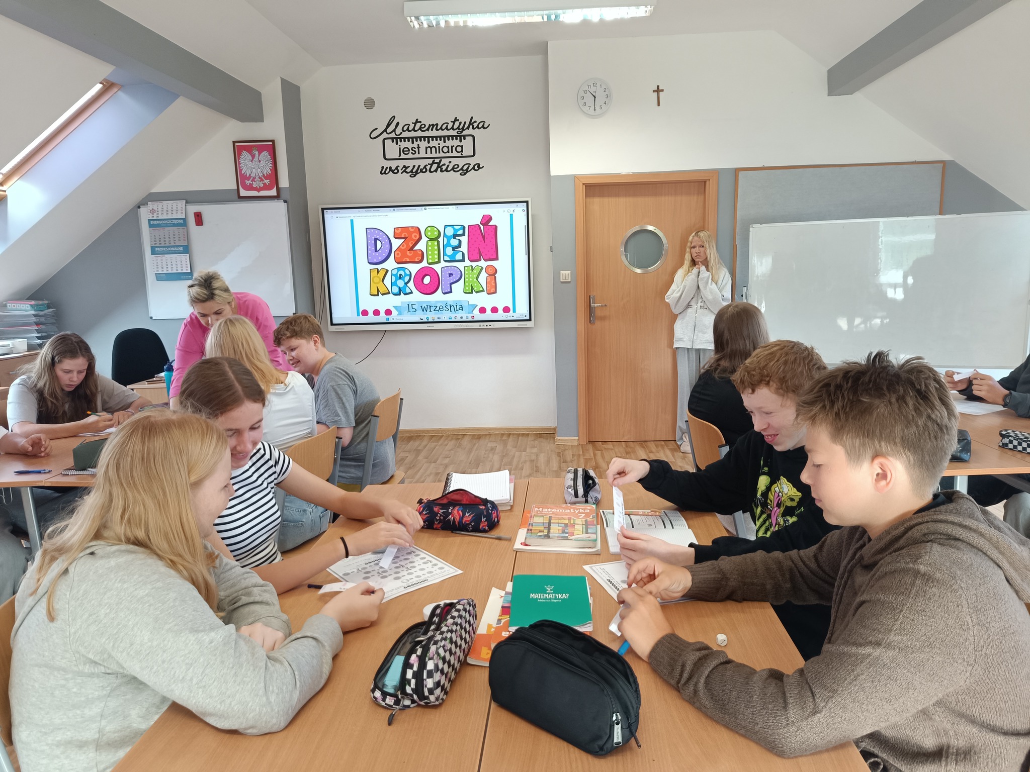 👉 Podczas lekcji matematyki uczniowie mierzyli się z ciekawymi łamigłówkami i diagramami, a wszystko to oczywiście… w temacie kropek!