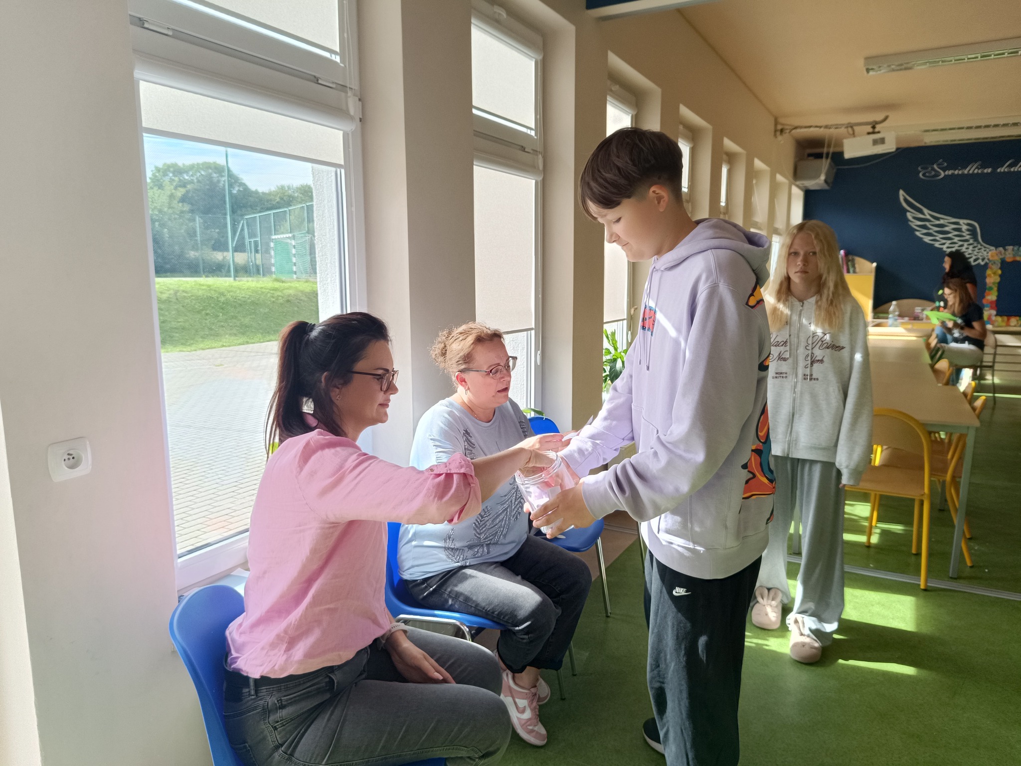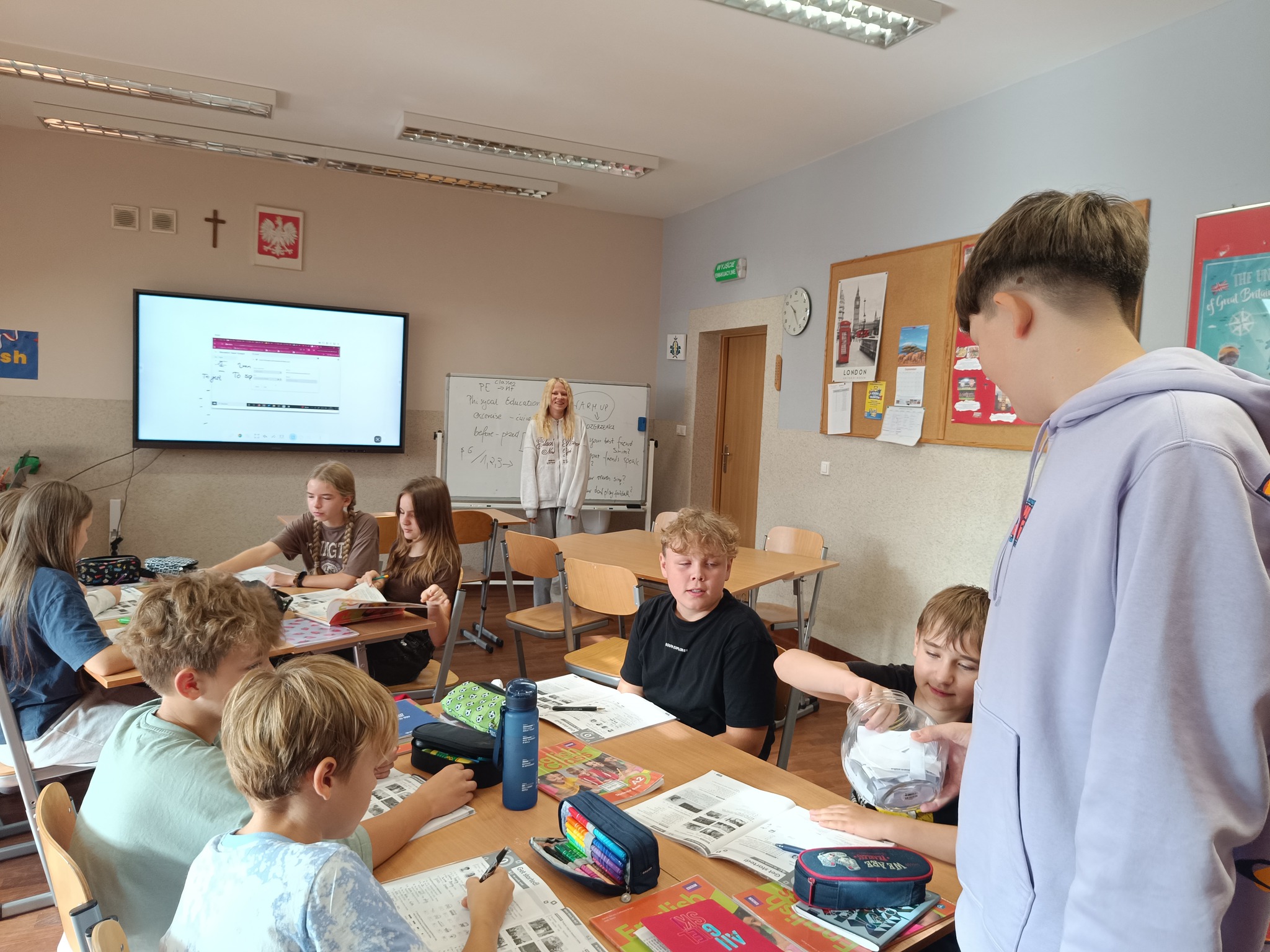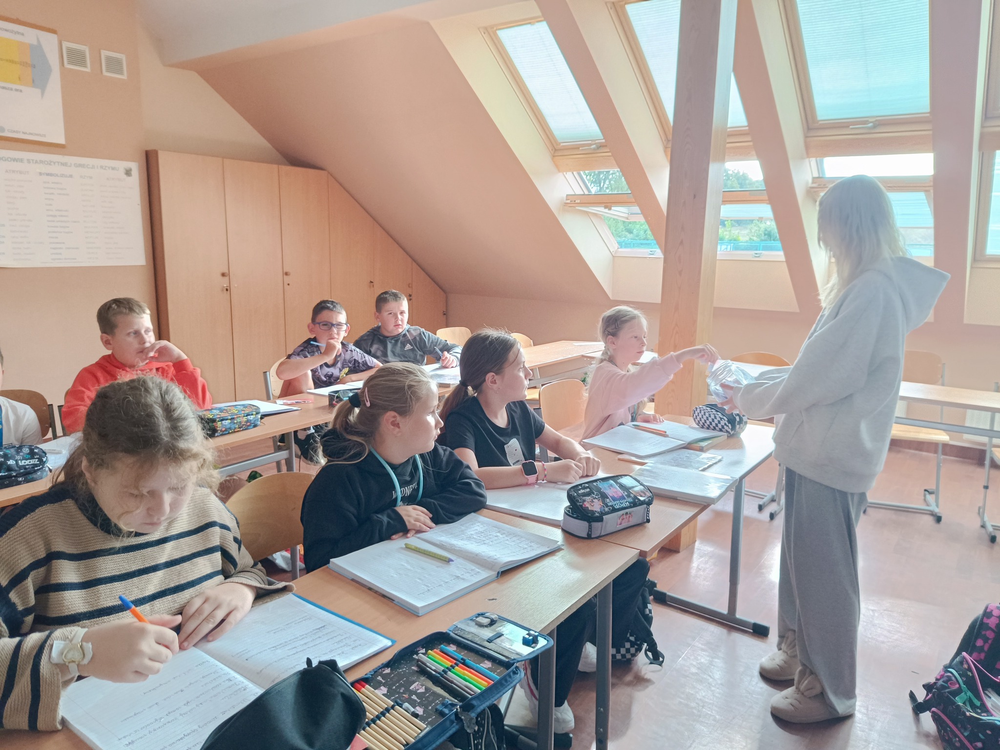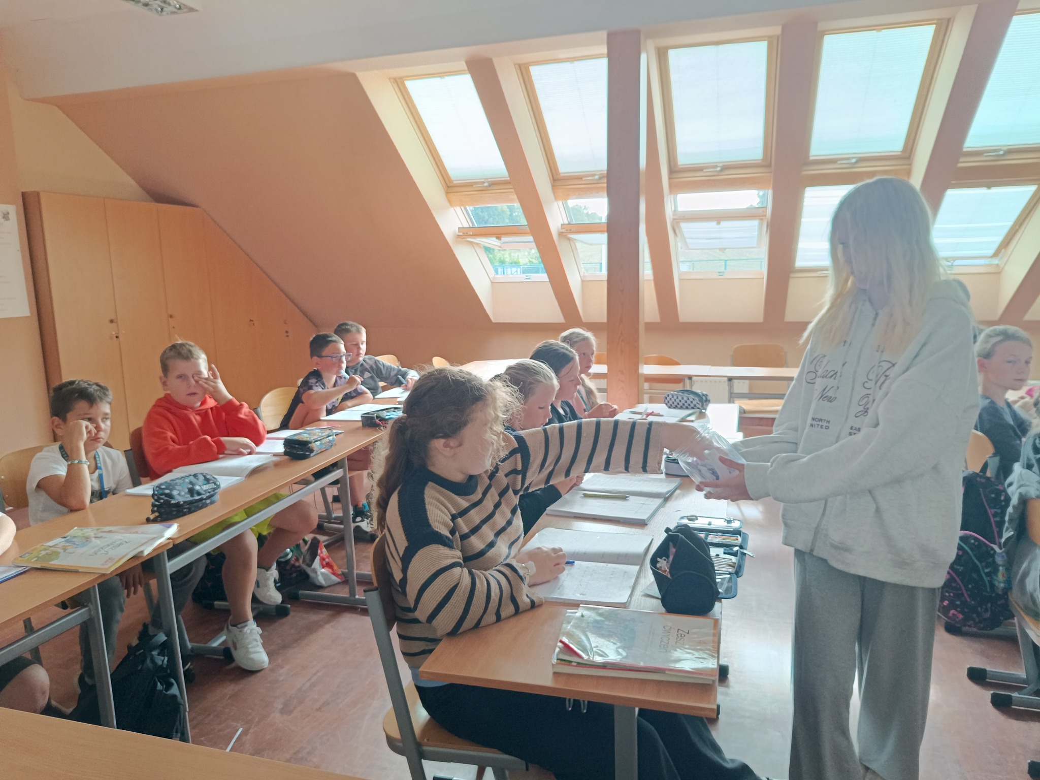 15 września z inicjatywy Samorządu Uczniowskiego, uczniowie klasy ósmej – Magda i Kamil – wyruszyli na szkolne korytarze, by zaprosić koleżanki i kolegów z klas III–VIII do wspólnej zabawy. Rozdawali oni motywujące cytaty ze Słoika Dobrych Słów, które dodawały odwagi, wywoływały uśmiech i przypominały, że każdy z nas jest wyjątkowy. 💜