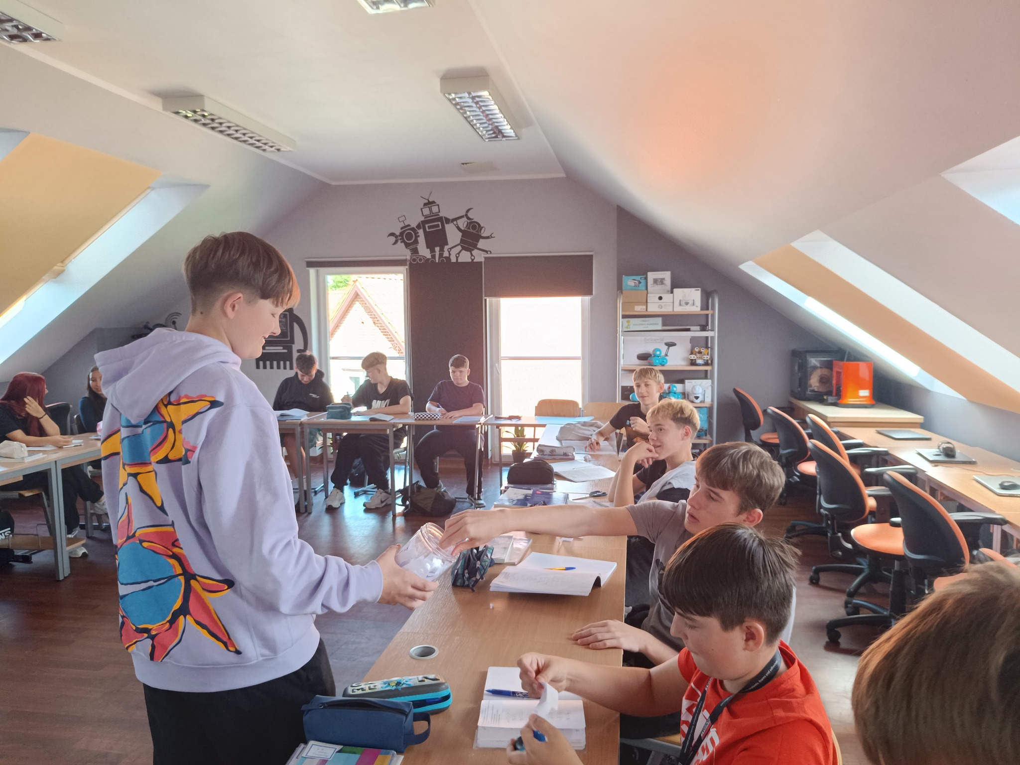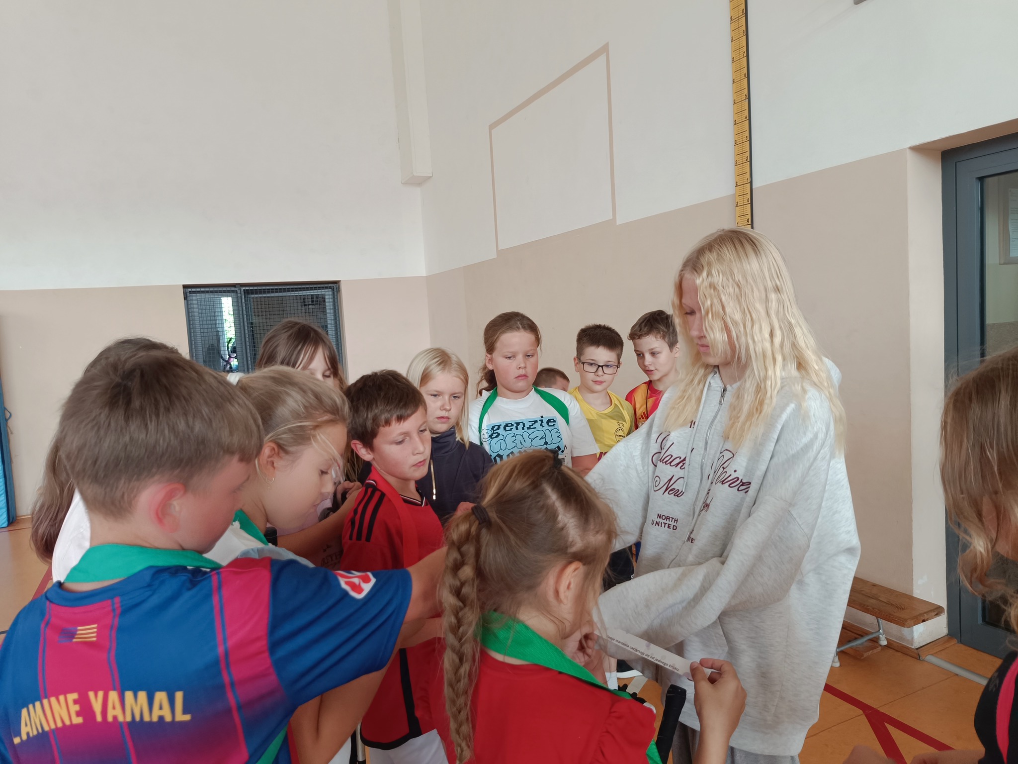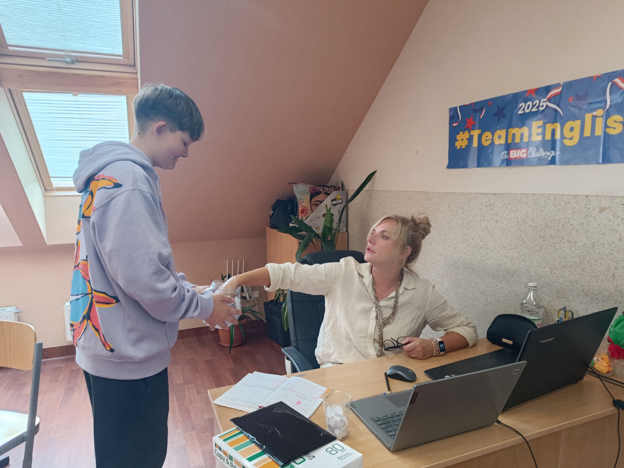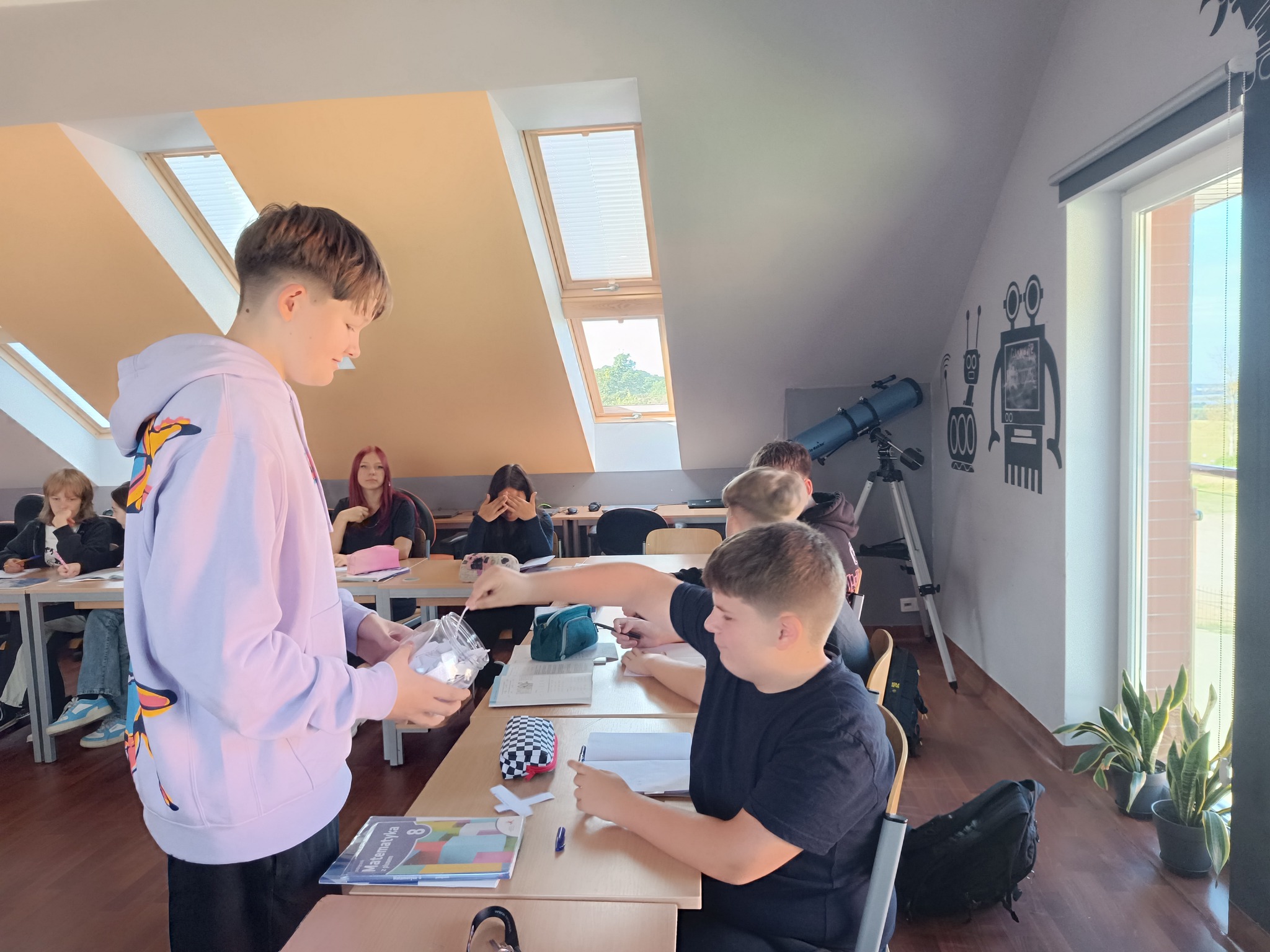 15 września z inicjatywy Samorządu Uczniowskiego, uczniowie klasy ósmej – Magda i Kamil – wyruszyli na szkolne korytarze, by zaprosić koleżanki i kolegów z klas III–VIII do wspólnej zabawy. Rozdawali oni motywujące cytaty ze Słoika Dobrych Słów, które dodawały odwagi, wywoływały uśmiech i przypominały, że każdy z nas jest wyjątkowy. 💜