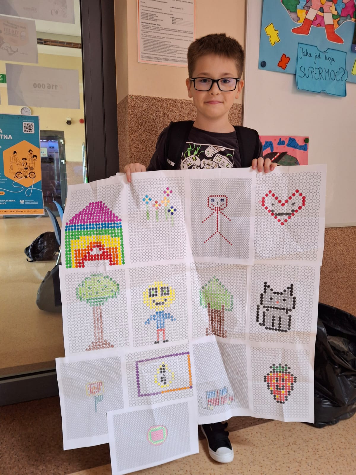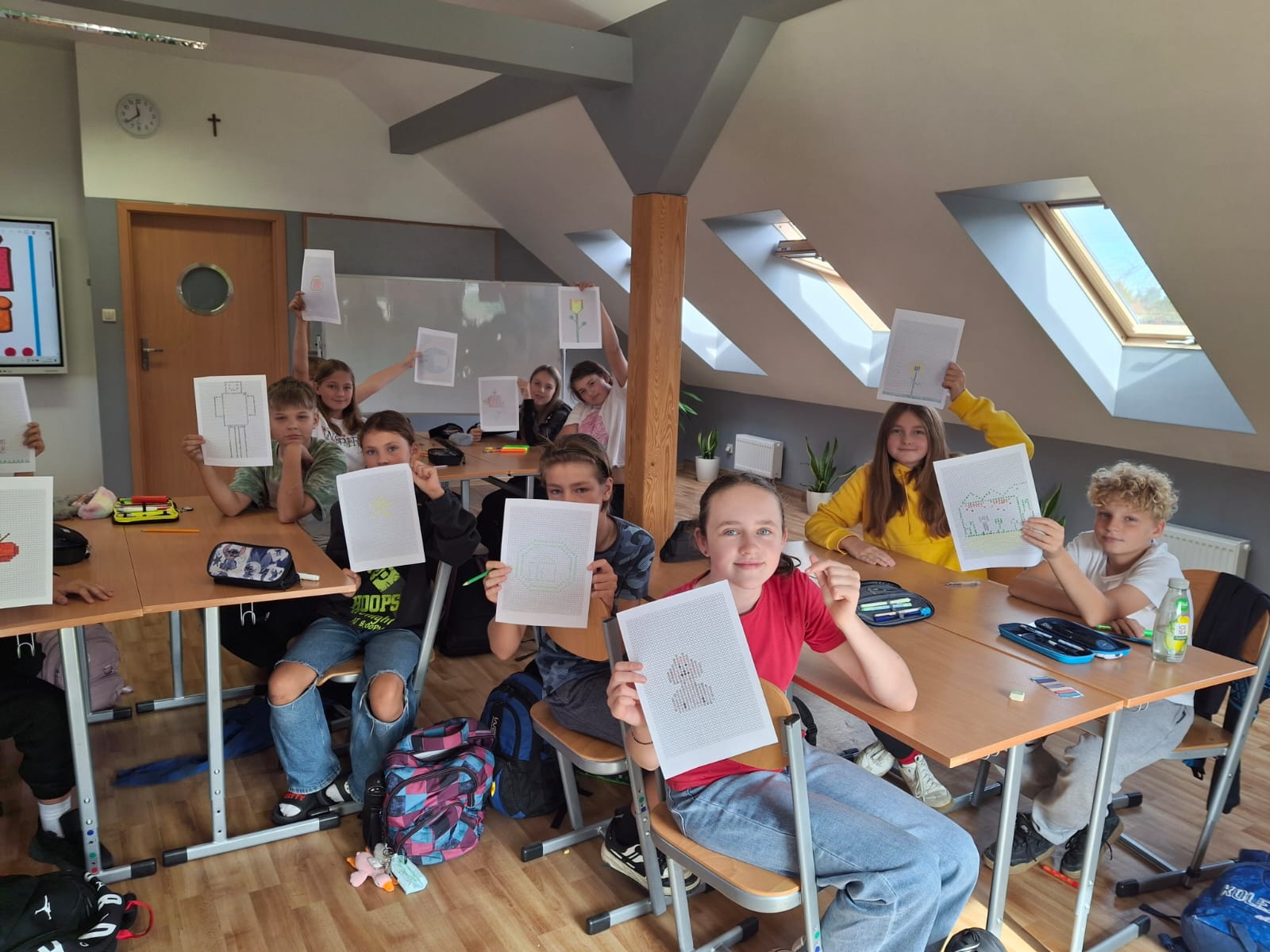 👉 Z kolei na lekcjach informatyki powstały oryginalne prace oparte na kropkach, a efektem były netykiety – przypomnienie, jak mądrze i bezpiecznie korzystać z internetu. 💻🌐