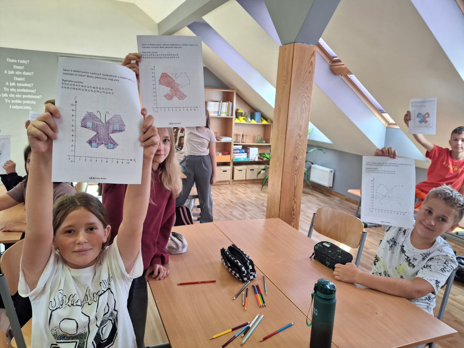 🔵 Na osi współrzędnych zaznaczali „wyjątkowe, punktowe kropki” – swoje małe matematyczne dzieła, które połączyły naukę z kreatywną zabawą.