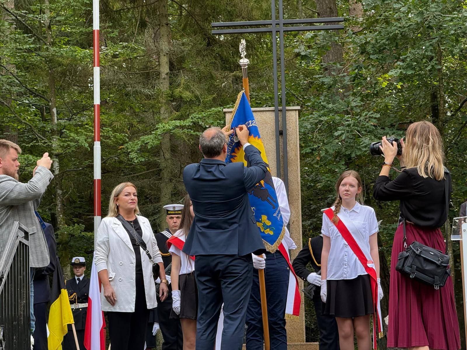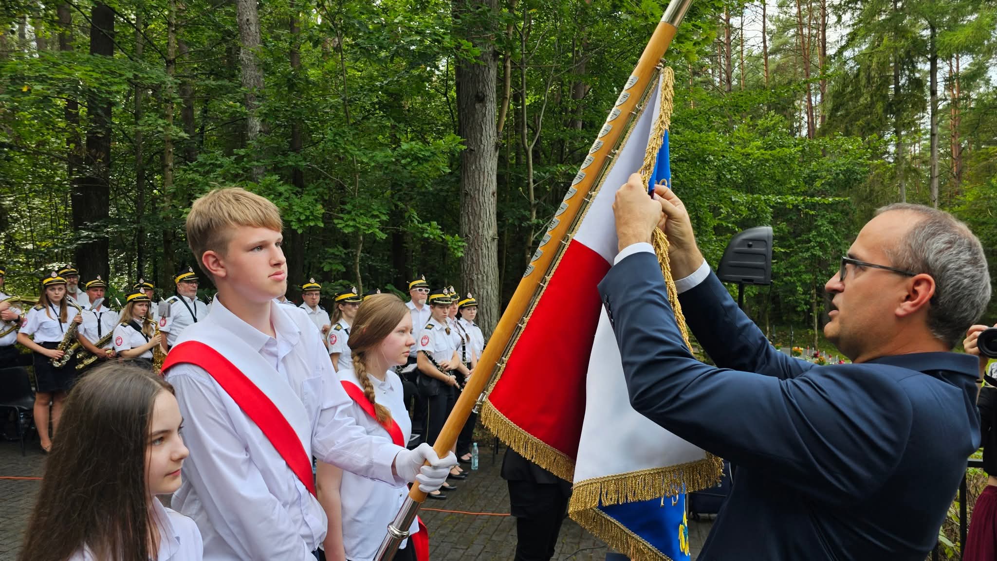 🏅 To zaszczytne wyróżnienie odebrała z rąk wicewojewody województwa pomorskiego delegacja Pocztu Sztandarowego Szkoły z dyrektor naszej placówki, z Panią Aleksandrą Obszyńską, na czele podczas Uroczystości 80-tej Rocznicy Marszu Śmierci Więźniów Obozu Zagłady KL Stutthof w Rybnie.