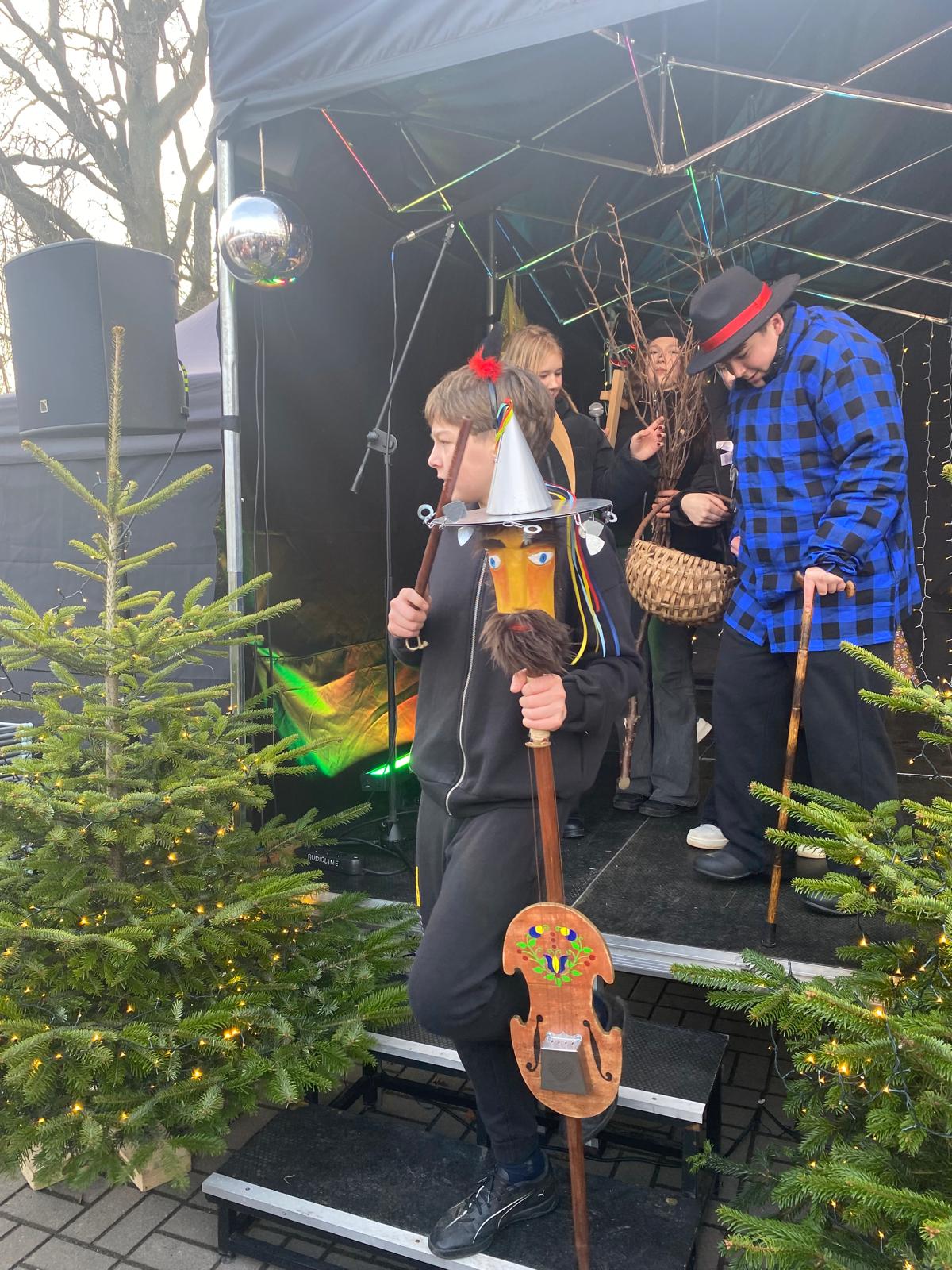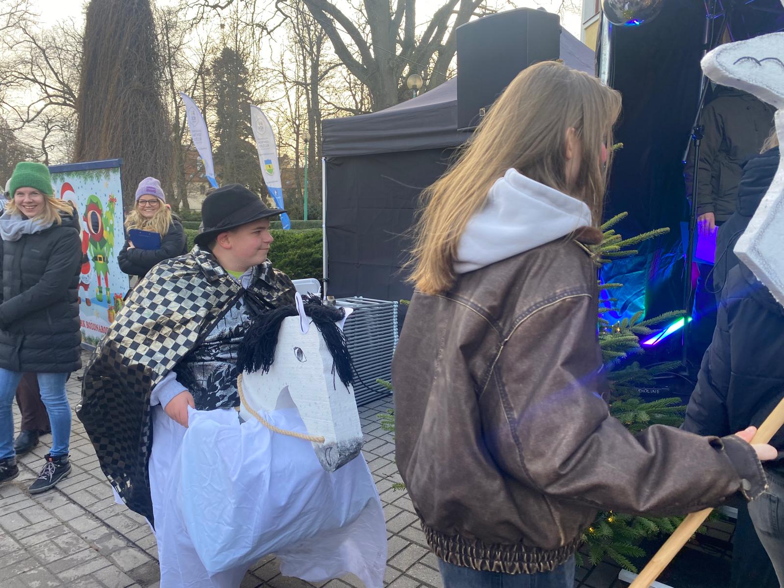 14 grudnia 2025 r. podczas Jarmarku Świątecznego w Krokowej uczniowie Szkoły Podstawowej im. Janusza Korczaka w Żarnowcu zaprezentowali wyjątkowy występ, który przeniósł publiczność w barwny świat kaszubskiej tradycji. Młodzi artyści wcielili się w role 𝐏𝐚𝐧𝐞𝐬𝐳𝐞𝐤 – kaszubskich przebierańców z północnych Kaszub, niosących ze sobą radość, humor i ducha dawnych obrzędów. Zgodnie z tradycją znaną w gminie Krokowa od wieków, Paneszki odwiedzały mieszkańców w dzień Wigilii Bożego Narodzenia, składając życzenia i wprowadzając do domów świąteczną atmosferę. W innych rejonach Kaszub znani byli również jako 𝐆𝐰𝐢𝐳̇𝐝𝐳̇𝐞 lub 𝐆𝐰𝐢𝐞𝐳𝐝𝐜𝐳𝐢, pojawiając się u gospodarzy przez cały okres świąteczno-noworoczny.