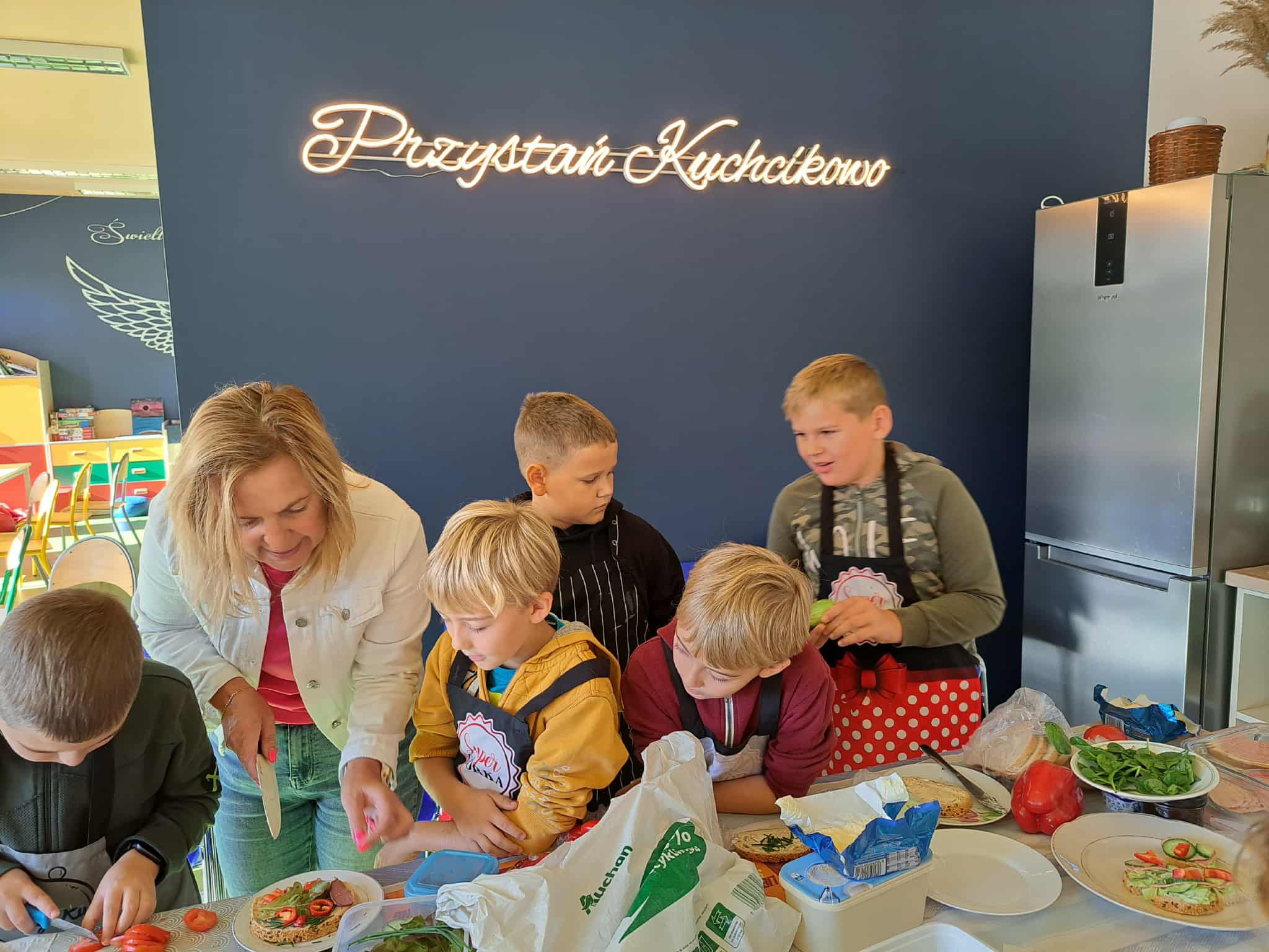 🥑 Na dwie godziny zatrzymaliśmy się w Przystani Kuchcikowo, gdzie w 4–5 osobowych grupach dzieci tworzyły swoje kulinarne arcydzieła. Każdy wykorzystał produkty przyniesione z domu i własną wyobraźnię.
