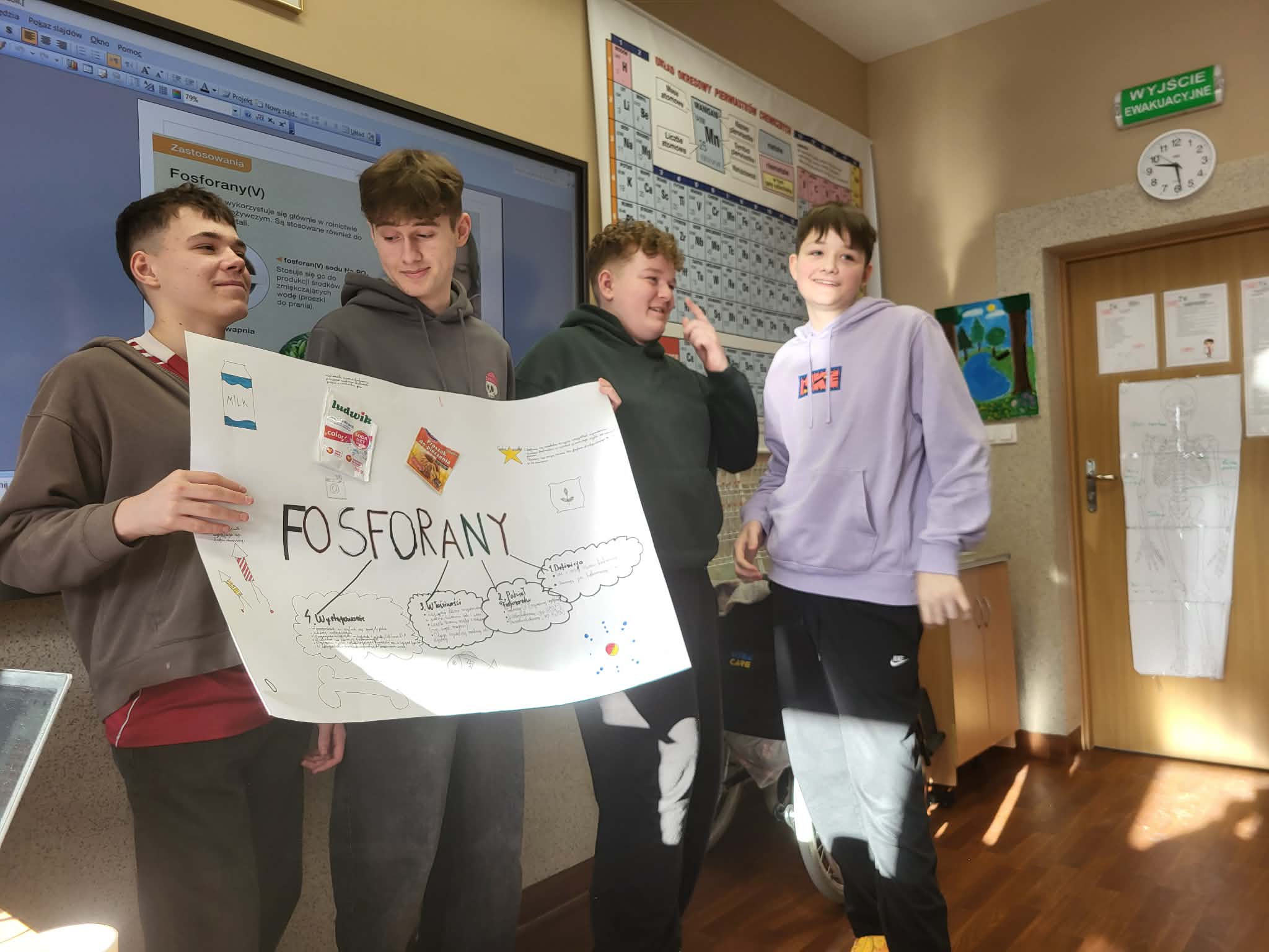 Podczas zajęć uczniowie pracowali metodą projektu 📖 – analizowali podręcznik, korzystali z dostępnych materiałów edukacyjnych oraz Internetu 💻. Następnie opracowywali zebrane informacje w formie plakatów 🎨. Po zakończeniu pracy każda grupa prezentowała efekty swojej pracy na forum klasy 🗣️, omawiając najważniejsze informacje. Uczniowie mieli możliwość zadawania pytań ❓ i uzupełniania wiadomości 📖. Efekty ich pracy społeczność szkolna może zobaczyć na szkolnym korytarzu 🏫, gdyż ich prace zostały zaprezentowane w naszej galerii 🖼️.